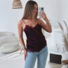 Elegantní saténové tílko s jemnou krajkou je nadčasový kousek, který nesmí chybět v žádném šatníku. Díky špagetovým elastickým ramínkům a hlubokému výstřihu na zádech působí ženským a smyslným dojmem. Lehký saténový materiál je příjemný na těle a krásně se přizpůsobí postavě. Tílko má univerzální velikost, která sedí na XS–M.