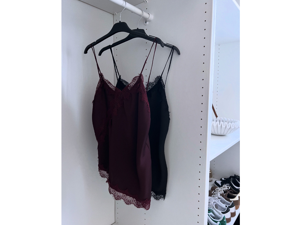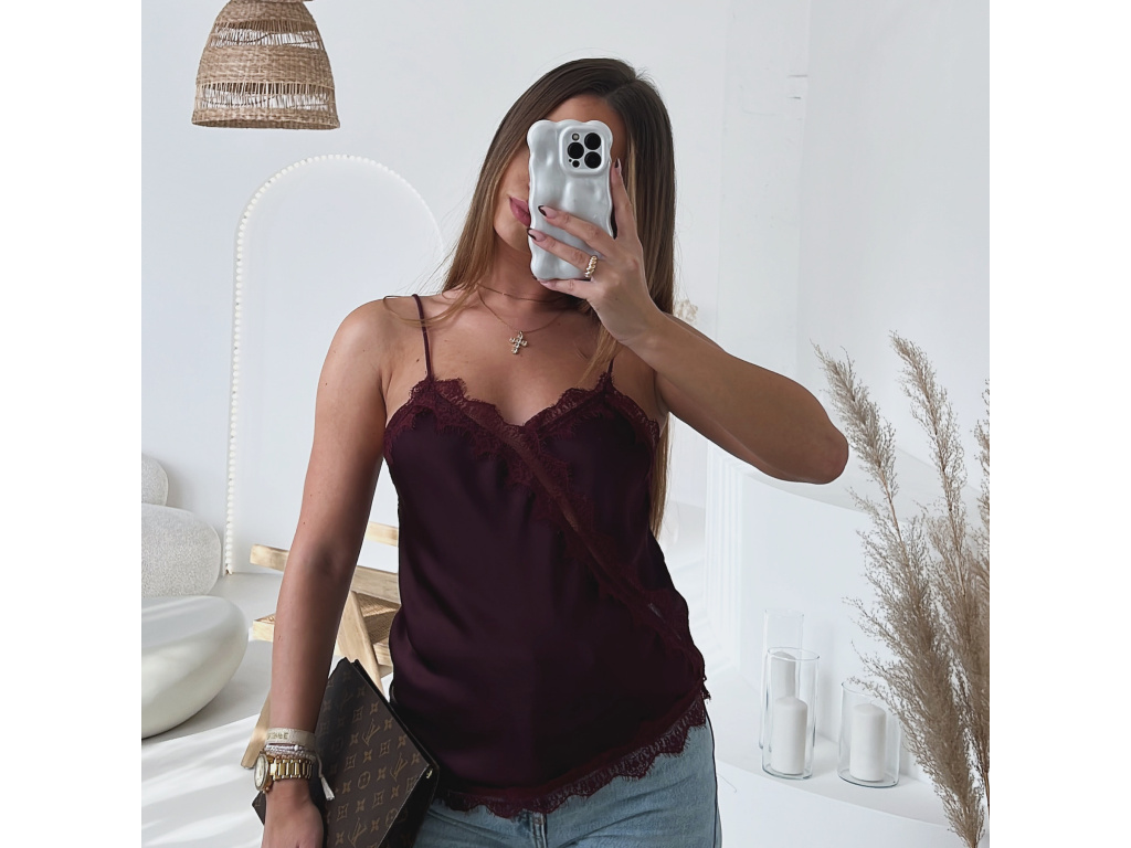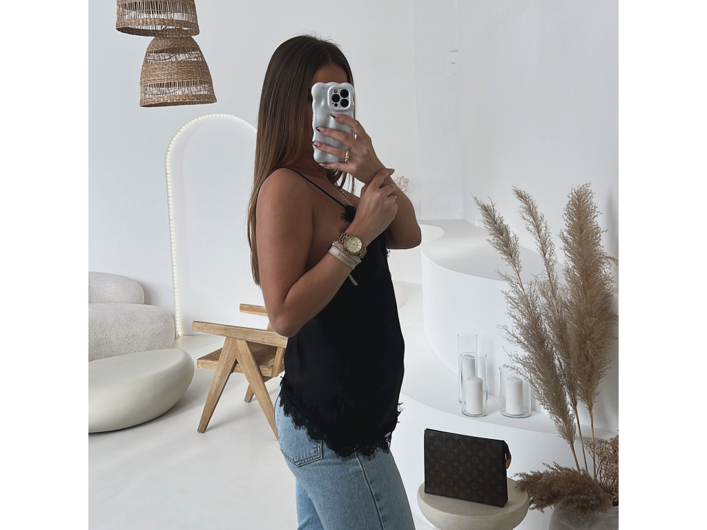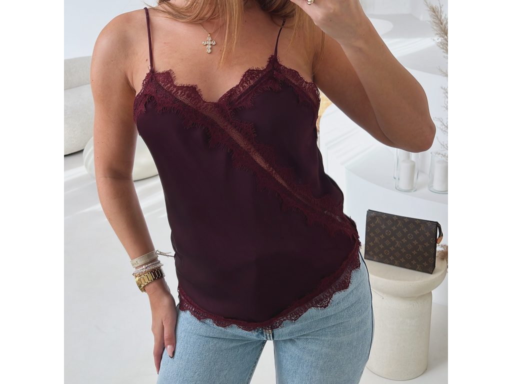 Elegantní saténové tílko s jemnou krajkou je nadčasový kousek, který nesmí chybět v žádném šatníku. Díky špagetovým elastickým ramínkům a hlubokému výstřihu na zádech působí ženským a smyslným dojmem. Lehký saténový materiál je příjemný na těle a krásně se přizpůsobí postavě. Tílko má univerzální velikost, která sedí na XS–M.