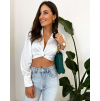 Sexy, crop saténová tunika s vázáním v pase. Na zadní straně je v pase guma, top se tedy v obvodu hezky natáhne. Velikost je univerzální, sedí na XS,S,M. Foceno je na Sku a výšce 170 cm. DOPORUČUJEME! Ohledně rozměrů nás neváhejte kontaktovat.
