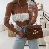 Elegantní kabelka velice hezky zpracovaná se zlatými detaily v hnědé, camel a hnědo-šedé barvě. Kabelka je vč. popruhu na nošení jako crossbody. Uvnitř je vypodšívkovaná. Zapíná se na zlatou sponu a uzávěr. Materiál je eko kůže.