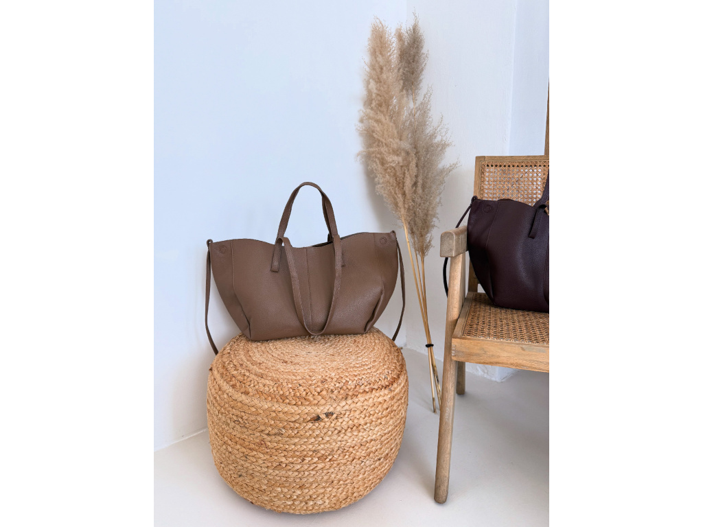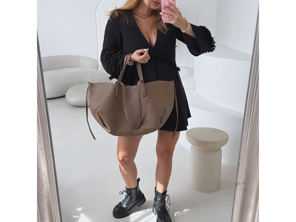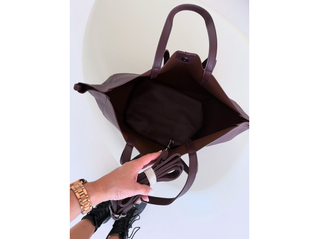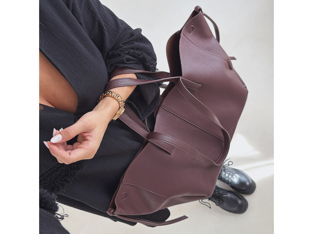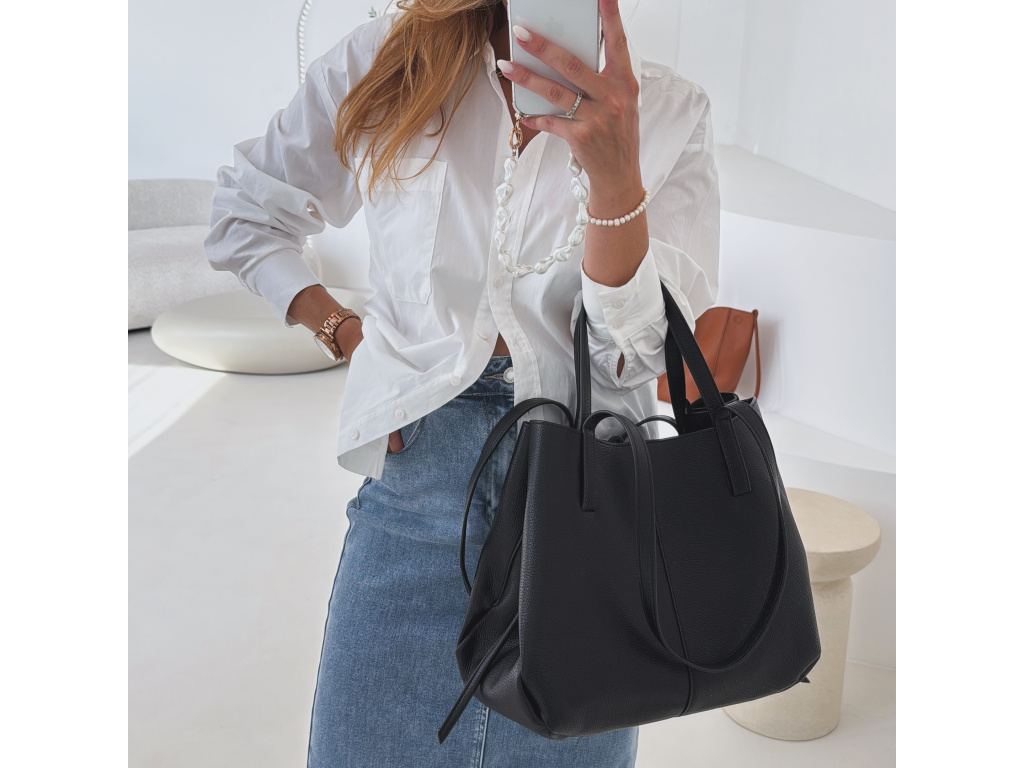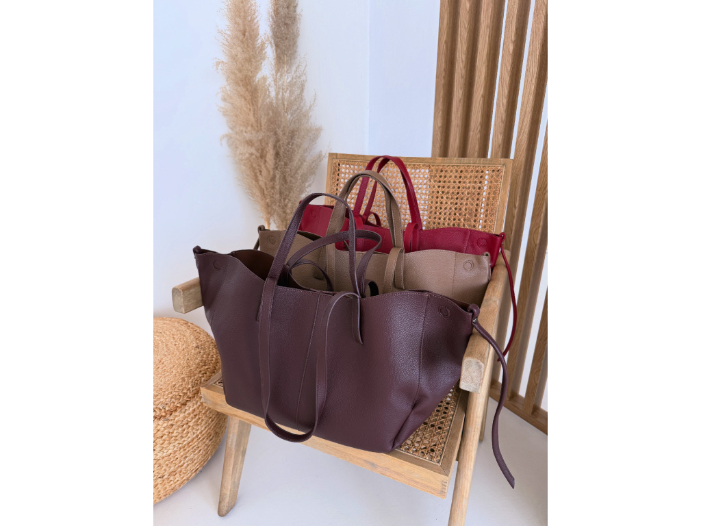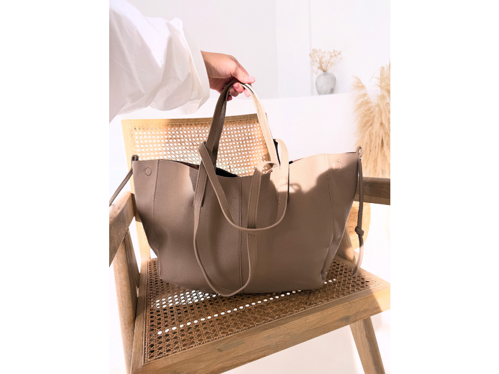 Stylová prostorná kabelka z kvalitní koženky s praktickými detaily. Po bocích má magnety, díky kterým lze snadno měnit její tvar a velikost. Zapíná se na cvoček, uvnitř najdete malou kosmetickou taštičku. Součástí je i popruh, takže ji můžete nosit také jako crossbody. Dostupná v camel a černé barvě.