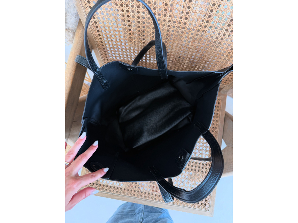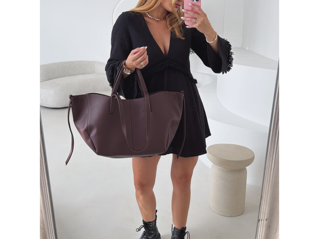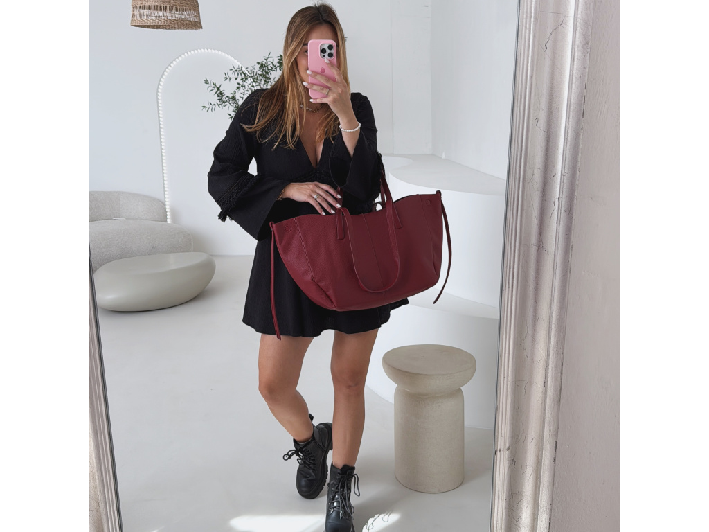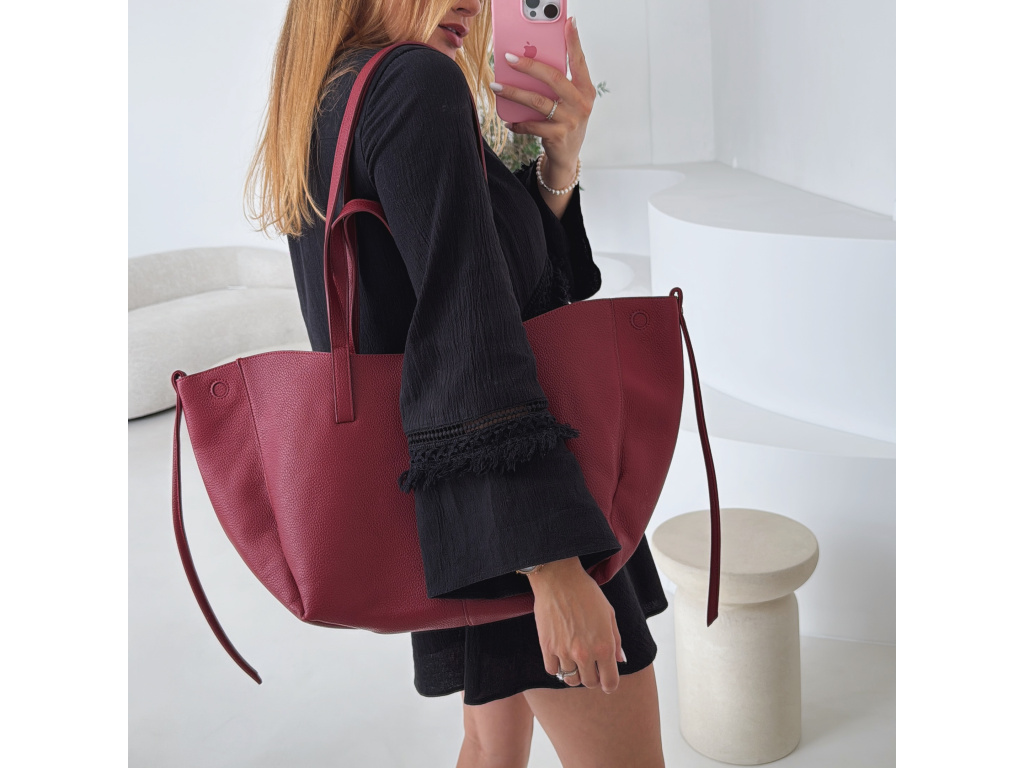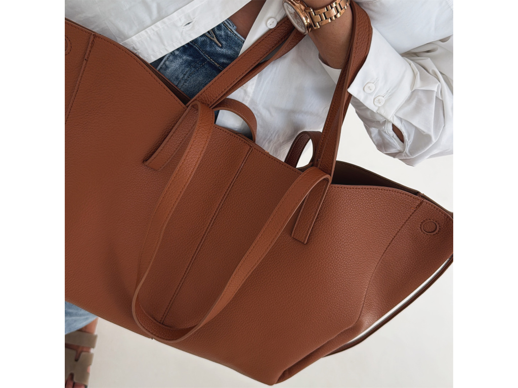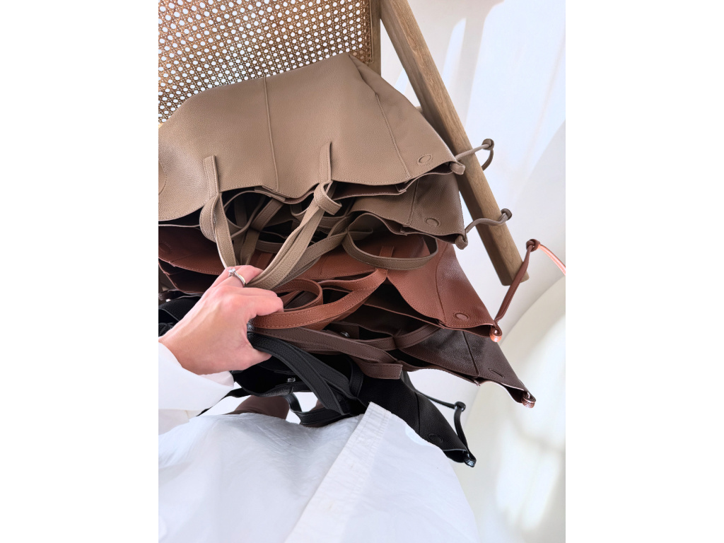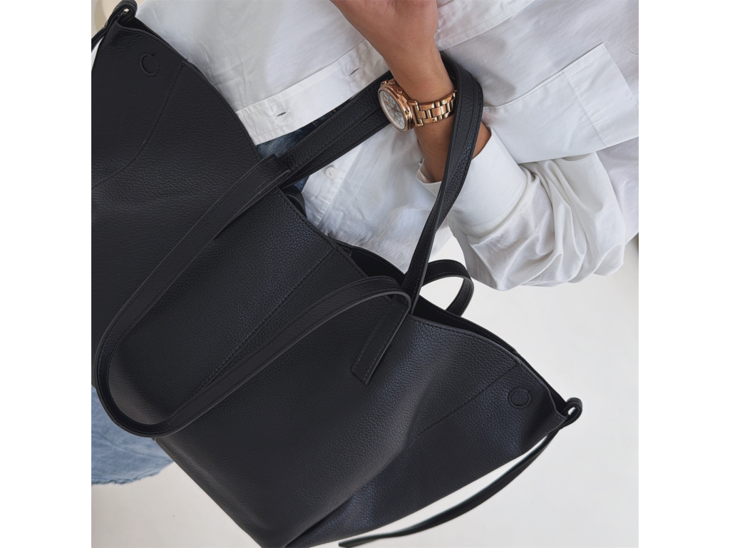 Stylová prostorná kabelka z kvalitní koženky s praktickými detaily. Po bocích má magnety, díky kterým lze snadno měnit její tvar a velikost. Zapíná se na cvoček, uvnitř najdete malou kosmetickou taštičku. Součástí je i popruh, takže ji můžete nosit také jako crossbody. Dostupná v camel a černé barvě.