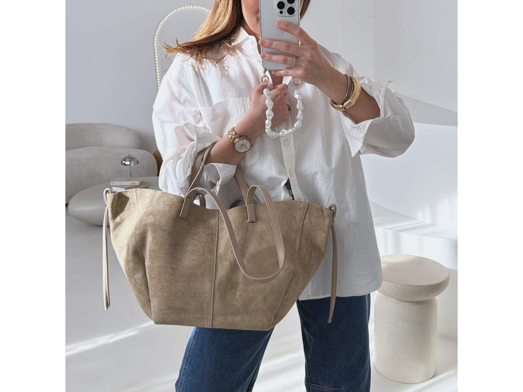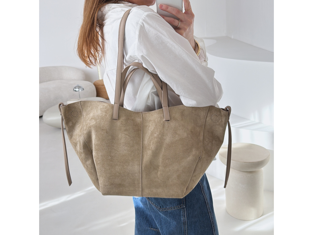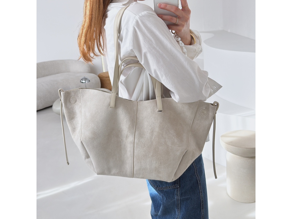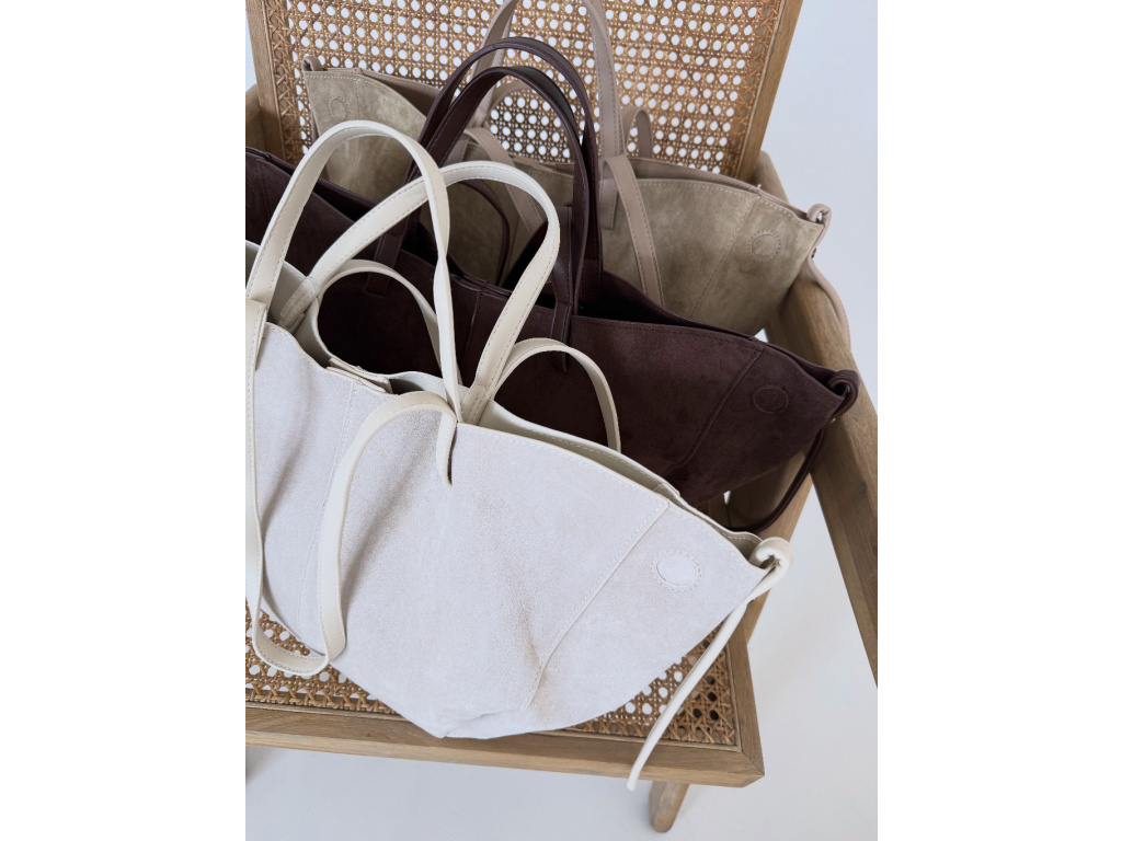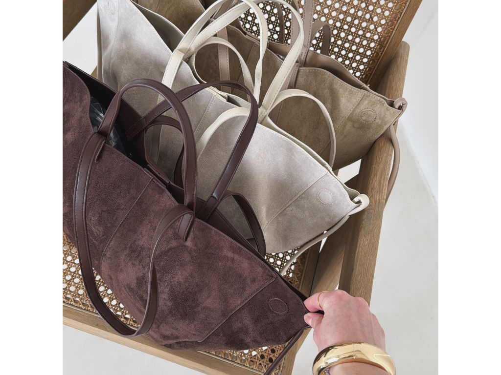 Stylová semišová kabelka, která v sobě spojuje eleganci i praktičnost. Uvnitř najdete kosmetickou taštičku, kterou můžete použít samostatně. Kabelka má dva popruhy – kratší do ruky a delší přes rameno. Díky postranním magnetkům můžete snadno měnit její tvar i velikost podle potřeby. Dostupná ve 3 barevných variantách.