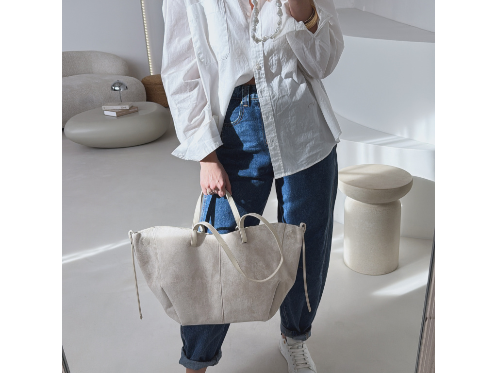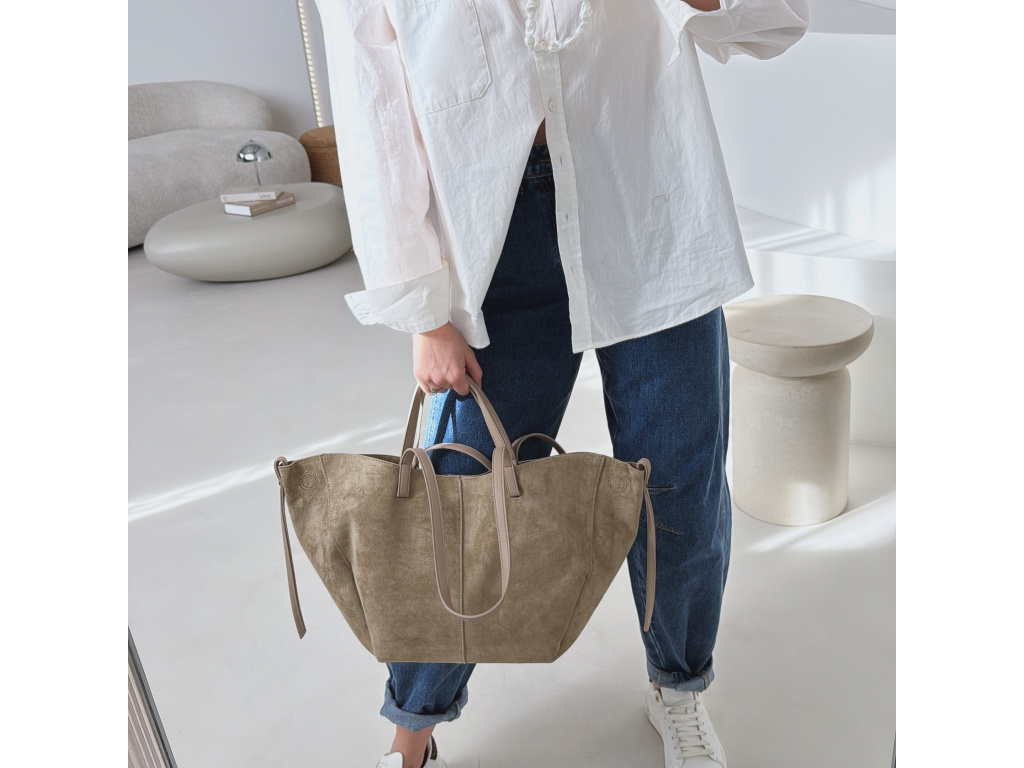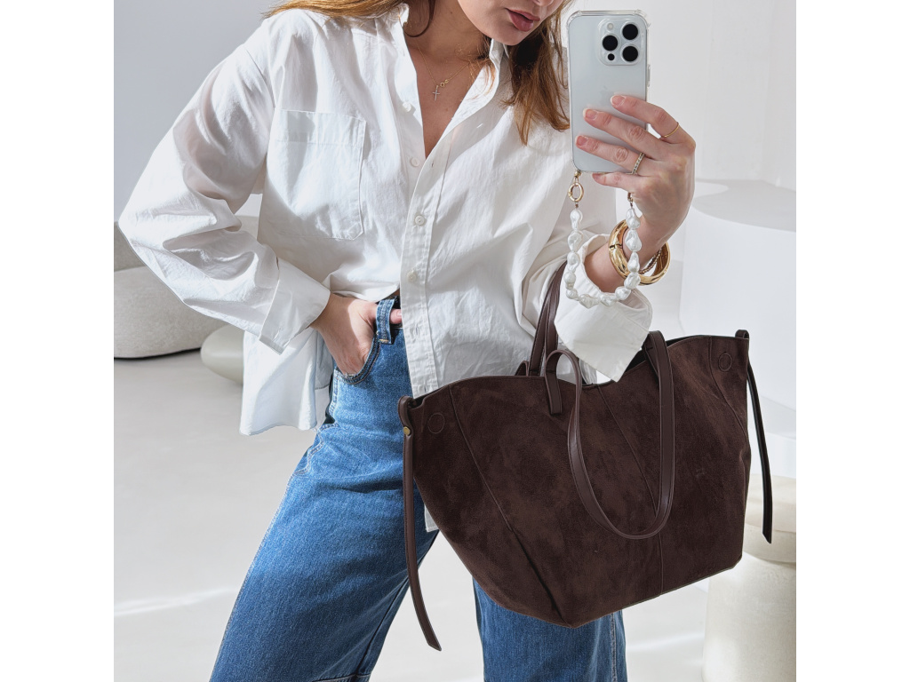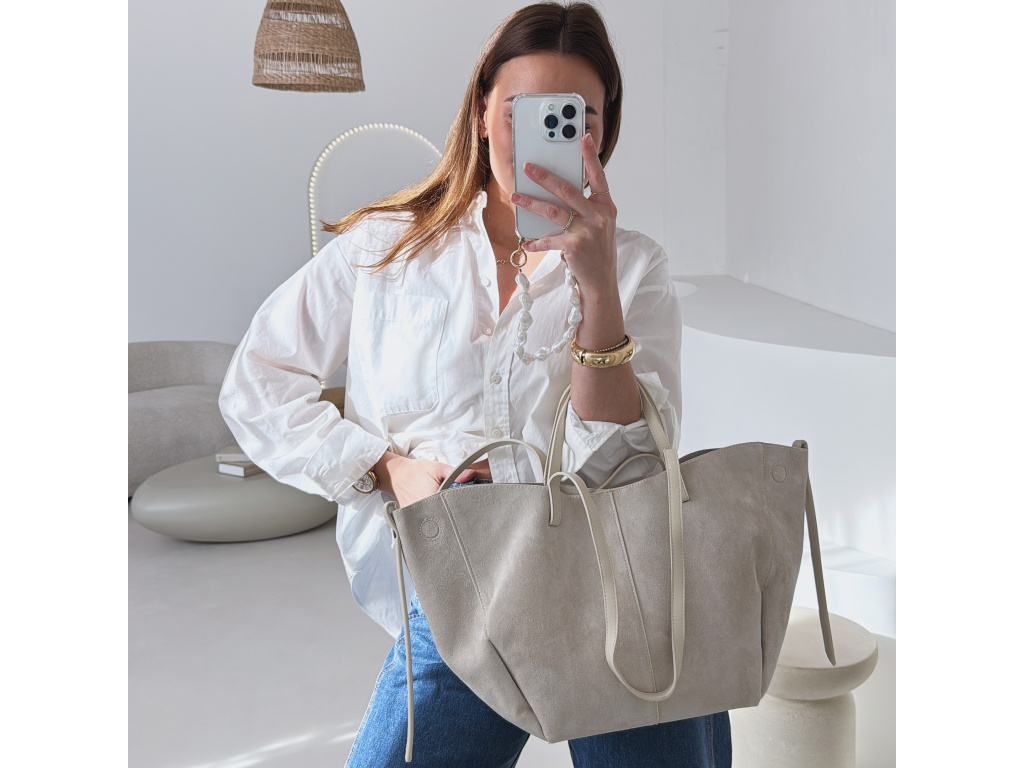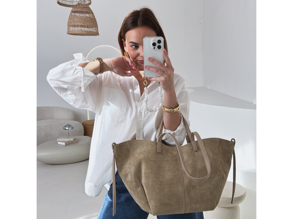 Stylová semišová kabelka, která v sobě spojuje eleganci i praktičnost. Uvnitř najdete kosmetickou taštičku, kterou můžete použít samostatně. Kabelka má dva popruhy – kratší do ruky a delší přes rameno. Díky postranním magnetkům můžete snadno měnit její tvar i velikost podle potřeby. Dostupná ve 3 barevných variantách.