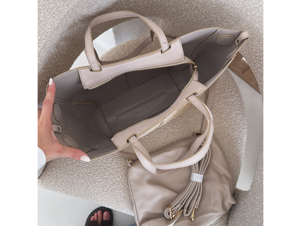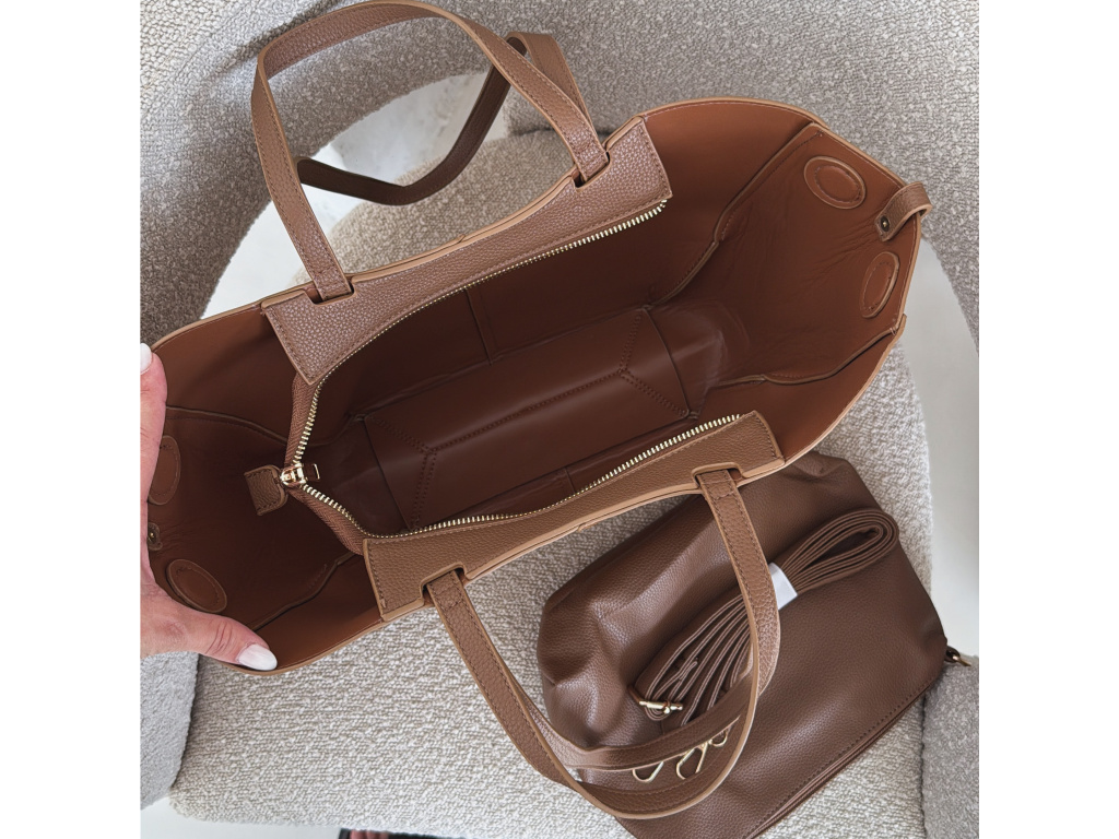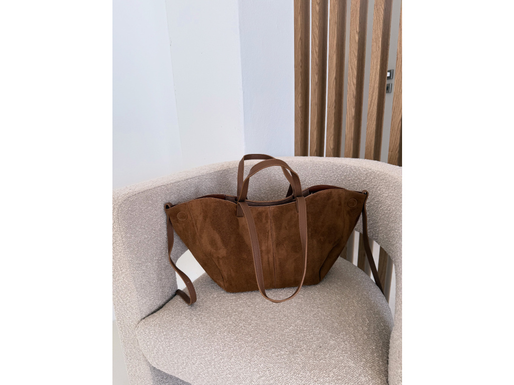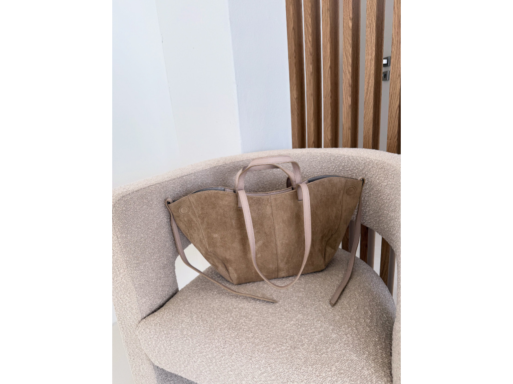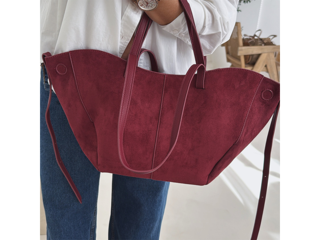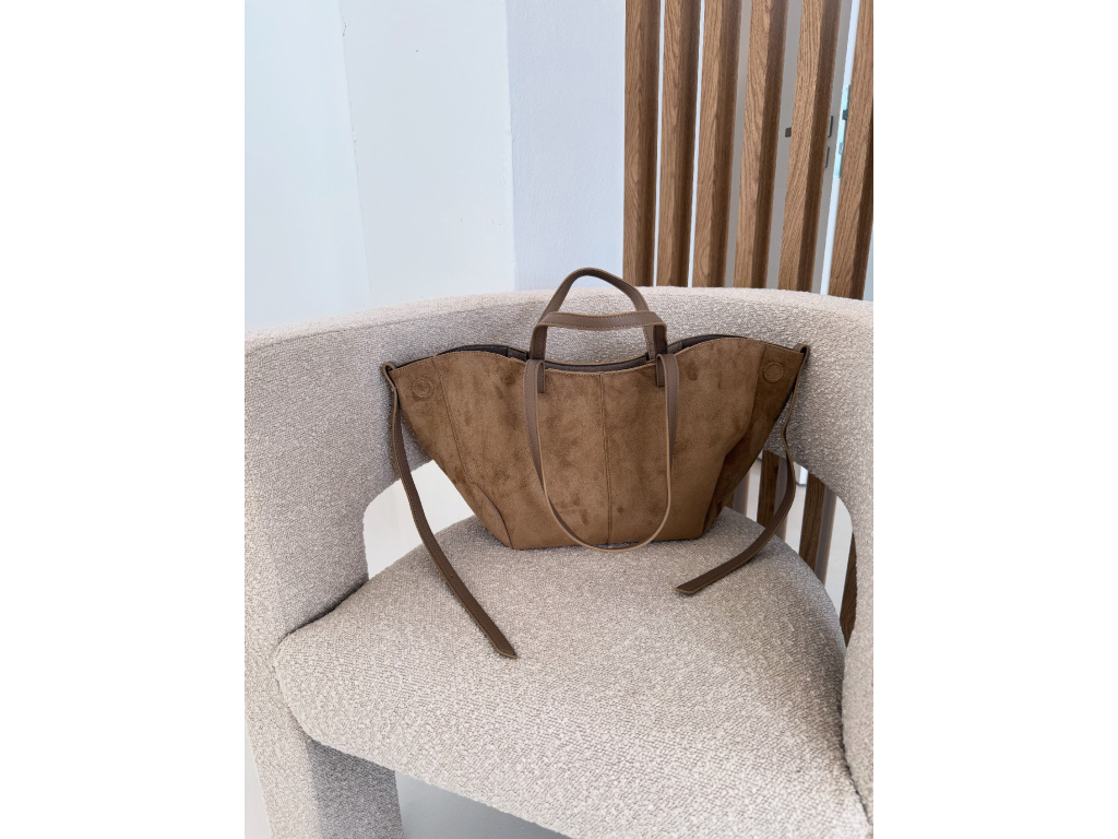 Stylová semišová kabelka, která v sobě spojuje eleganci i praktičnost. Uvnitř najdete kosmetickou taštičku, kterou můžete použít samostatně. Kabelka má dva popruhy – kratší do ruky a delší přes rameno. Díky postranním magnetkům můžete snadno měnit její tvar i velikost podle potřeby. Dostupná ve 4 barevných variantách.