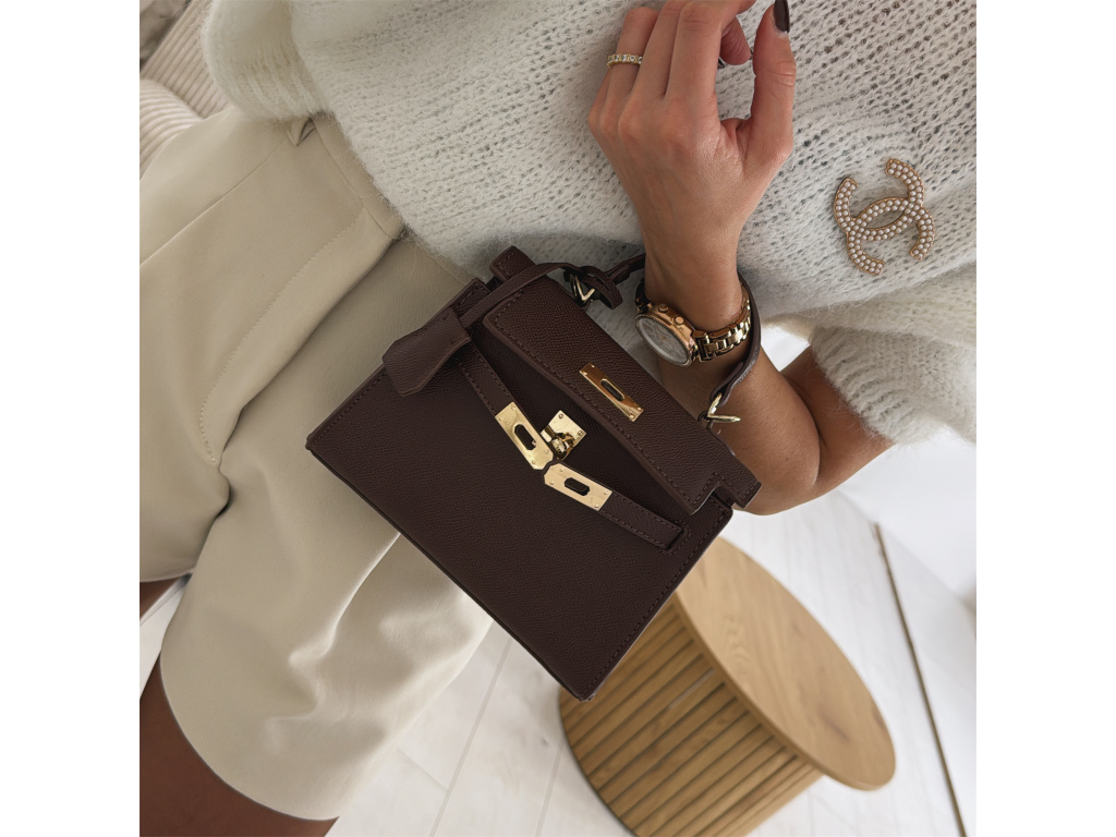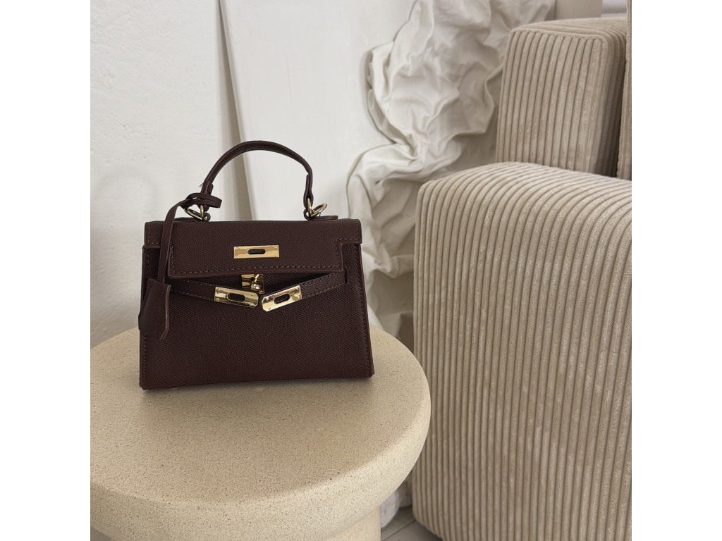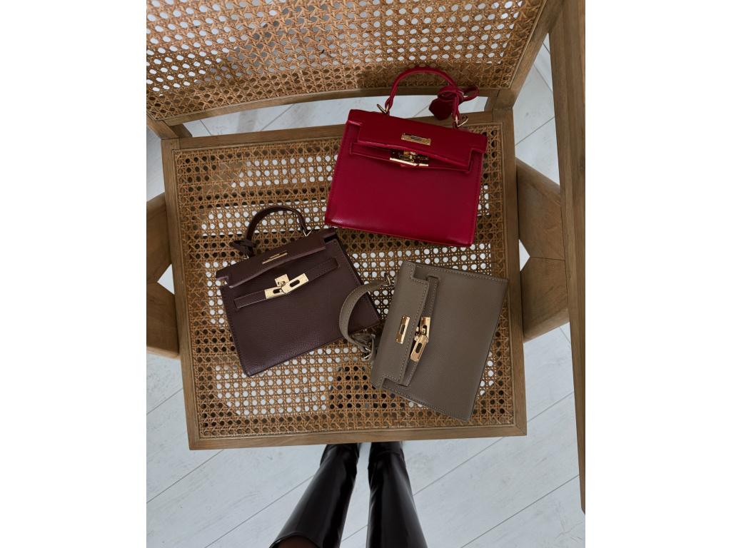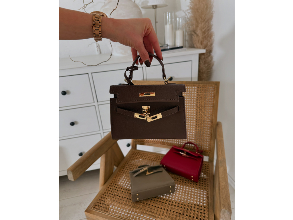 Elegantní kabelka velice hezky zpracovaná se zlatými detaily v taupe, vínové a hnědé barvě. Kabelka je vč. popruhu na nošení jako crossbody. Uvnitř je vypodšívkovaná. Zapíná se na zlatou sponu. Materiál je eko kůže.