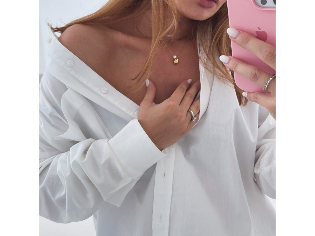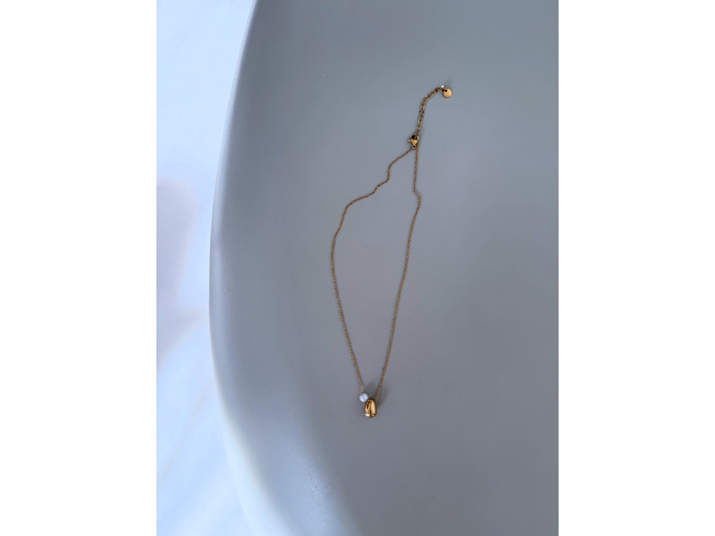 Tento jemný náhrdelník je vyroben z kvalitní nerezové oceli, která zaručuje dlouhou životnost a odolnost vůči opotřebení. Dominantním prvkem je decentní kombinace zlatého kapkovitého přívěsku a perličky, které společně tvoří nadčasový a sofistikovaný design. Perfektně se hodí jak k ležérní košili, tak i k elegantním outfitům, a dodá vašemu vzhledu šmrnc.