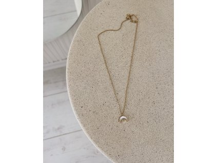 Krásný, decentní náhrdelník s přívěškem ve tvaru ťupky s velkým kamínkem uprostřed z nerezové oceli dostupný ve zlaté a stříbrné barvě. Náhrdelník je délkově nastavitelný.