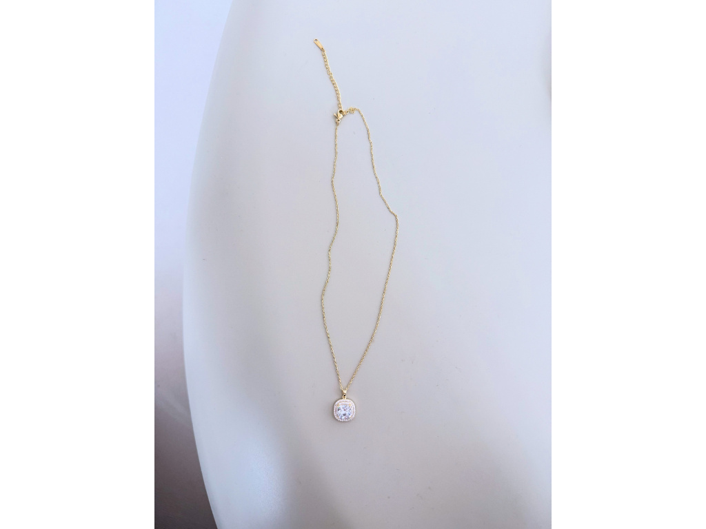 Elegantní náhrdelník ve zlaté barvě z kvalitní nerezové oceli je doplněný třpytivým kamínkem v decentním přívěsku. Díky jemnému designu se hodí k ležérním i slavnostním outfitům a je skvělou volbou pro každodenní nošení i jako dárek.