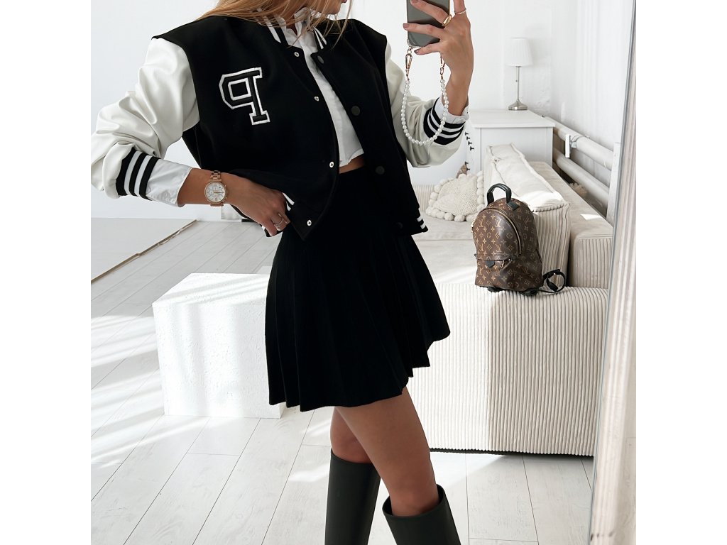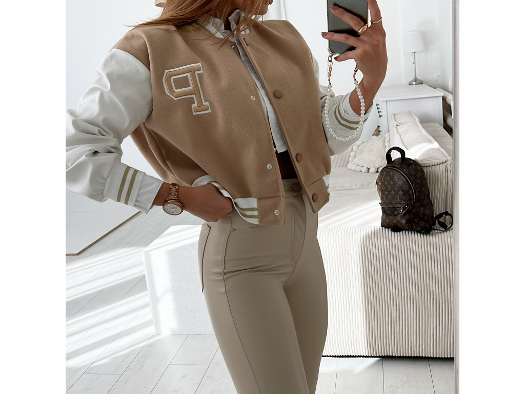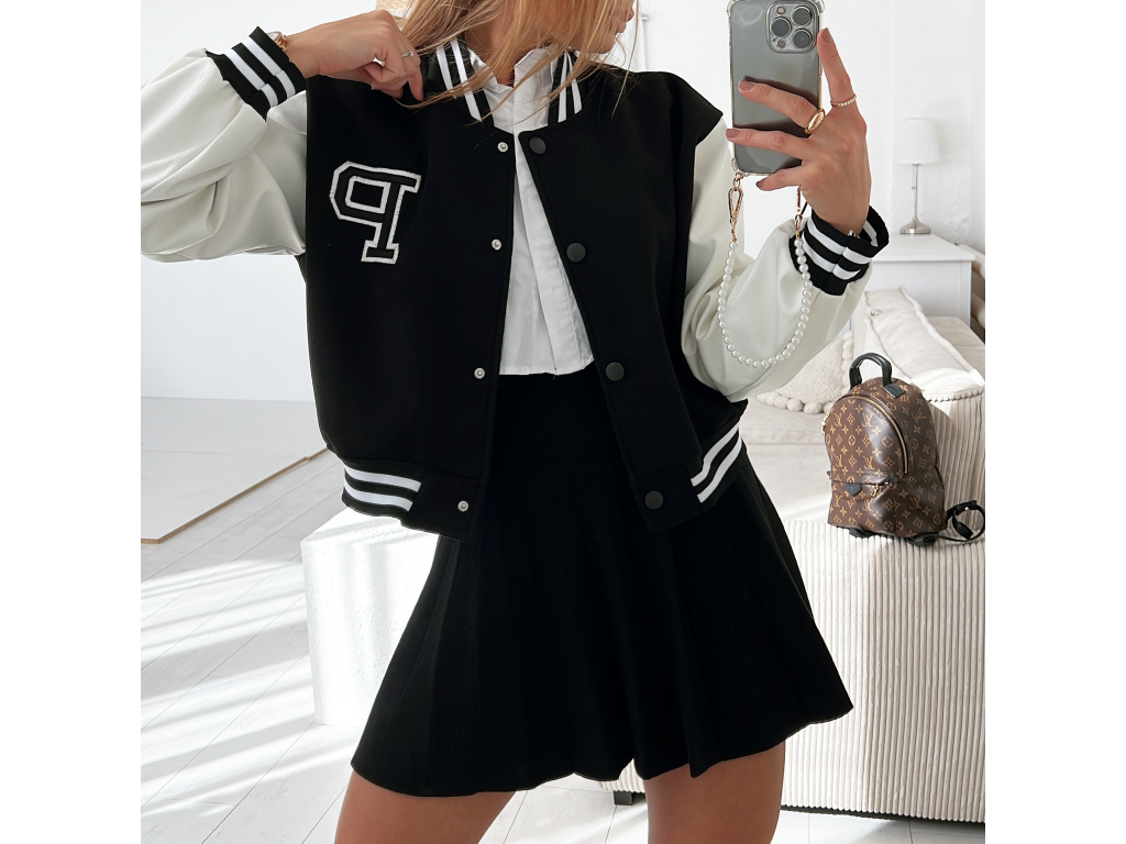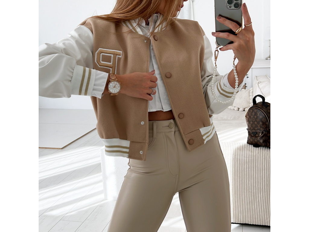 Stylová bomber bundička bez podšívky v černé a béžové barvě s koženkovými rukávy a zapínáním na cvočky. Velikost je univerzální, sedí na XS,S,M. Foceno je na XSku a výšce 165 cm. DOPORUČUJEME! Ohledně rozměrů nás neváhejte kontaktovat.