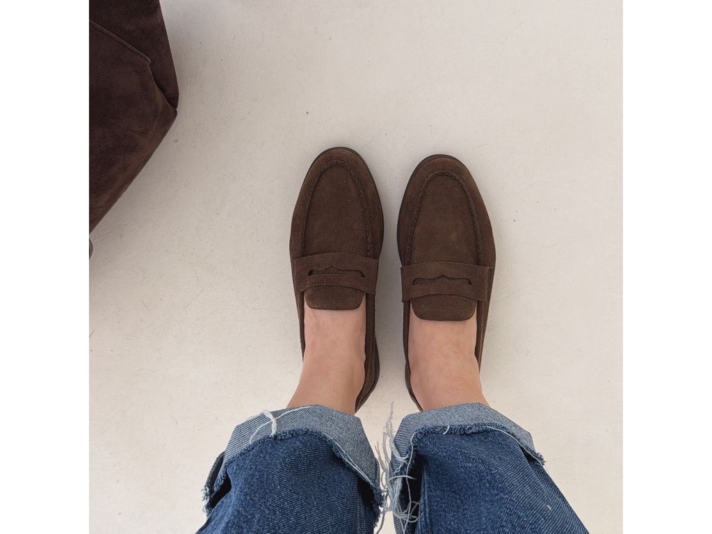 Hnědé mokasíny z umělé, broušené kůže Noell