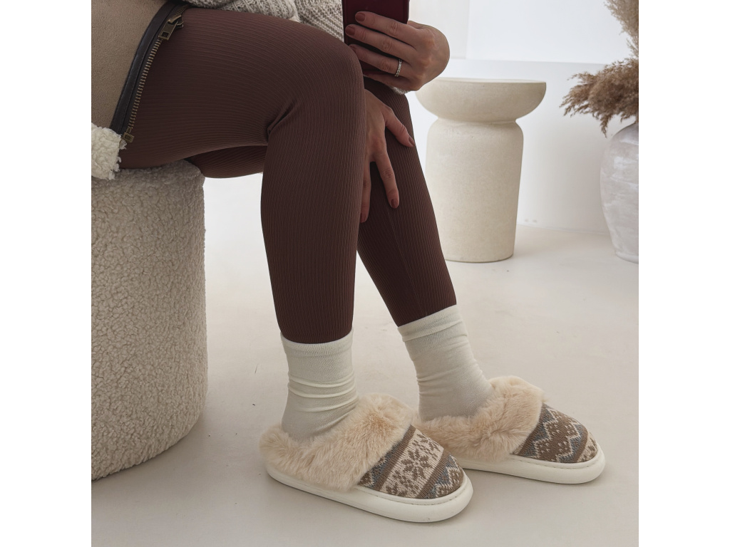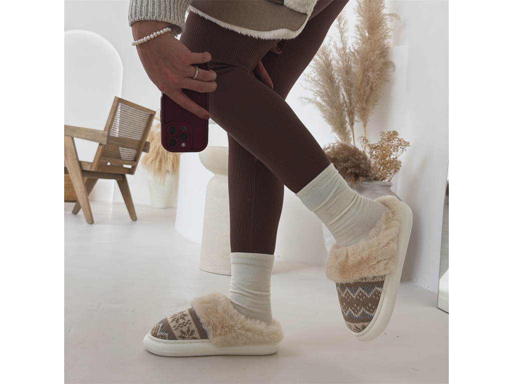 Tyto huňaté bačkůrky s norským vzorem si zamilujete hned na první obutí. Jsou nesmírně měkoučké, teplé a příjemné na nošení – ideální volba na domácí pohodu v chladnějších dnech. Vnitřek je vystlaný hebkým kožíškem, který krásně zahřeje, a díky praktické podrážce se v nich můžete pohodlně pohybovat po celém bytě.