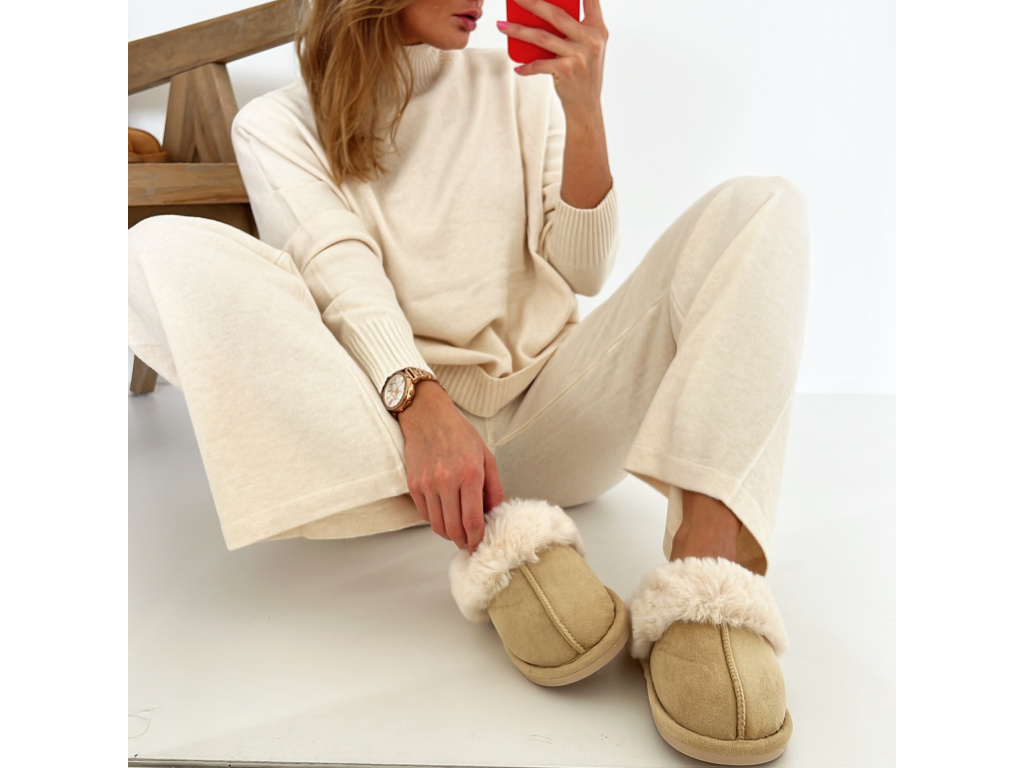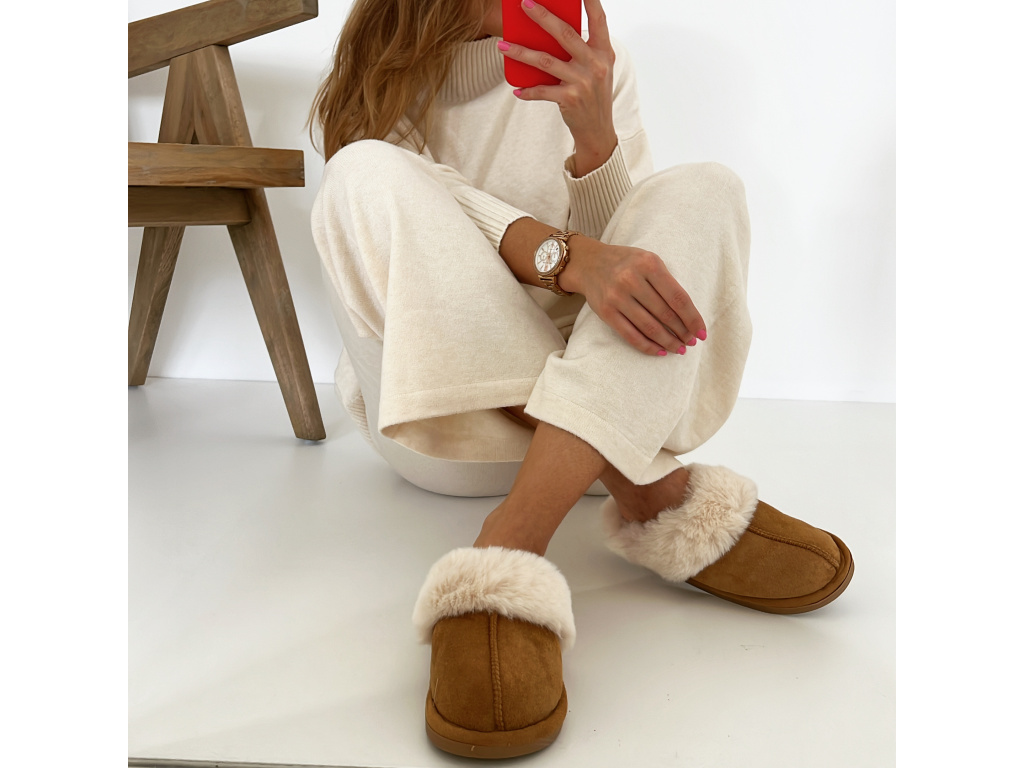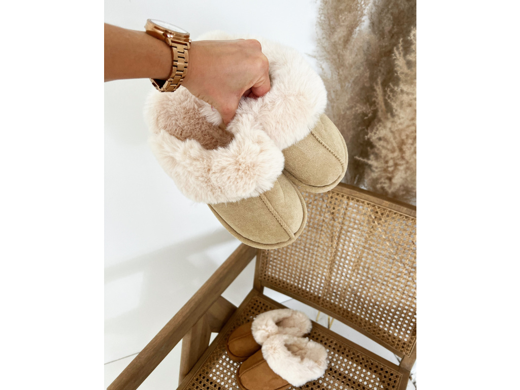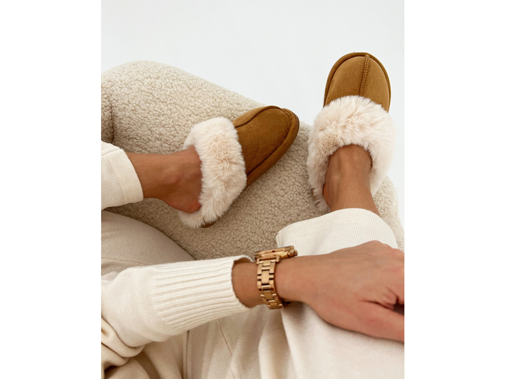 Stylové a neuvěřitelně pohodlné bačkůrky s měkoučkým chloupkem a vnitřním kožíškem, který krásně zahřeje v chladných dnech. Ideální pro domácí pohodu a relax. Dostupné ve dvou elegantních barvách – camel a béžové. Podrážka je gumová.