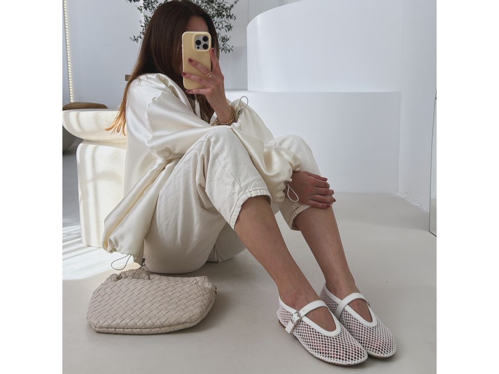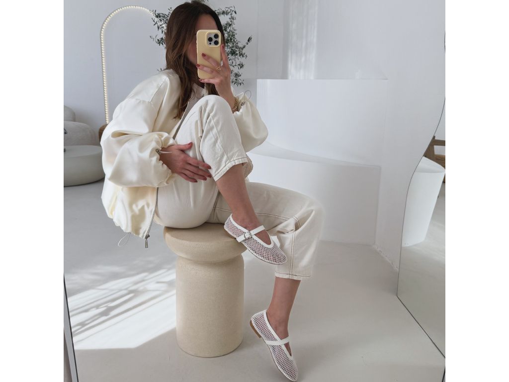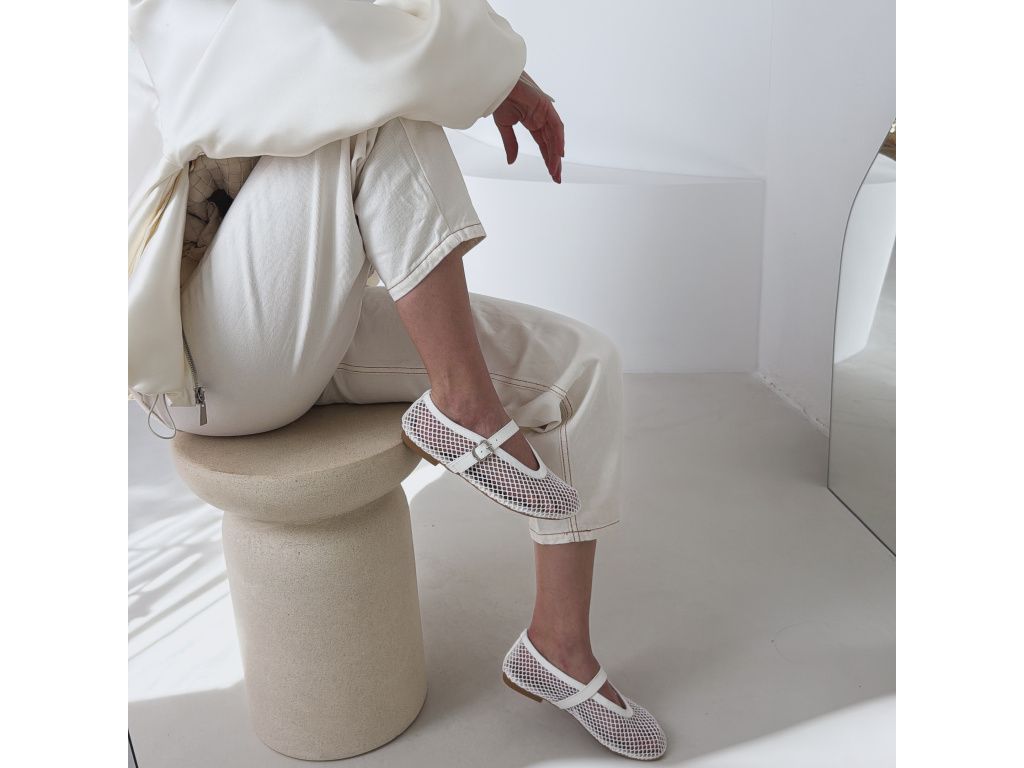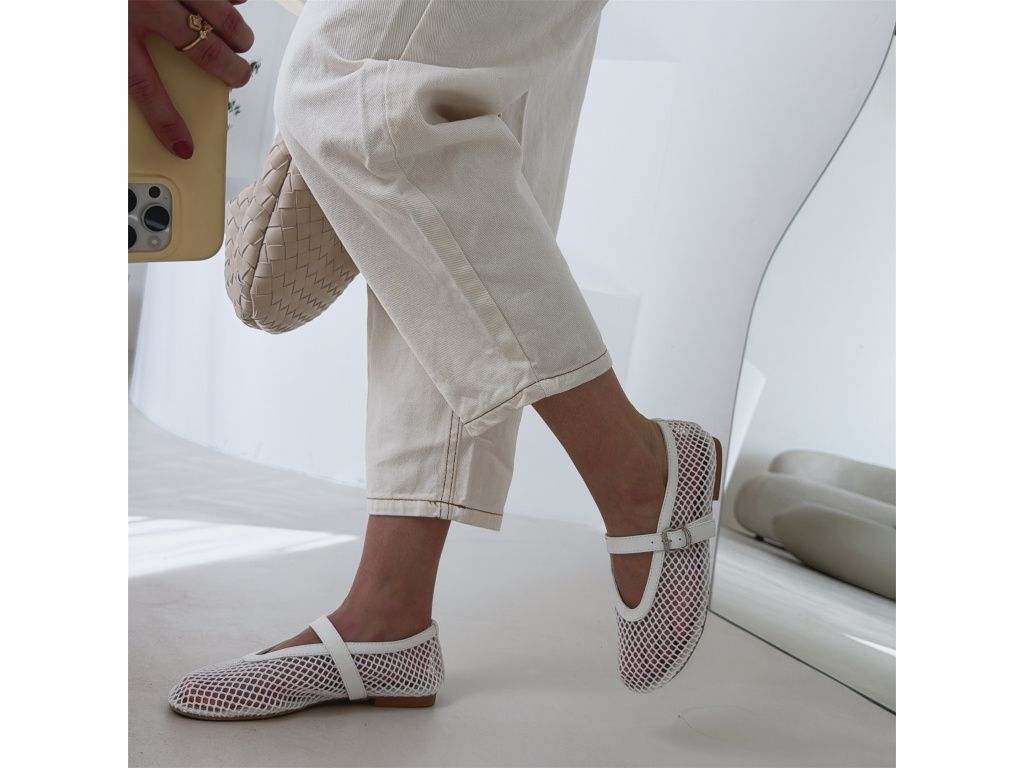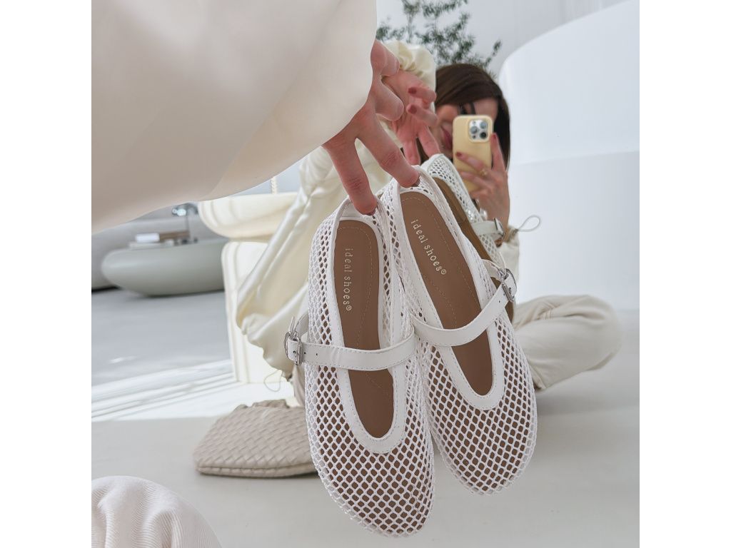 Lehké síťované baleríny v bílé barvě, které jsou ideální na jaro i léto. Díky prodyšnému materiálu jsou velmi pohodlné a krásně vzdušné. Mají jemný pásek přes nárt se zapínáním, který dodává botám ženský a elegantní vzhled. Skvěle doplní jak casual outfit, tak i více elegantní look.