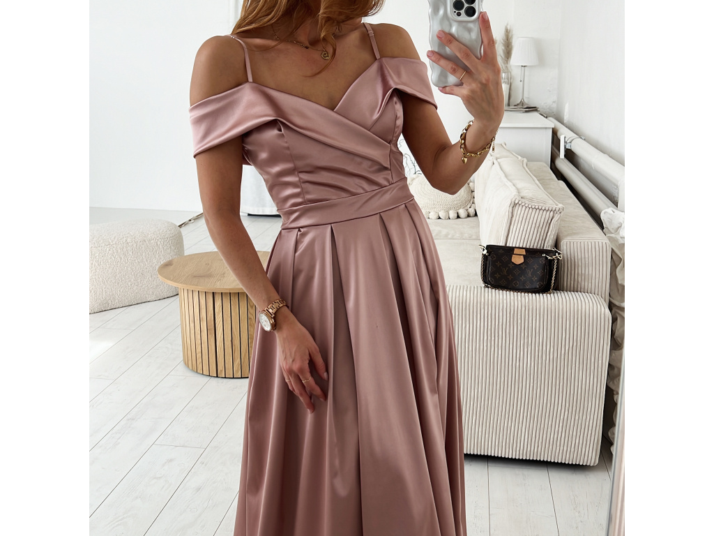 Dokonalé, sexy romantické šaty z elastického, lesklého materiálu s rozparkem na přední straně a s vyztužením v prsou. Šaty mají délkově nastavitelná ramínka a zapínají se na uzávěr, který je umístěn na zádech. V oblasti pase a prsou šaty hezky pruží. Velikost je univerzální, sedí na nejlépe na XS -M. Foceno je na XSku a výšce 165 cm.