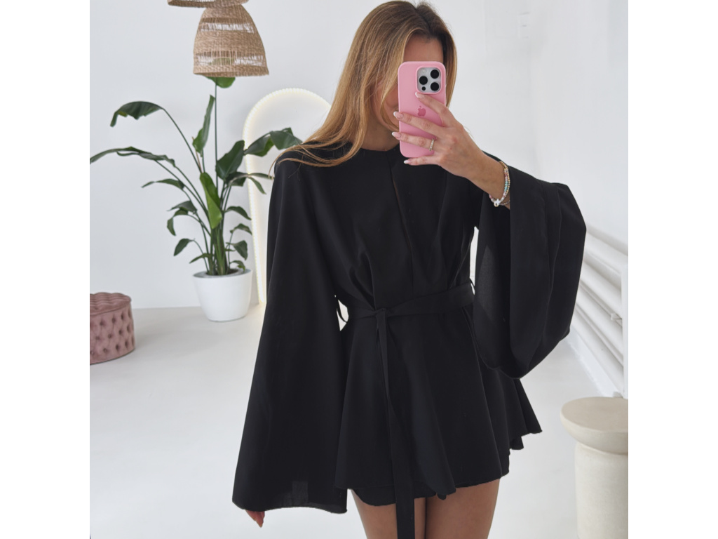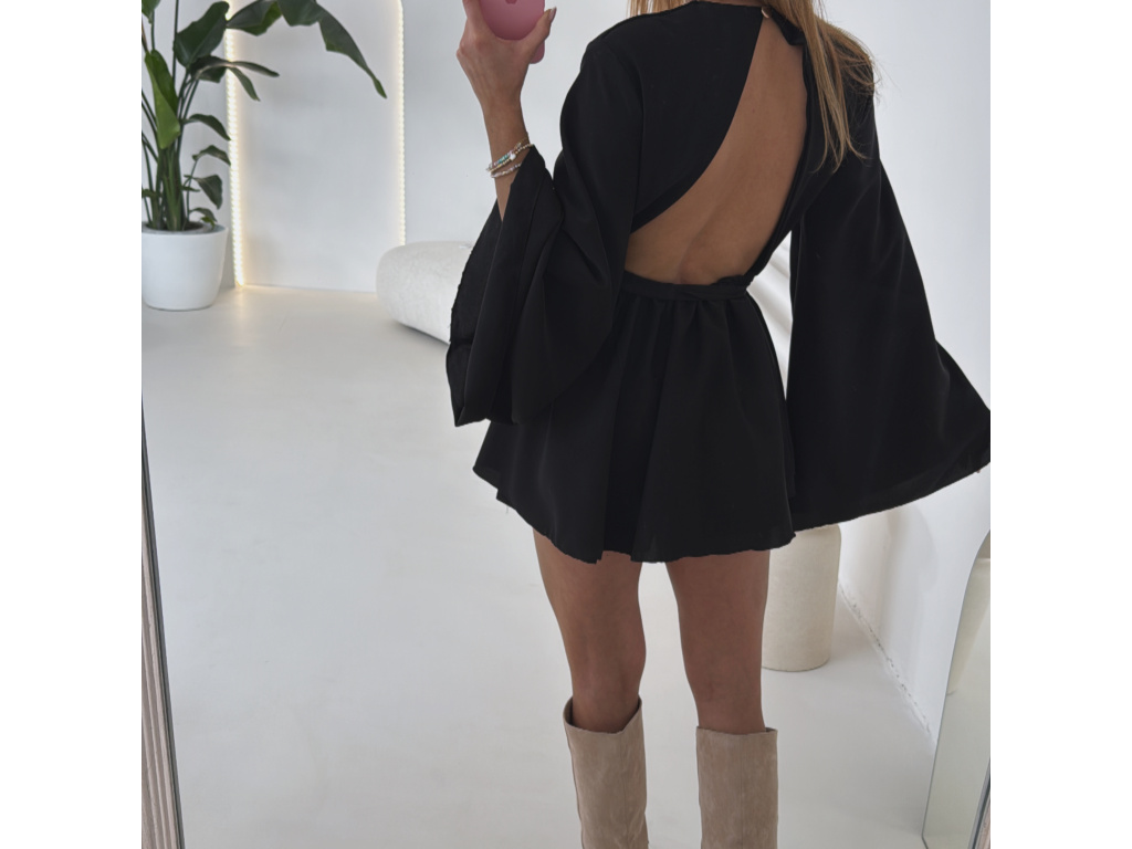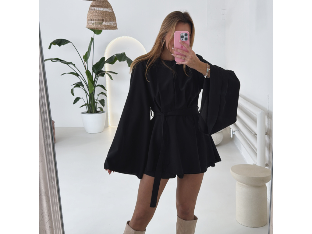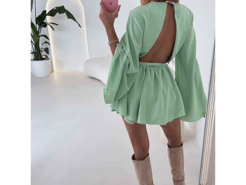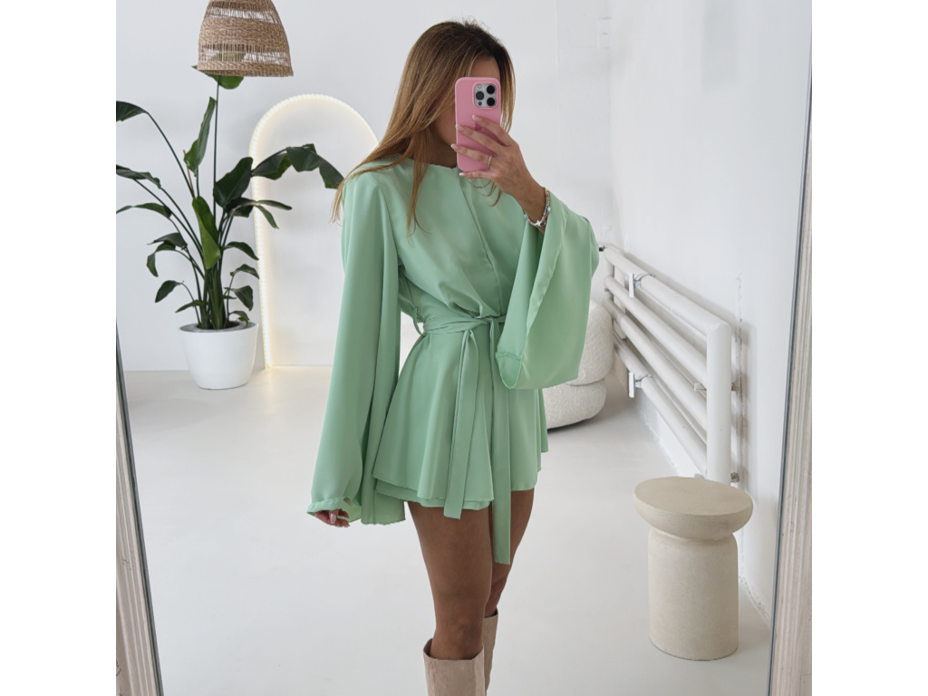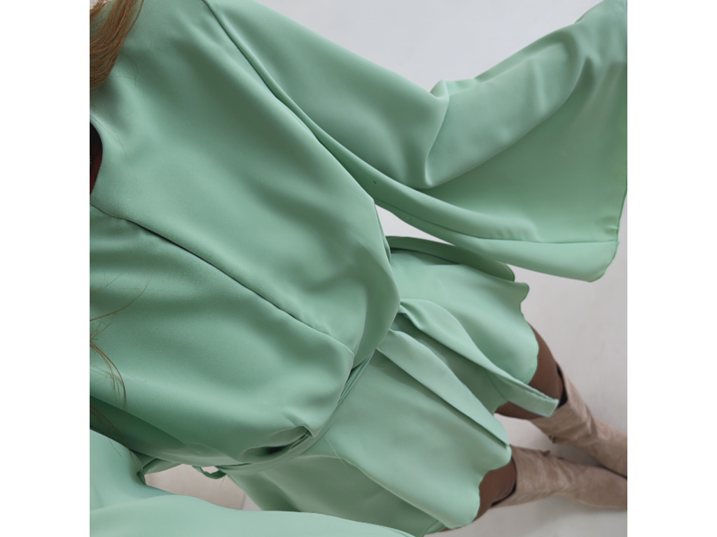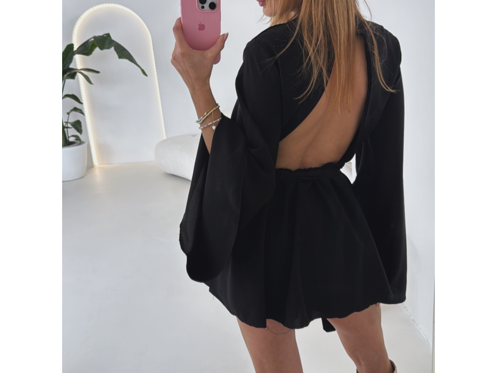 Sexy a zároveň elegantní šatový overal s páskem v růžové, tyrkysové a černé barvě. Overal má zajímavý výstřih na zádech se zapínáním u krku, vyztužená ramena a zvonové, dlouhé rukávy. V pase overal hezky pruží a lze ho stáhnout páskem. Nadčasový kousek, který kombinuje eleganci a moderní šmrnc. Velikost je univerzální, sedí na XS až menší M. Foceno je na velikosti XS a výšce 165 cm.