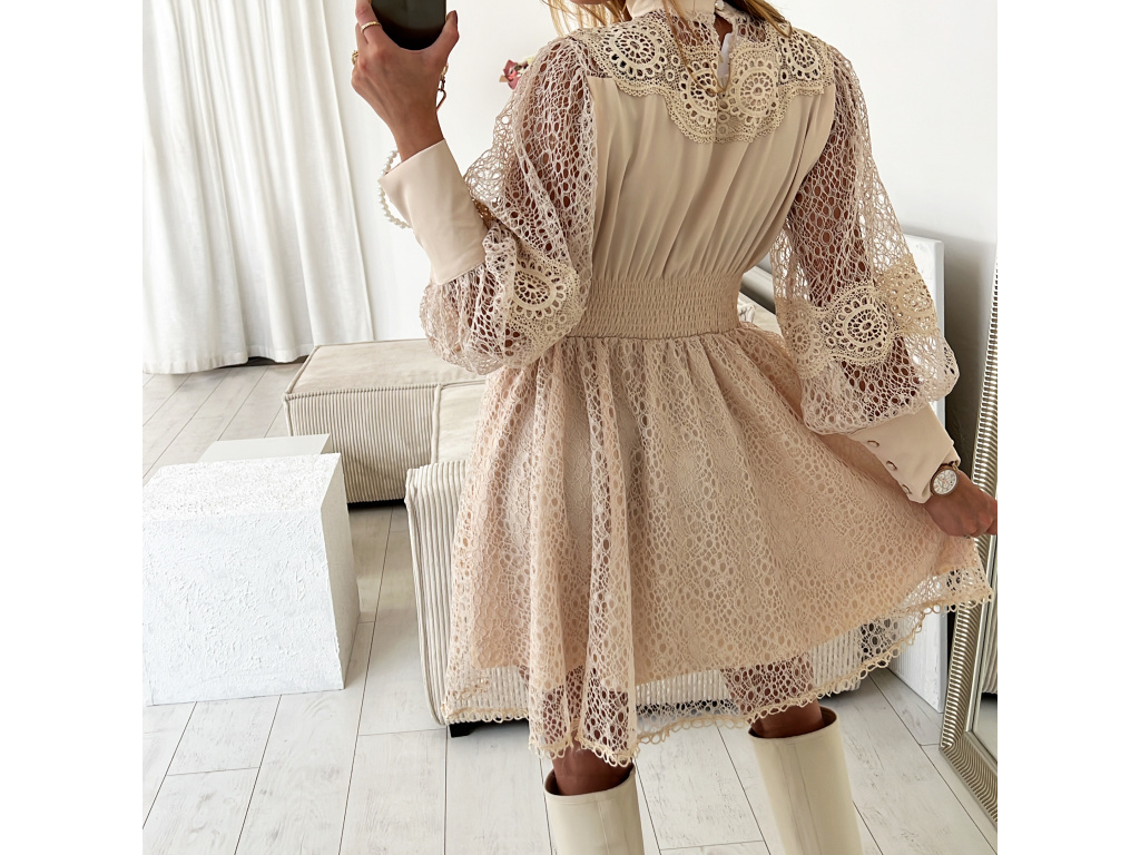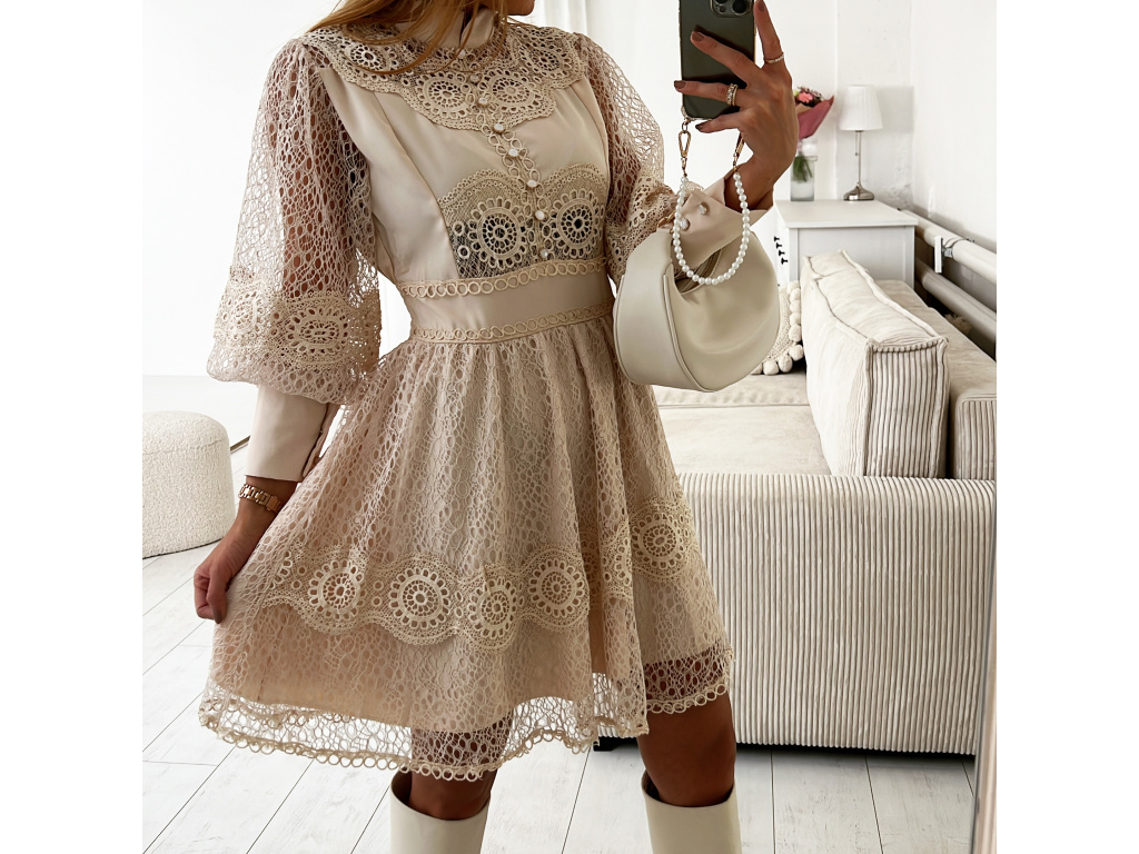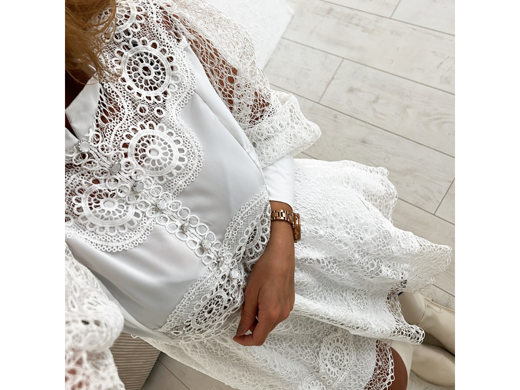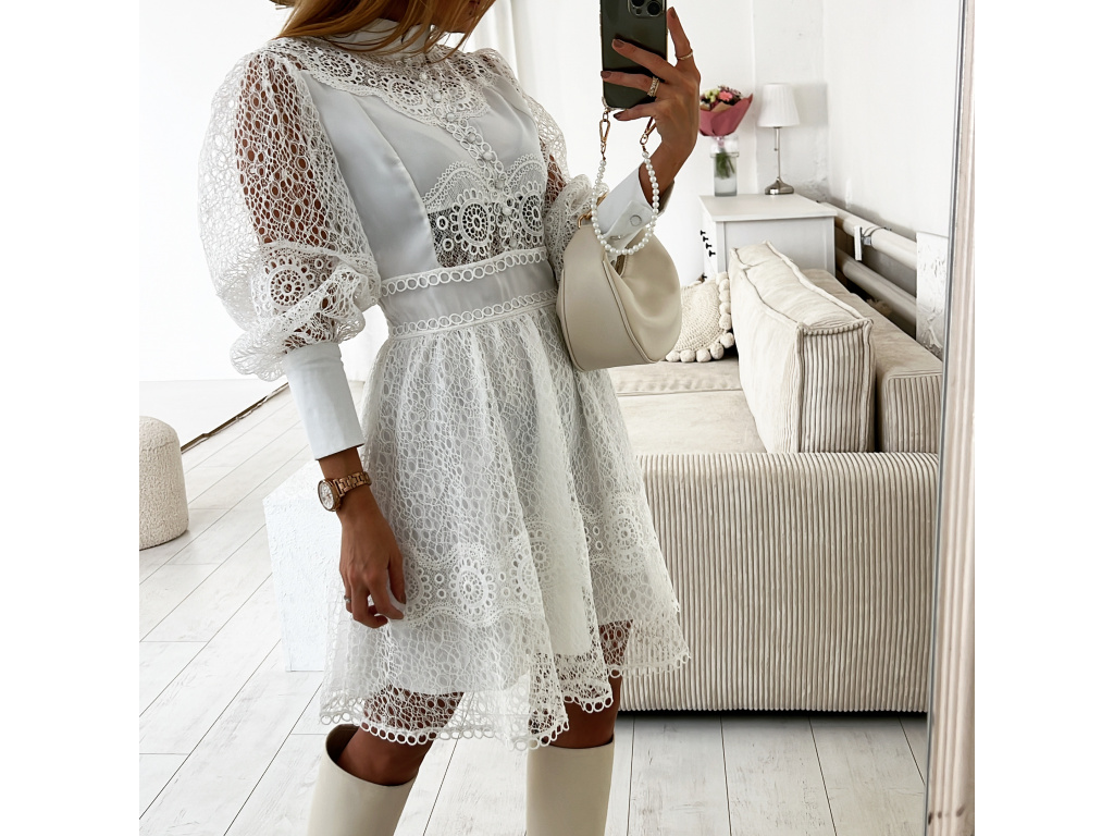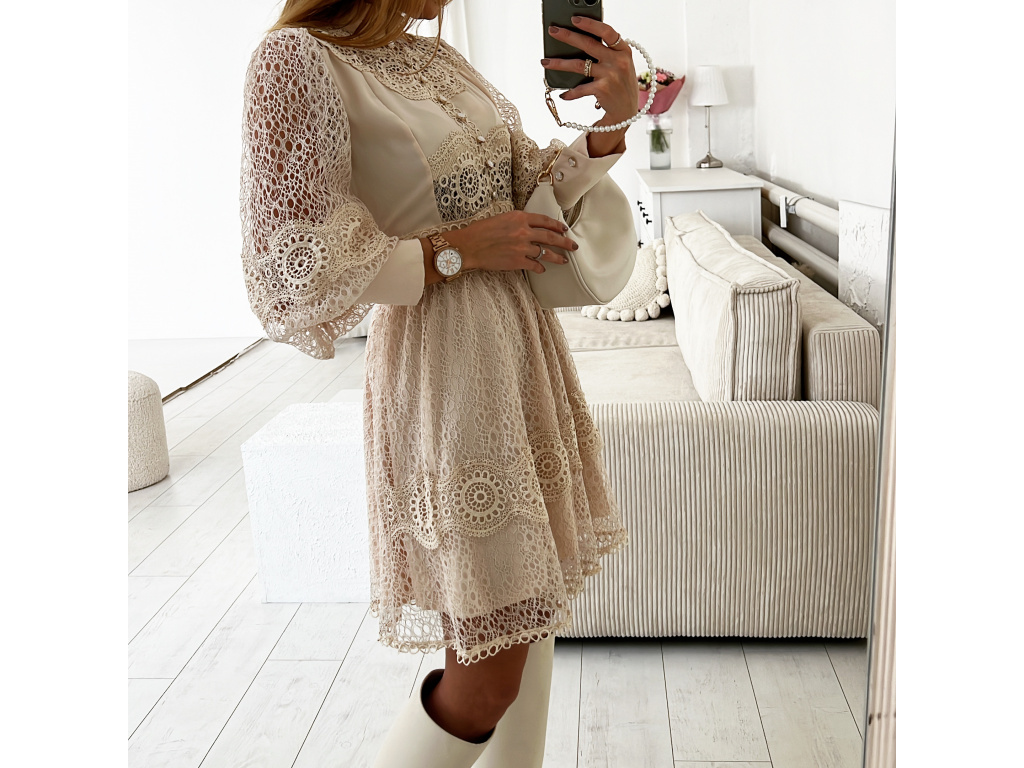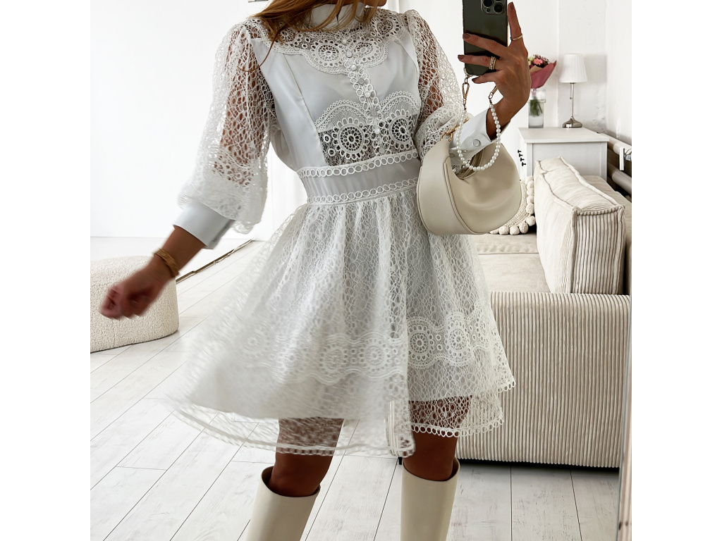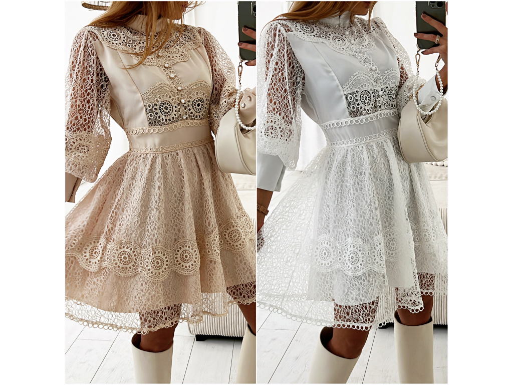 Šaty s krajkou v bílé a béžové barvě Raven