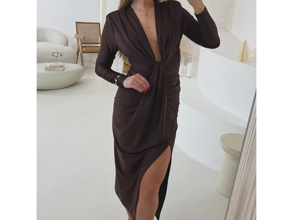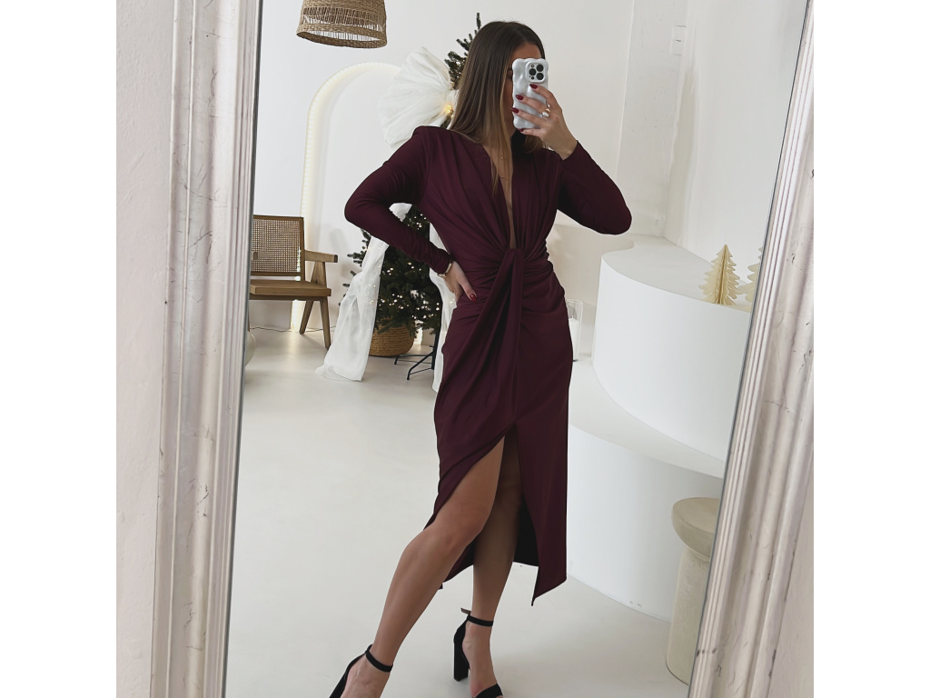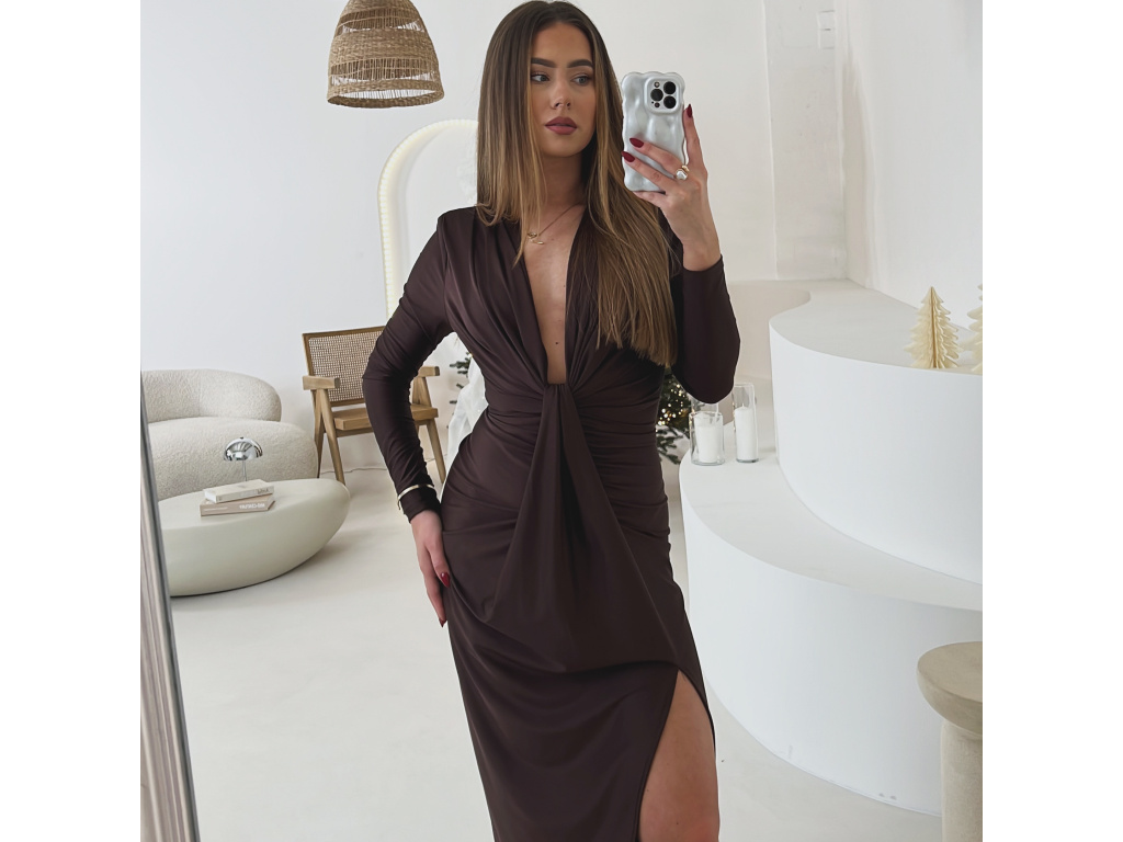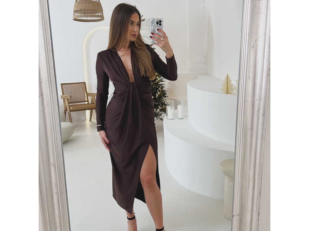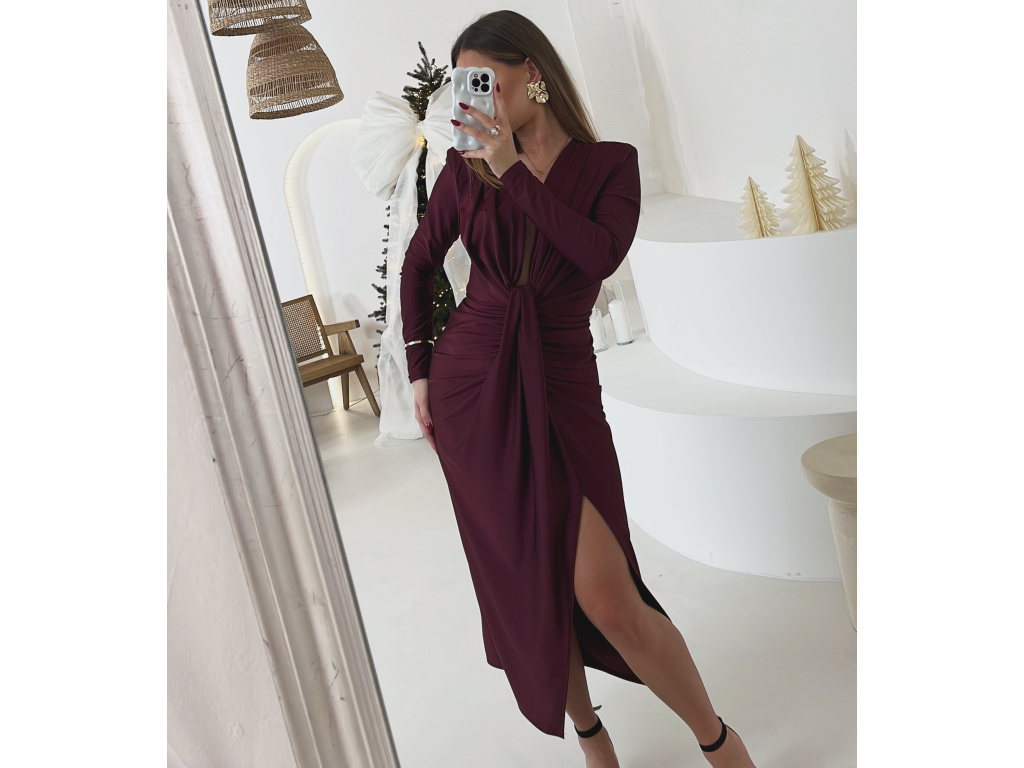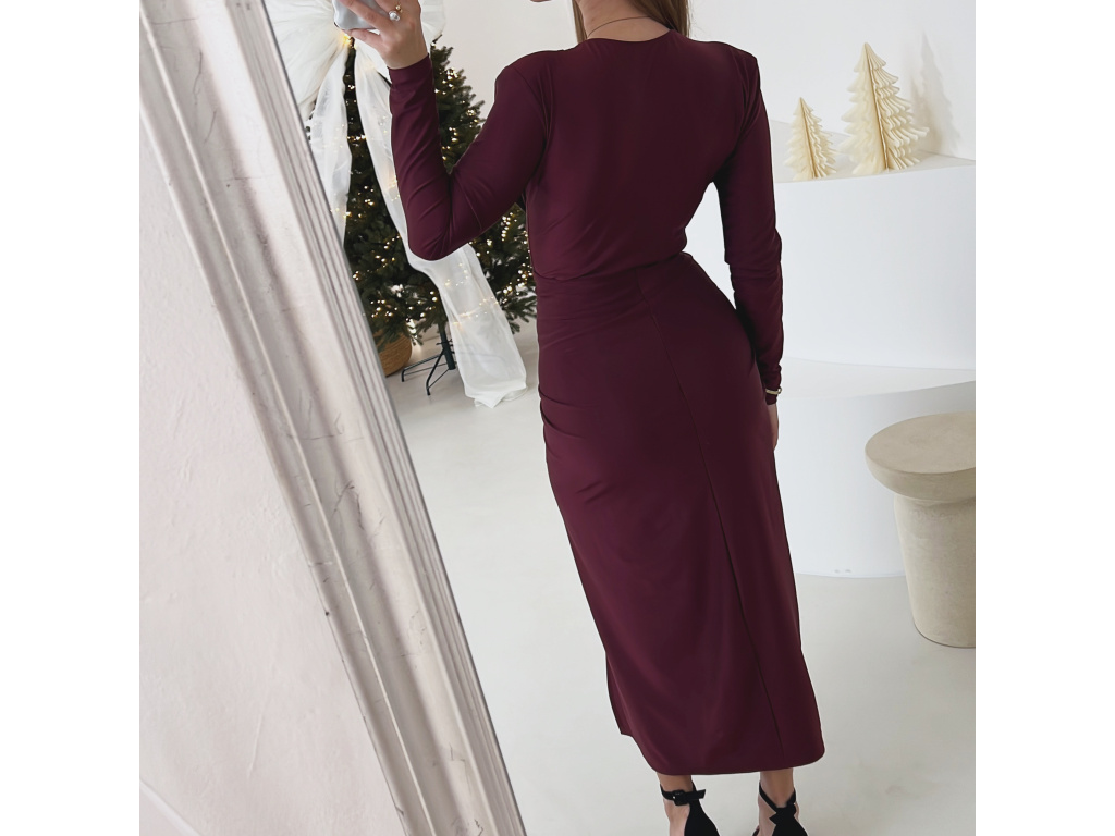 Tyto sexy elastické šaty okouzlí svým nádherným, výrazným střihem, který dokonale zvýrazní ženskou siluetu. Mají vystužená ramena pro elegantní linii a jsou ušité z lehce lesklého, splývavého materiálu, který se krásně natáhne. Přední část zdobí efektní řasení a hluboký výstřih a rozparek dodává šatům šmrnc a svůdnost.