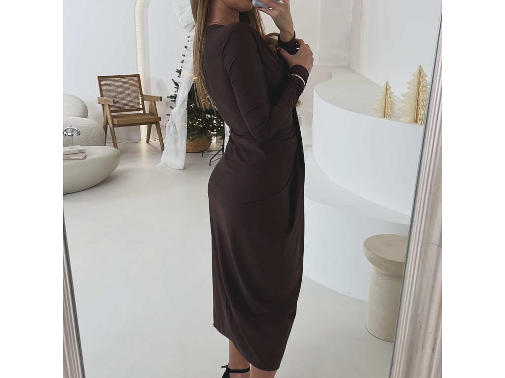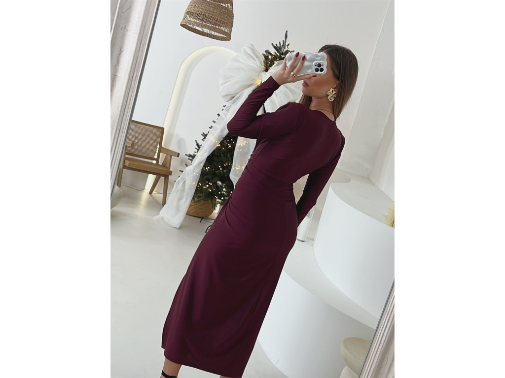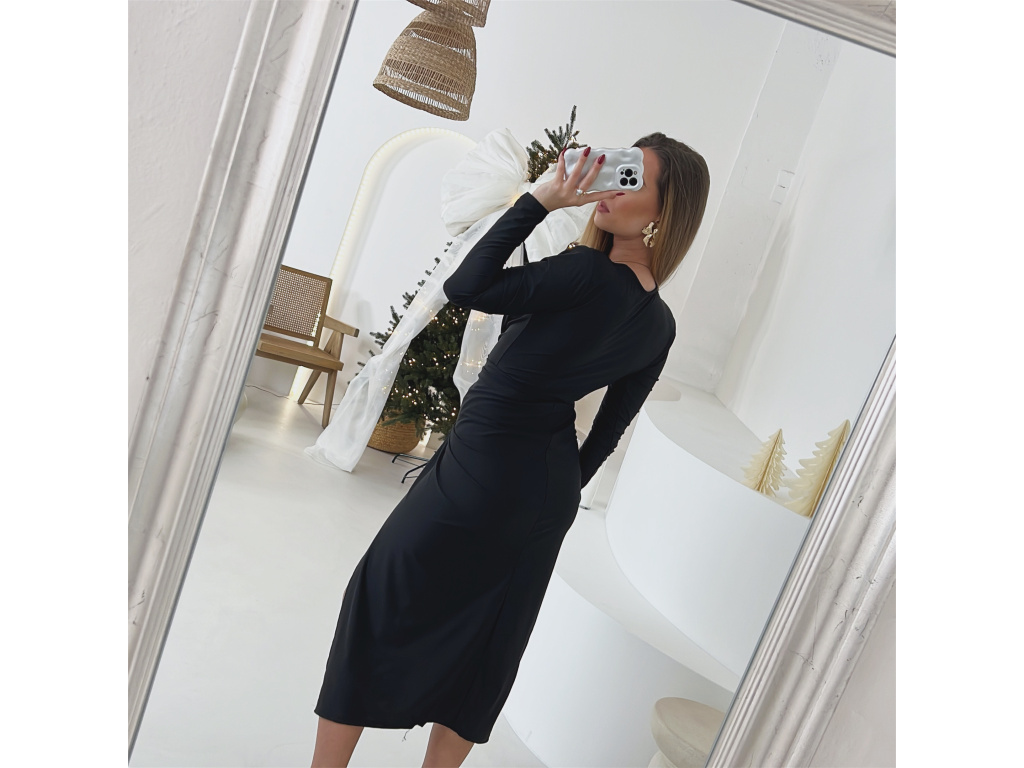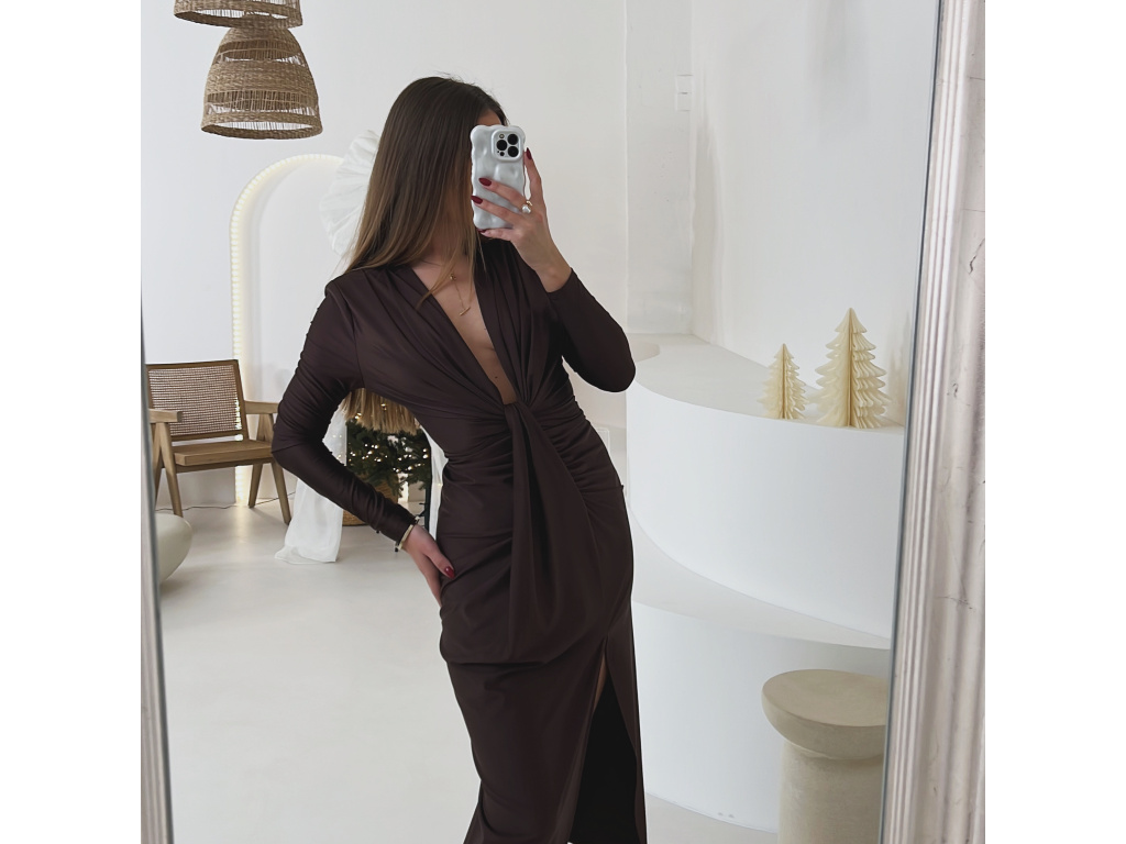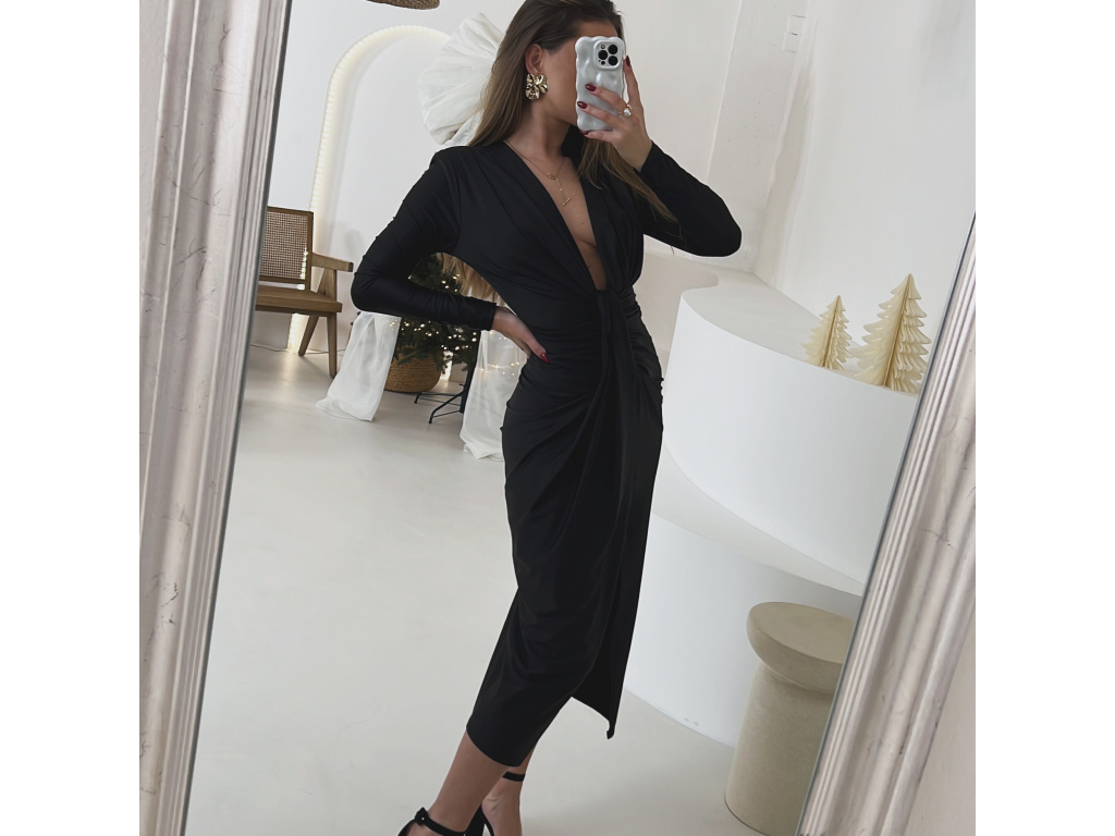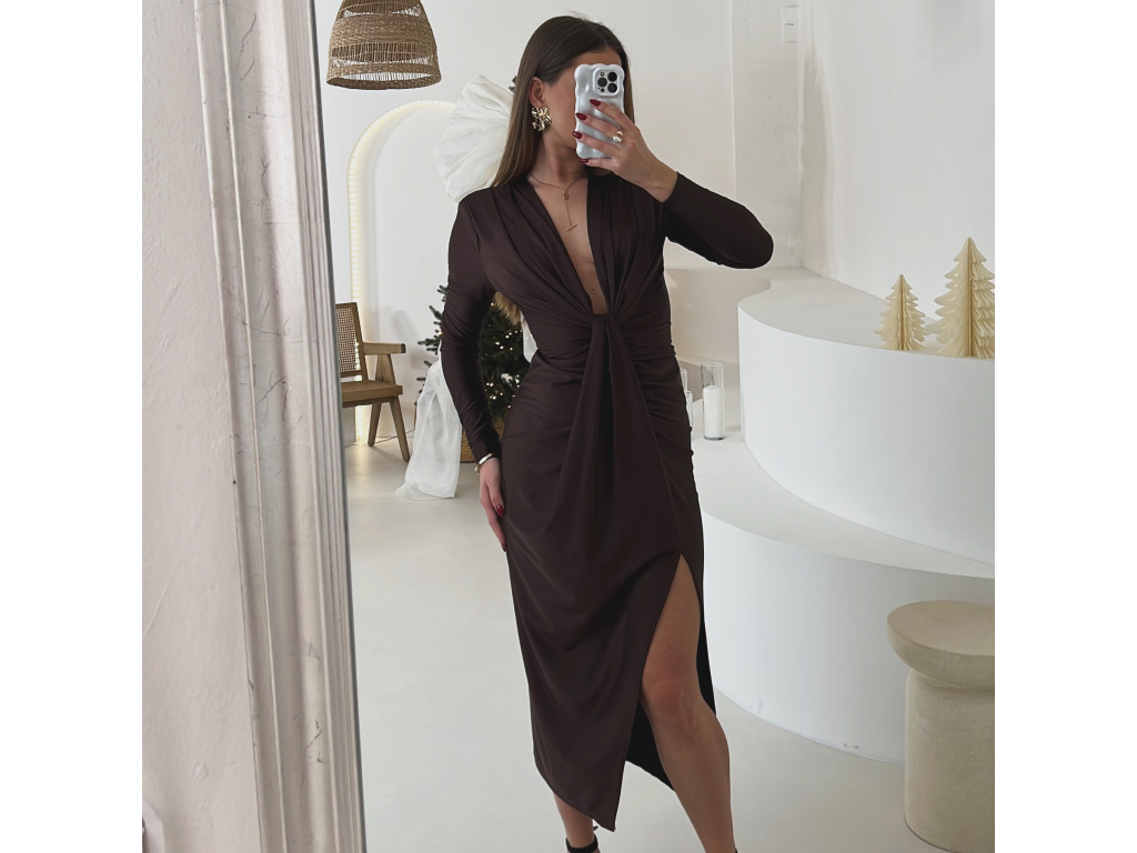 Tyto sexy elastické šaty okouzlí svým nádherným, výrazným střihem, který dokonale zvýrazní ženskou siluetu. Mají vystužená ramena pro elegantní linii a jsou ušité z lehce lesklého, splývavého materiálu, který se krásně natáhne. Přední část zdobí efektní řasení a hluboký výstřih a rozparek dodává šatům šmrnc a svůdnost.