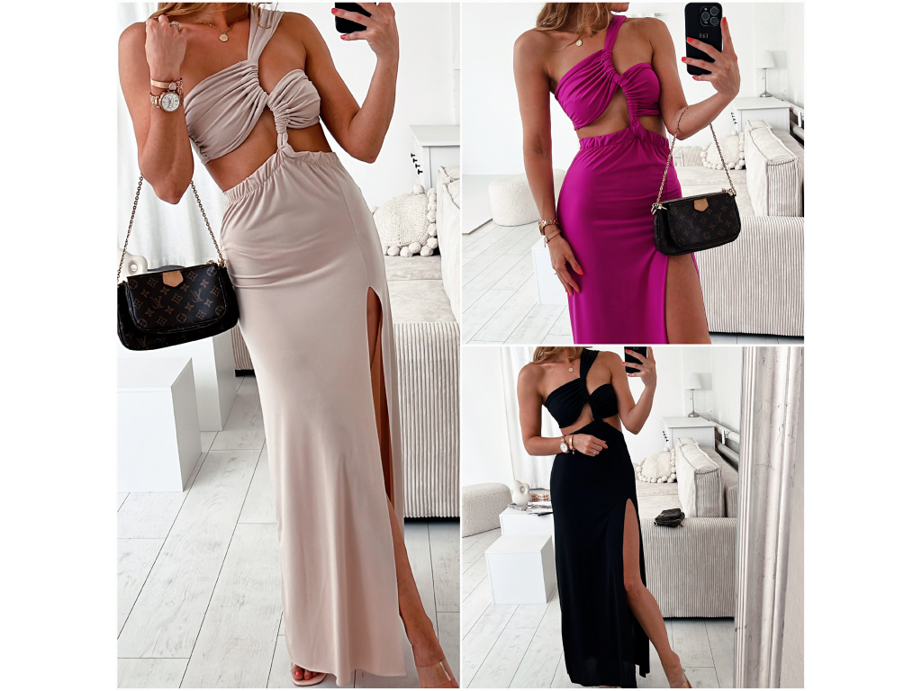 Sexy šaty v midi délce s rozparkem na předním díle. Materiál je velice příjemný a pružný. Prsa nejsou vyztužená. Barva černá, fuchsiová a béžová. V pase jsou šaty na gumu, která se hezky natáhne a přizpůsobí postavě. Velikost je univerzální, sedí na XS - M. Foceno na XSku a výšce 165 cm.