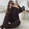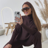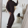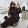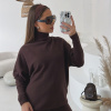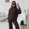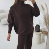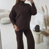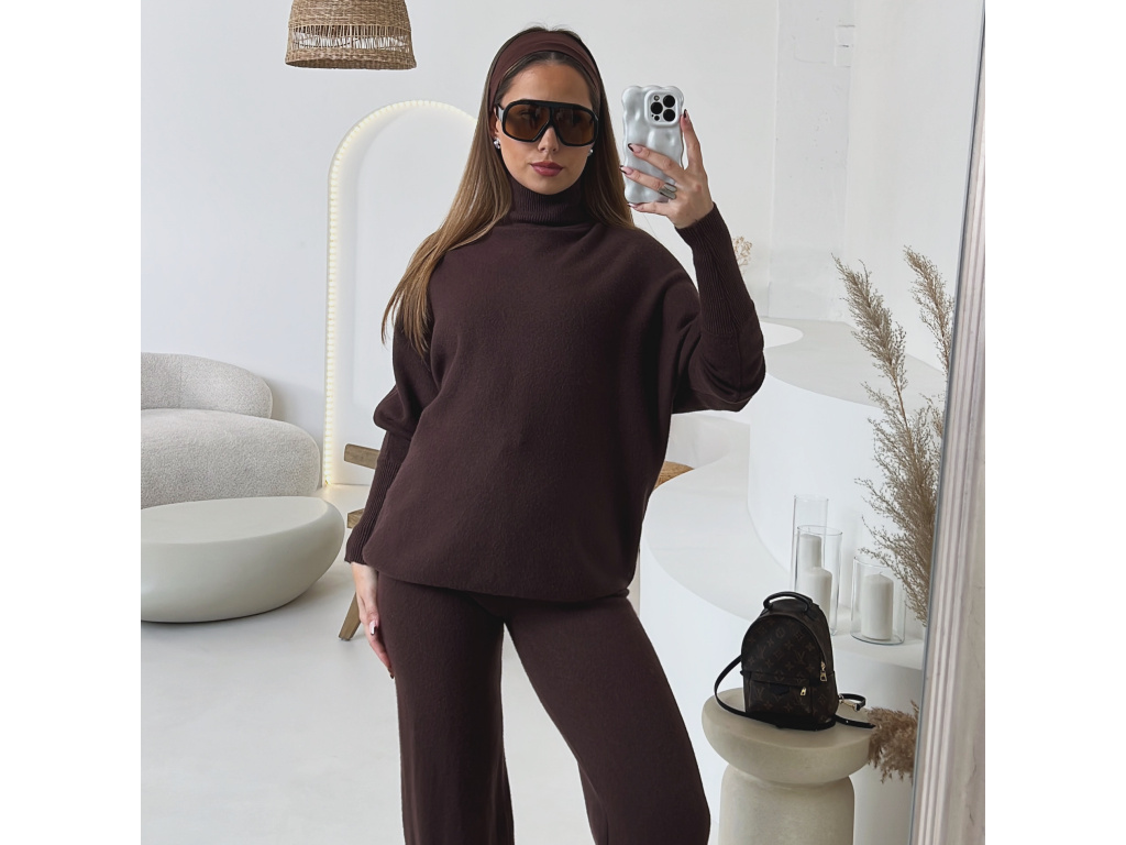 Elegantní čokoládový úpletový set Velvory je ztělesněním pohodlí a stylu. Souprava se skládá z volnějšího svetříku s rolákem a pohodlných kalhot s elastickým pasem na šňůrku. Materiál je měkký, extrémně pružný a příjemný na dotek, ideální pro každodenní nošení i ležérní elegance.
