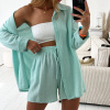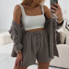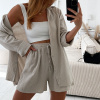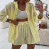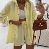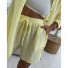 Naprosto dokonalý a příjemný mušelínový komplet šortek a košile v hnědé, růžové, béžové, žluté, tyrkysové a bílé barvě. V pase šortky hezky pruží. Vhodný na běžné nošení nebo na plavky. Lze nosit i samostatně. Velikost je univerzální, sedí na XS,S a M.