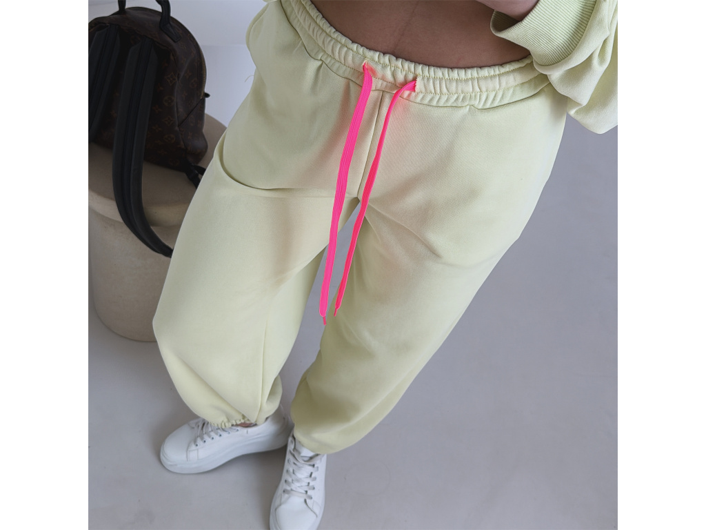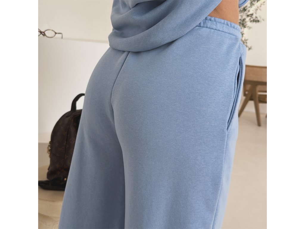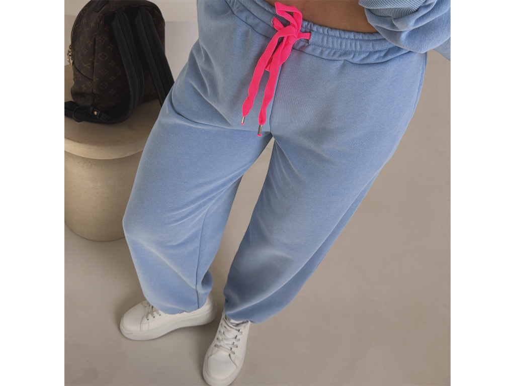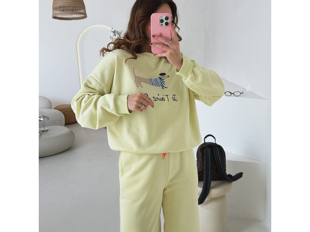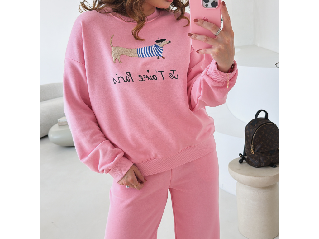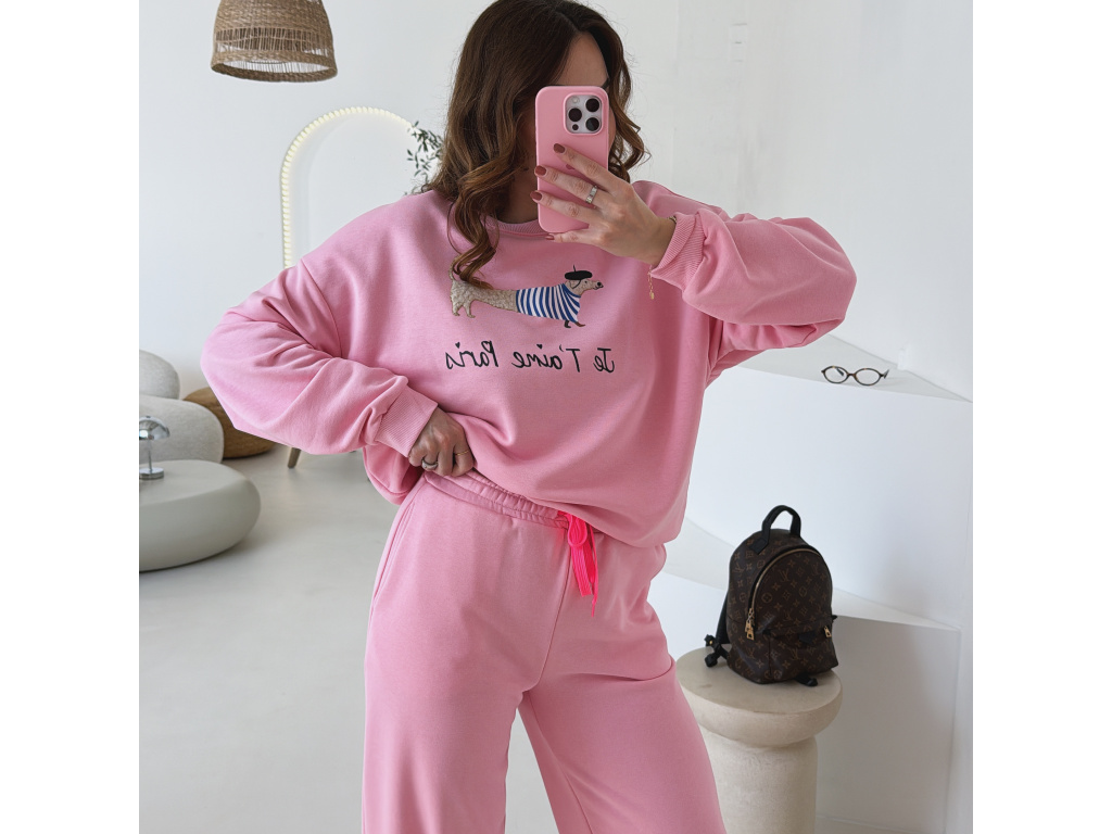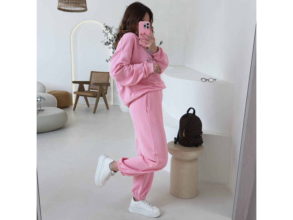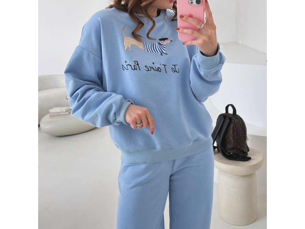 Pohodlná tepláková souprava, která je ideální na každodenní nošení i volný čas. Souprava se skládá z mikiny s potiskem a tepláků. Mikina má volnější střih a je vyrobena z velmi příjemného, hutnějšího materiálu s podílem 65 % bavlny, takže je měkká, pohodlná a krásně drží tvar. Tepláky mají v pase gumu se šňůrkou na stažení, po stranách kapsy a nohavice jsou zakončené do gumy. Souprava je v univerzální velikosti, která sedí od XS po menší L.