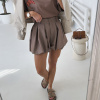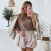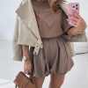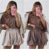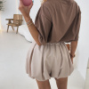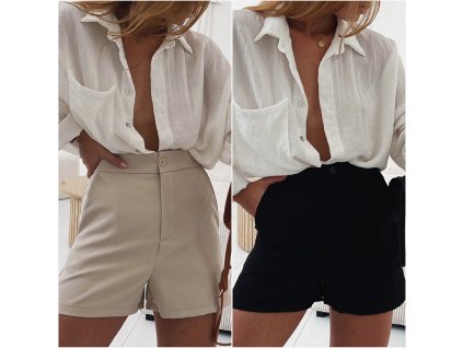 Originální balonové šortky s výraznými sklady a volnějším střihem, které dodají outfitu neotřelý šik vzhled. Vysoký pas a zapínání na knoflík krásně zvýrazní siluetu. Dostupné v béžové a hnědé barvě – ideální pro kombinaci s basic topy i elegantními halenkami. V pase šortky ze zadní strany hezky pruží. Šortky mají uvnitř podšívku. Velikost je univerzální, sedí nejlépe na XS-M. Foceno je na velikosti XS a výšce 165 cm.