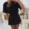 Elegantní, nadčasová sexy skort sukně se sklady v černé a šedé barvě. Zapínání je na boční straně na uzávěr. Sukně má všité šortky a je velice hezky kombinovatelná. Velikost je S, M a L, sedí o číslo méně (S na XS, M na S a L na M). Velikost S je focena na XSku a výšce 165 cm.