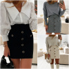 Sexy a zároveň elegantní sukně z velice příjemného, úpletového materiálu zdobená knoflíky v šedé, máslové a černé barvě. Velikost je univerzální, sedí nejlépe XS-S a menší M. Foceno je na velikosti XS a výšce 165 cm.