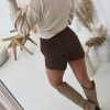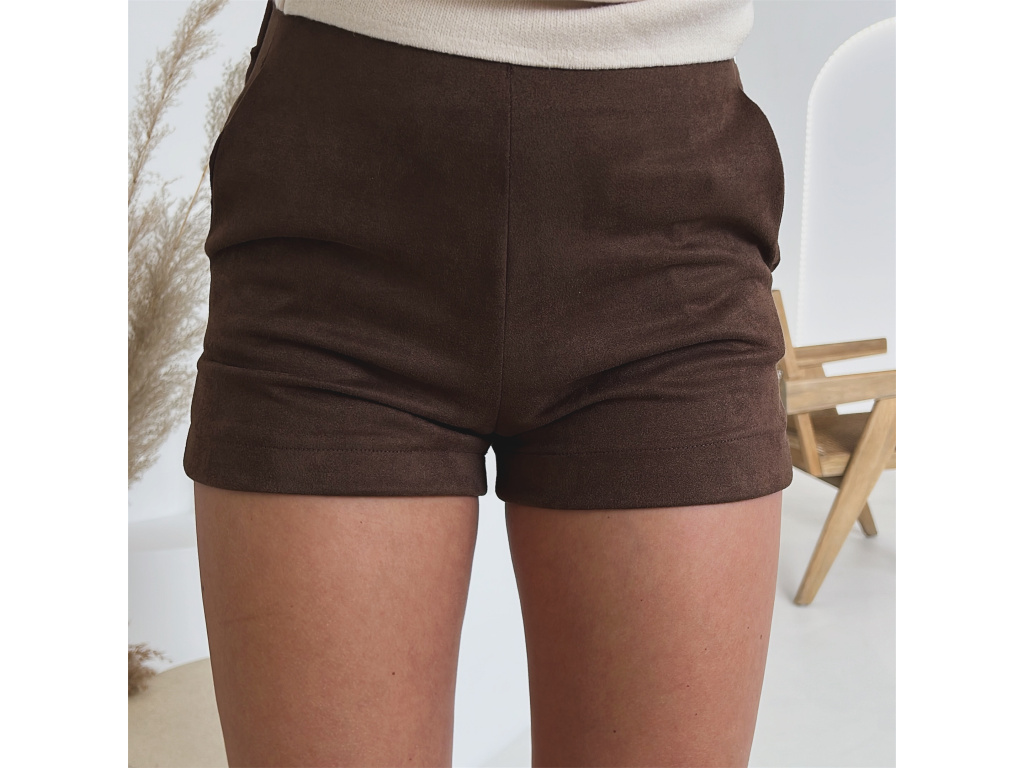 Elegantní semišové šortky Semory v hnědém odstínu jsou ideální volbou pro podzimní i jarní outfity. Měkký semišový materiál působí luxusně a příjemně na dotek. Praktické boční zapínání na zip zajišťuje pohodlné oblékání a perfektní padnutí. Šortky mají kapsy.