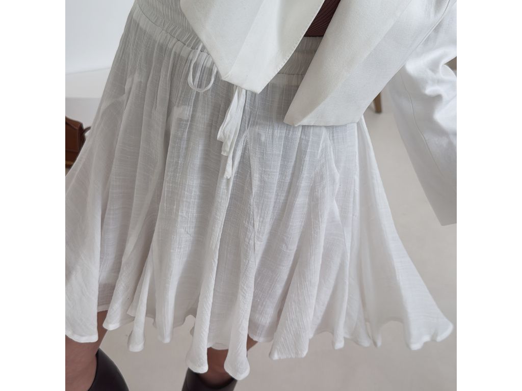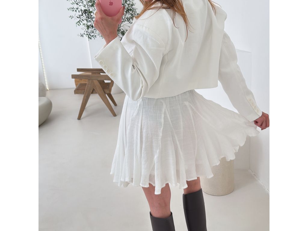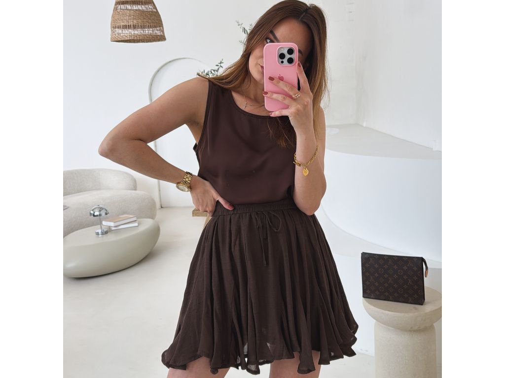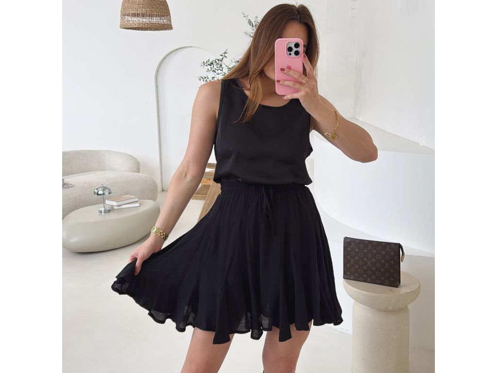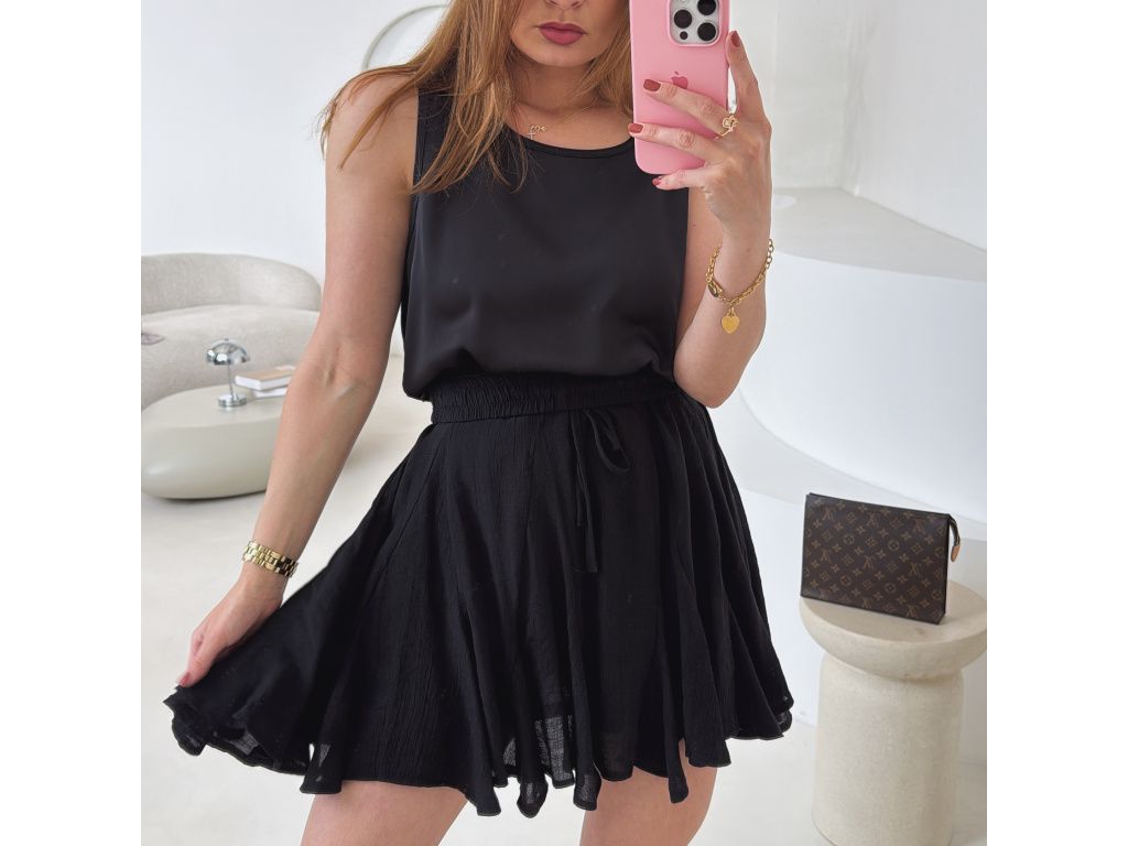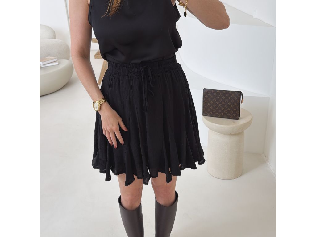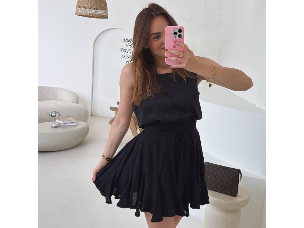 Lehká kolová sukně, která si tě získá na první obléknutí. Vyrobena z příjemného, vzdušného materiálu s podšívkou, takže je pohodlná a zároveň neprůhledná. V pase má elastickou gumu, díky které se krásně přizpůsobí postavě, a navíc ji můžeš stáhnout šňůrkou podle potřeby. Volánový střih dodává sukni ženský, hravý pohyb – ideální jak na každodenní nošení, tak i na hezčí příležitosti.