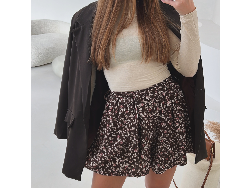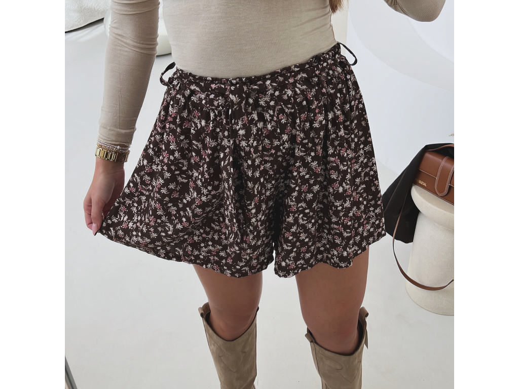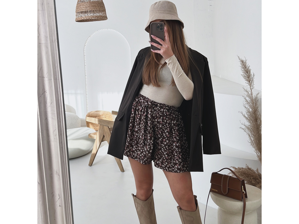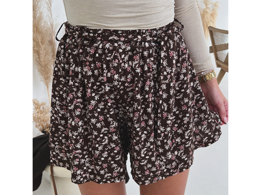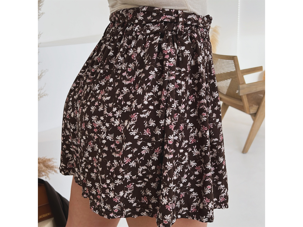 Lehké a vzdušné šortky s romantickým květinovým vzorem v hnědém odstínu. Mají pohodlný elastický pas s páskem, díky čemuž perfektně padnou každé postavě. Jsou ideální pro každodenní nošení – skvěle se kombinují s basic topem, halenkou nebo svetříkem. Vyrobené z lehkého materiálu, který se příjemně nosí a neškrtí. Velikost je univerzální, sedí na XS,S a M.