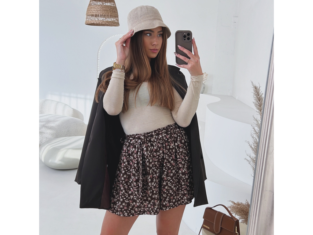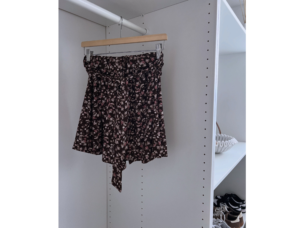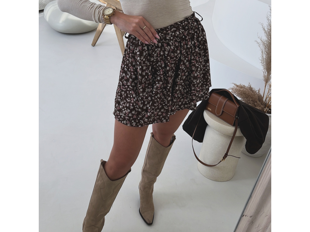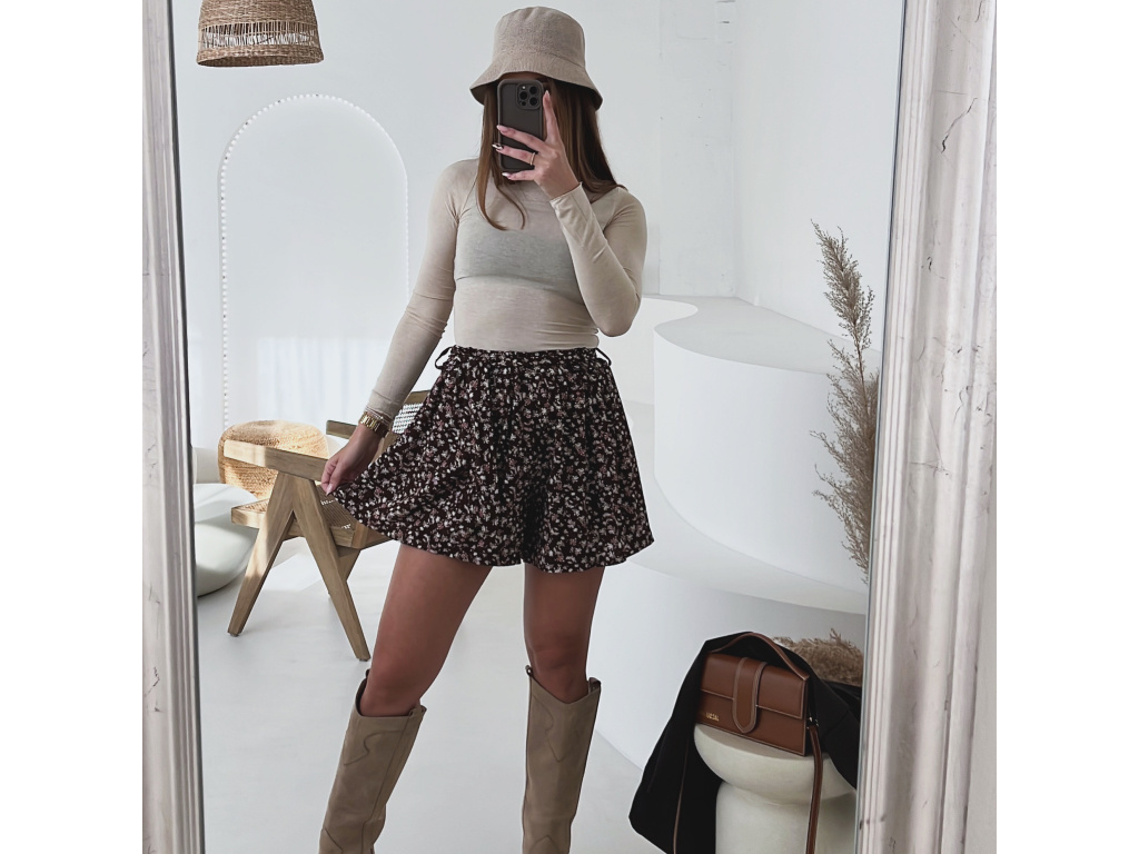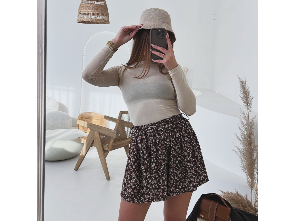 Lehké a vzdušné šortky s romantickým květinovým vzorem v hnědém odstínu. Mají pohodlný elastický pas s páskem, díky čemuž perfektně padnou každé postavě. Jsou ideální pro každodenní nošení – skvěle se kombinují s basic topem, halenkou nebo svetříkem. Vyrobené z lehkého materiálu, který se příjemně nosí a neškrtí. Velikost je univerzální, sedí na XS,S a M.