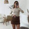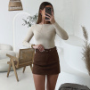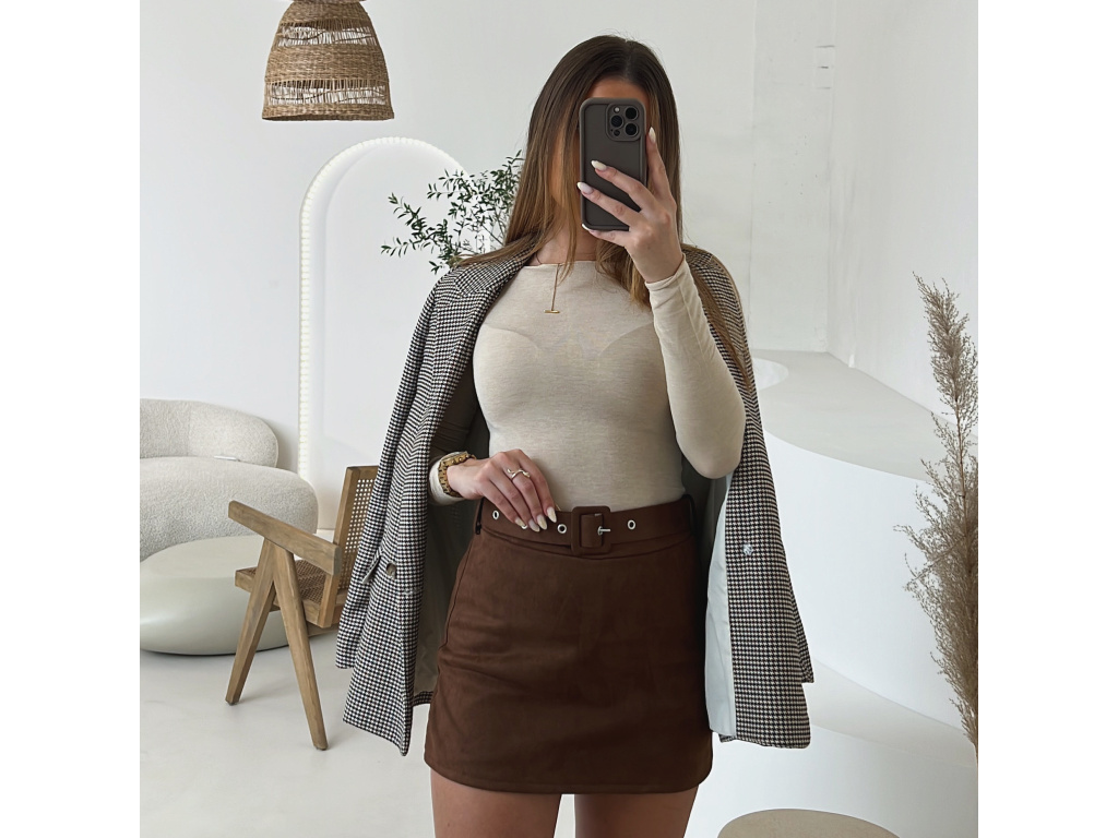 Elegantní skort – spojení sukně a šortek – který vám zajistí pohodlí i styl v jednom. Vyrobený z jemného semišového materiálu, doplněný o pásek ve stejném designu, který krásně zvýrazní pas. Díky praktickému střihu vypadá jako sukně, ale nabízí komfort šortek. Univerzální kousek vhodný jak k elegantní košili, tak i k volnějšímu topu. Velikost je univerzální, sedí na XS,S a M. Pásek není vhodný k praní!