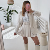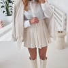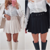 Stylová plisovaná mini sukně s výrazným páskem, která dodá outfitu elegantní i moderní vzhled. Sukně skvěle padne a zvýrazní postavu. Ideální k bílé košili nebo saku pro sofistikovaný look. Dostupná v černé a krémové barvě. Velikost je univerzální, sedí na XS, S, M. Foceno je na XSku a výšce 165 cm. Pásek není vhodný k praní.