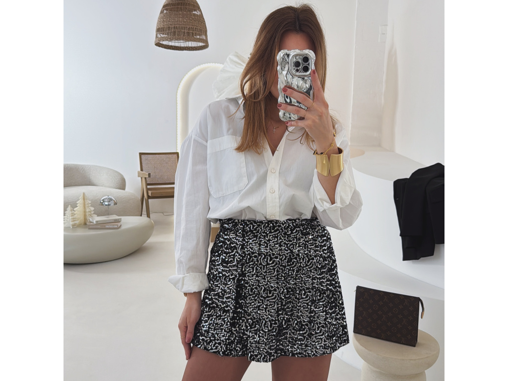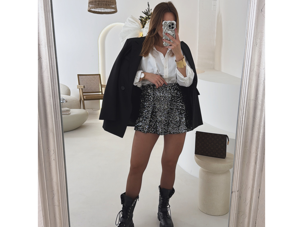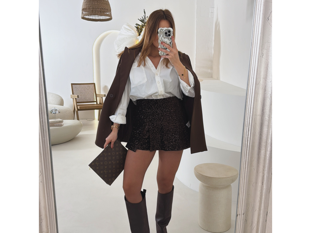 Stylová skort sukně, která kombinuje vzhled sukně a pohodlí všitých šortek. V pase je pružná guma, díky které perfektně sedí a přizpůsobí se postavě. Přední decentní rozparek dodává modelu jemnou eleganci a zvýrazňuje ženské křivky. Dostupná ve dvou luxusních barvách – výrazné stříbrné a sofistikované hnědé. Ideální na večírky, oslavy i stylové zimní outfity. Velikost je univerzální, sedí na XS,S a M.