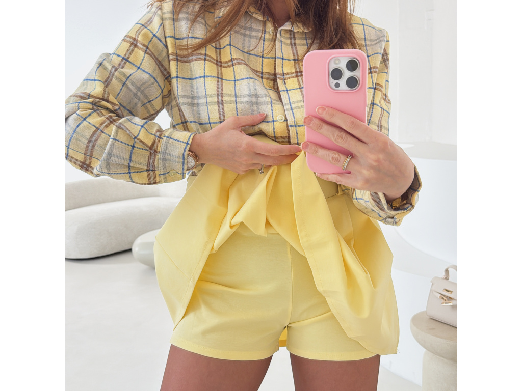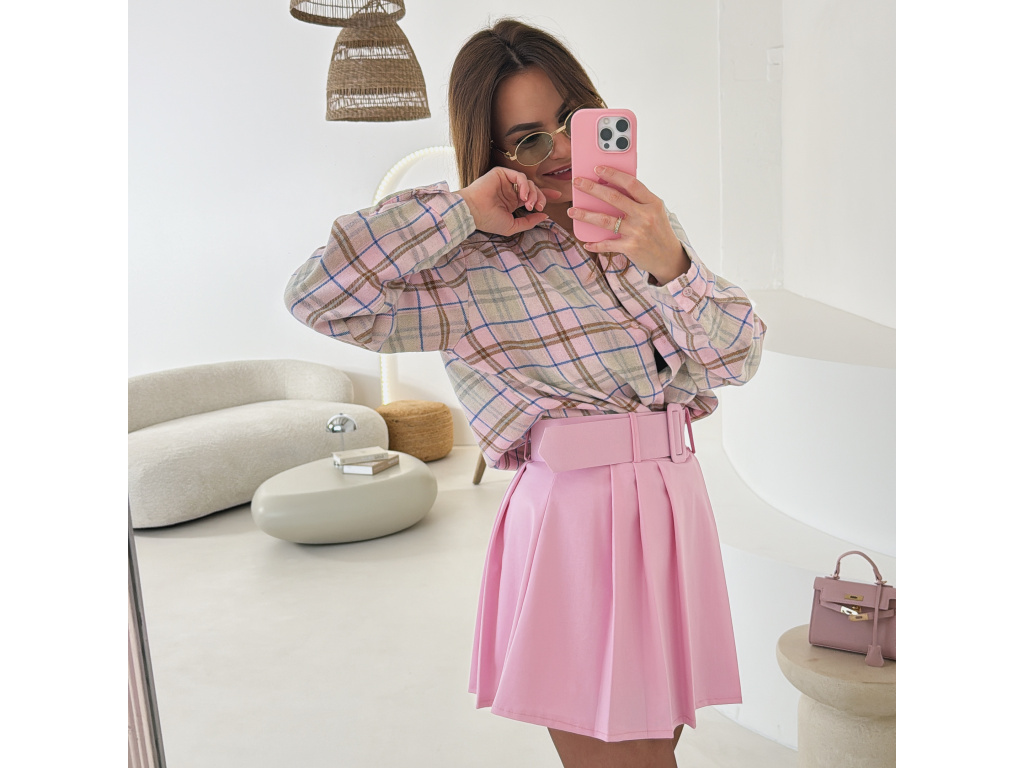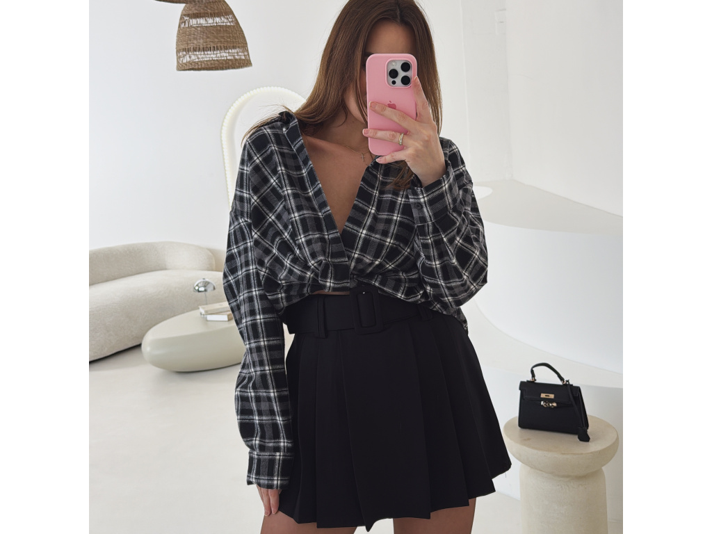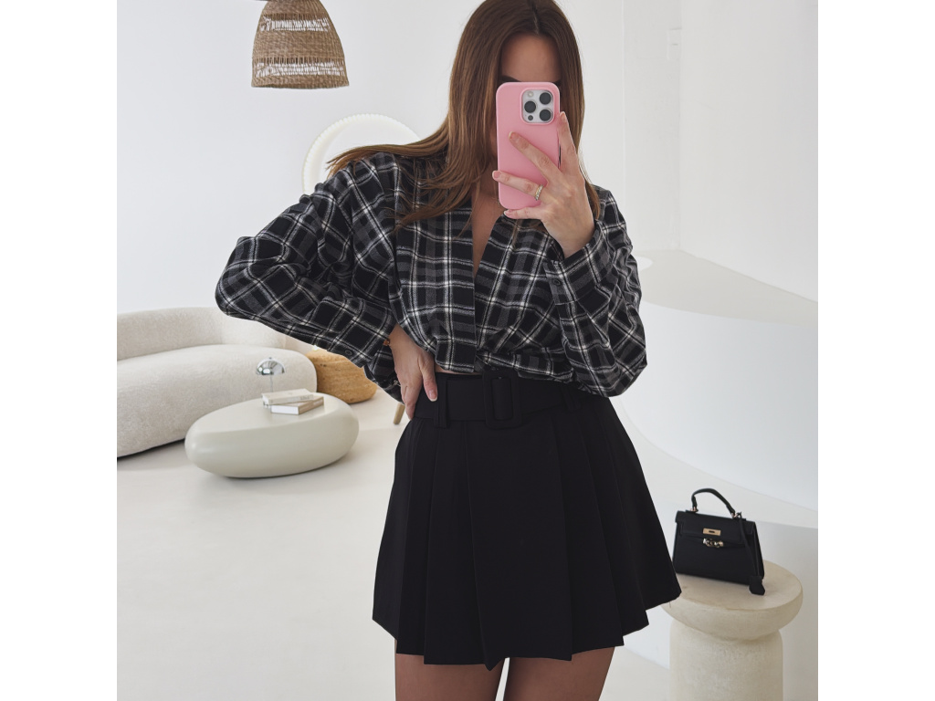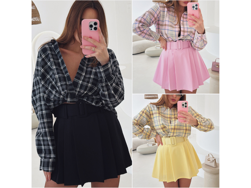 Stylová sukně s elegantním páskem a praktickými všitými šortkami, které zajišťují maximální pohodlí a jistotu při nošení. Áčkový střih krásně zvýrazní pas a působí žensky a upraveně. Ideální volba pro každodenní nošení i stylové outfitové kombinace. Velikost univerzální, sedí na XS-M.