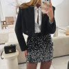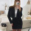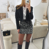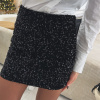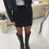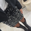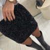 Elegantní, mini sukně ze sametového materiálu s flitry v černé a stříbrné barvě s elastickou gumou v pase. Sukně je z pružného materiálu a je vypodšívkovaná. Velikost je univerzální, sedí na XS - M. Foceno je na velikosti XS a výšce 165 cm.