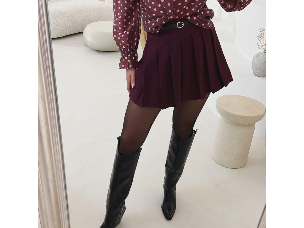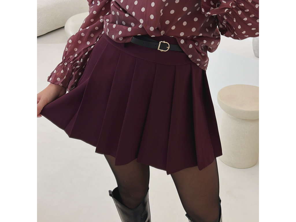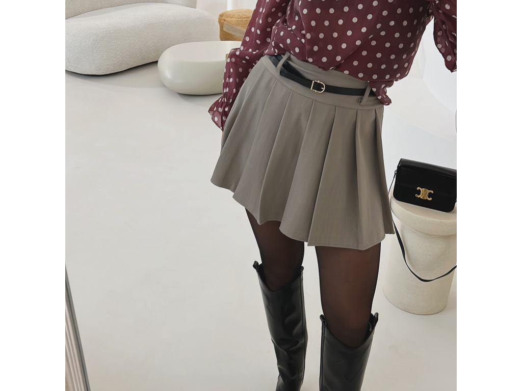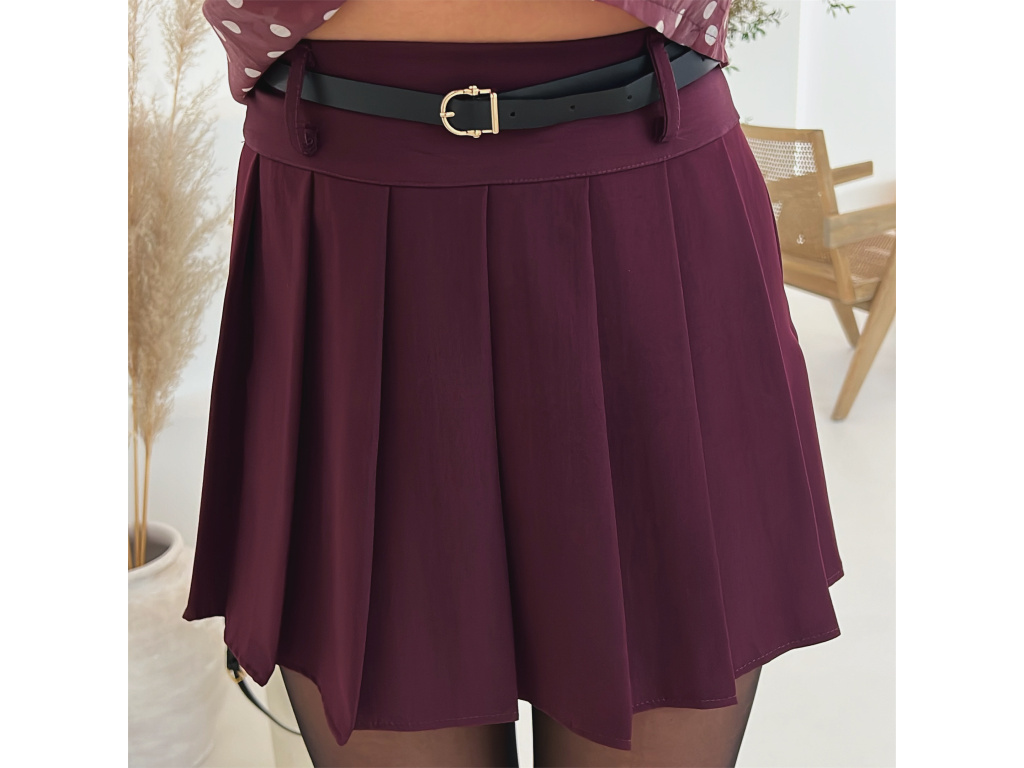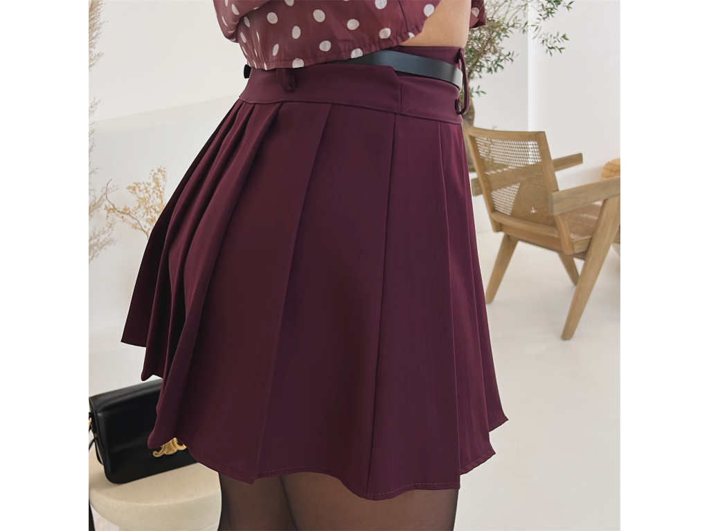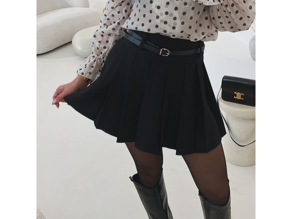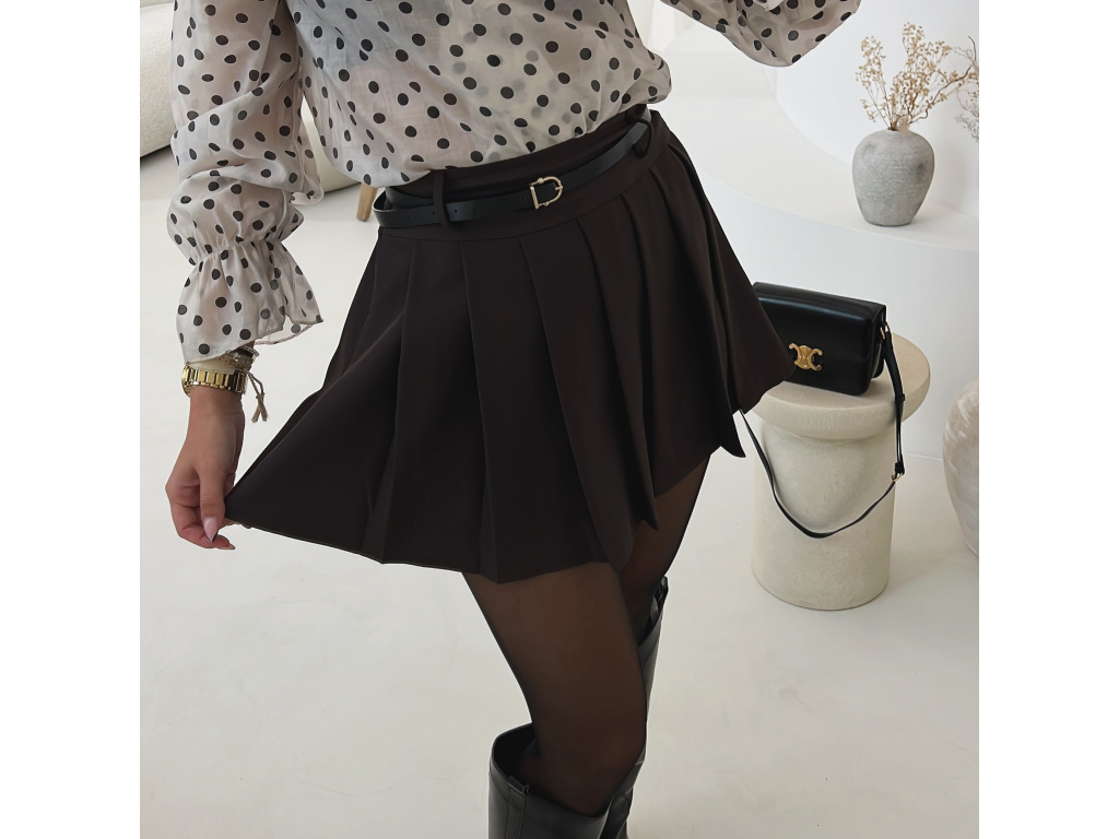 Elegantní skládaná sukně s páskem, která dokonale kombinuje ženskost a pohodlí. Díky pružnému pasu na zadní straně se krásně přizpůsobí postavě, zatímco boční zapínání usnadňuje oblékání. Přiložený pásek s kovovou přezkou podtrhne pas a dodá outfitu šmrnc. Kombinuj s halenkou nebo jednoduchým topem a kozačkami pro chic look. Velikost je univerzální, sedí na XS,S a M.