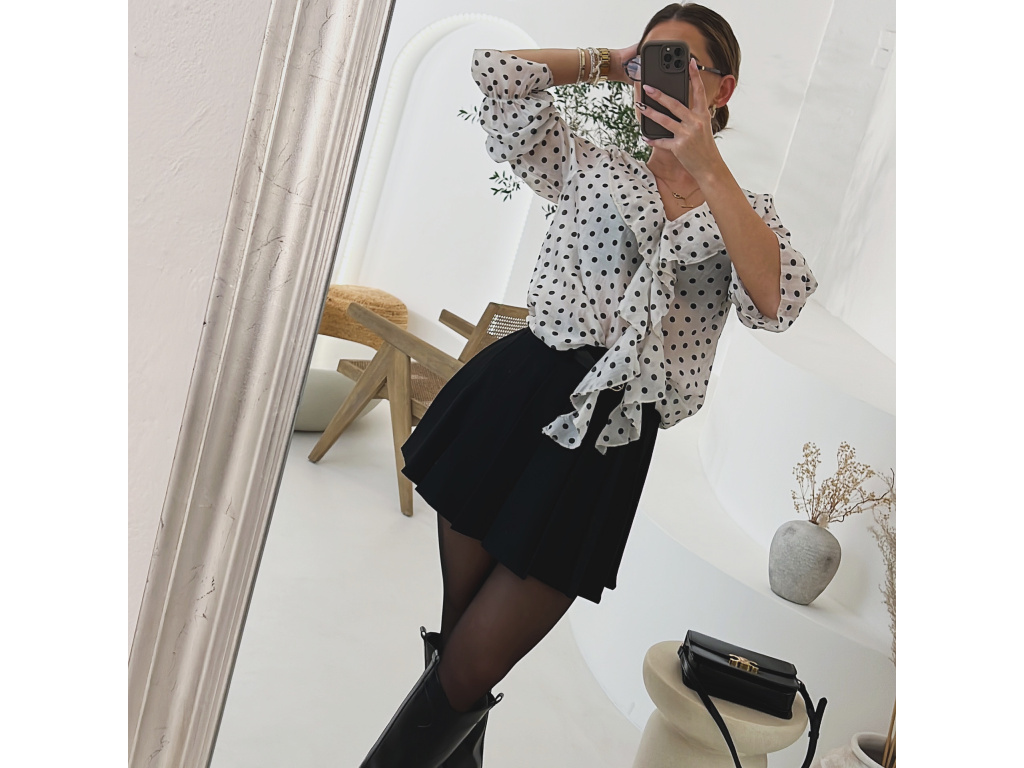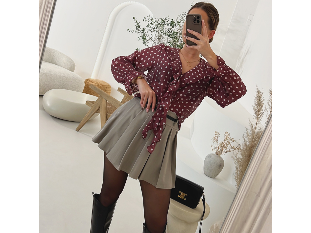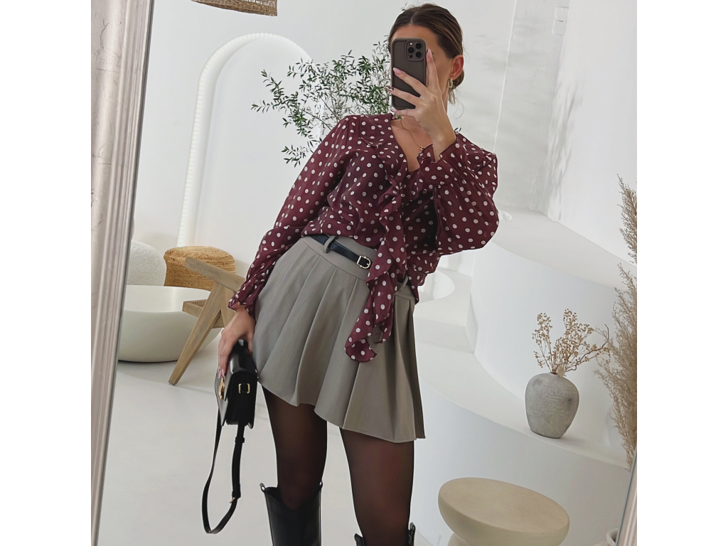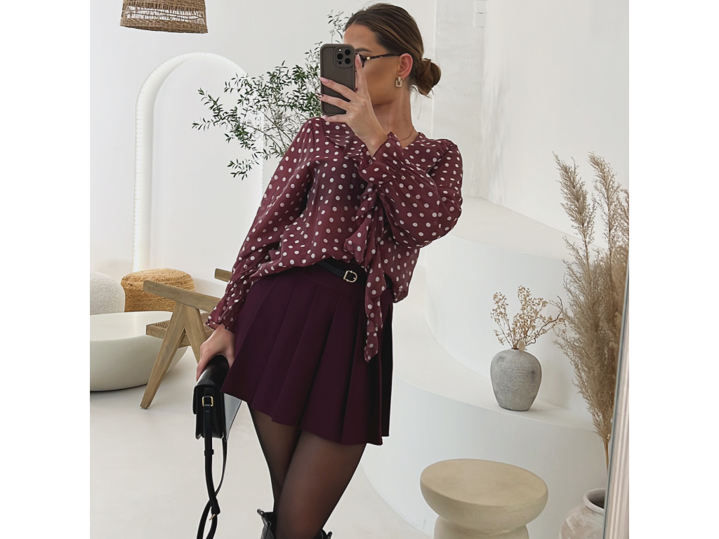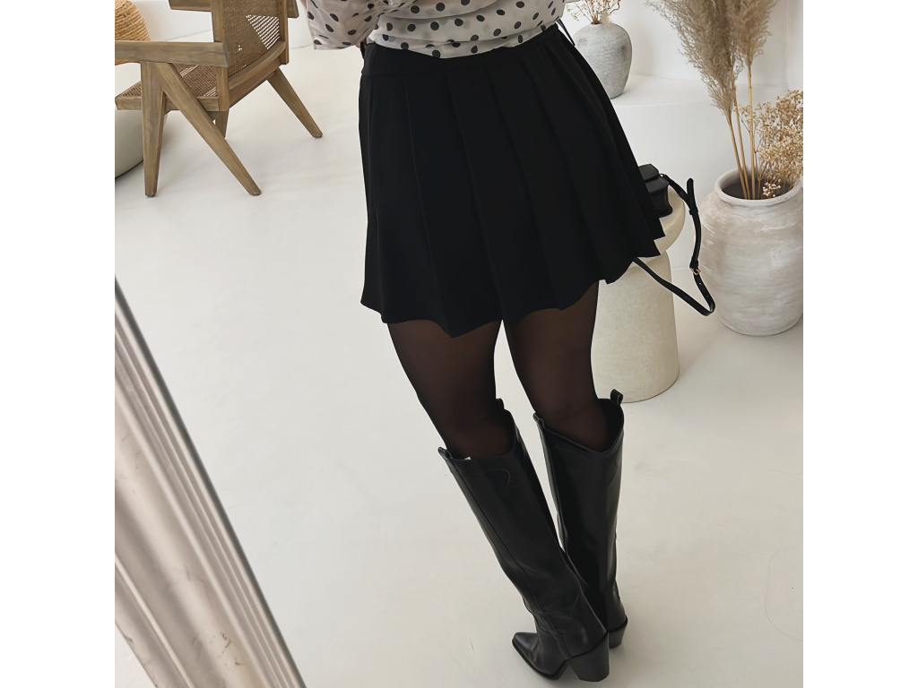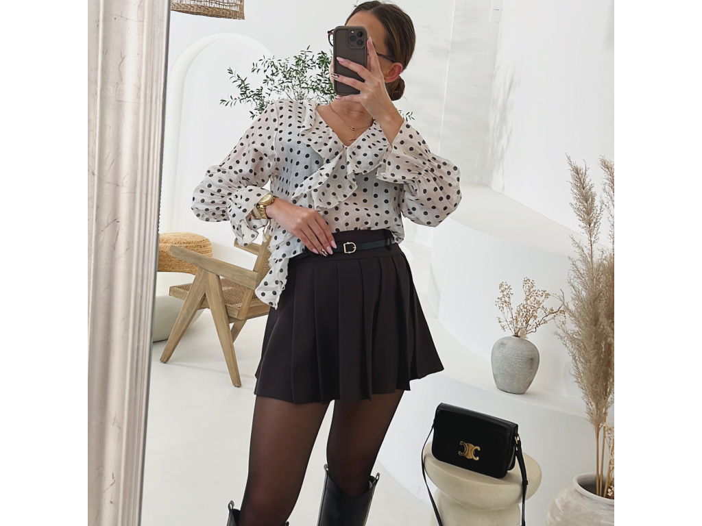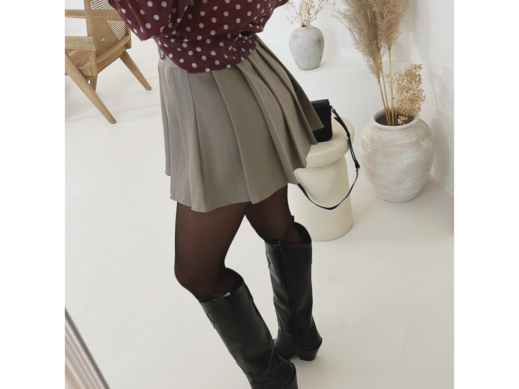 Elegantní skládaná sukně s páskem, která dokonale kombinuje ženskost a pohodlí. Díky pružnému pasu na zadní straně se krásně přizpůsobí postavě, zatímco boční zapínání usnadňuje oblékání. Přiložený pásek s kovovou přezkou podtrhne pas a dodá outfitu šmrnc. Kombinuj s halenkou nebo jednoduchým topem a kozačkami pro chic look. Velikost je univerzální, sedí na XS,S a M.