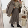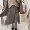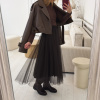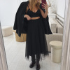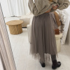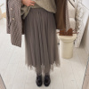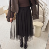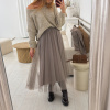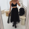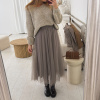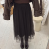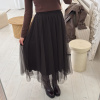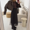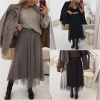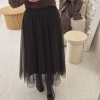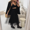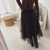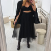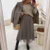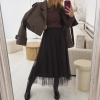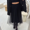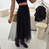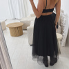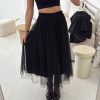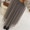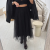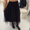 Černá, hnědá a béžová tylová sukně v midi délce s podšívkou. V pase je sukně na gumu. Velikost je univerzální, sedí na XS - M i menší L. Foceno je na velikosti XS a výšce 165 cm.