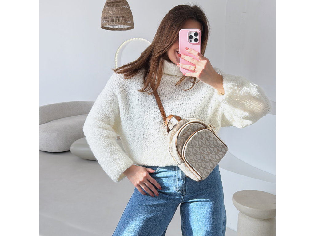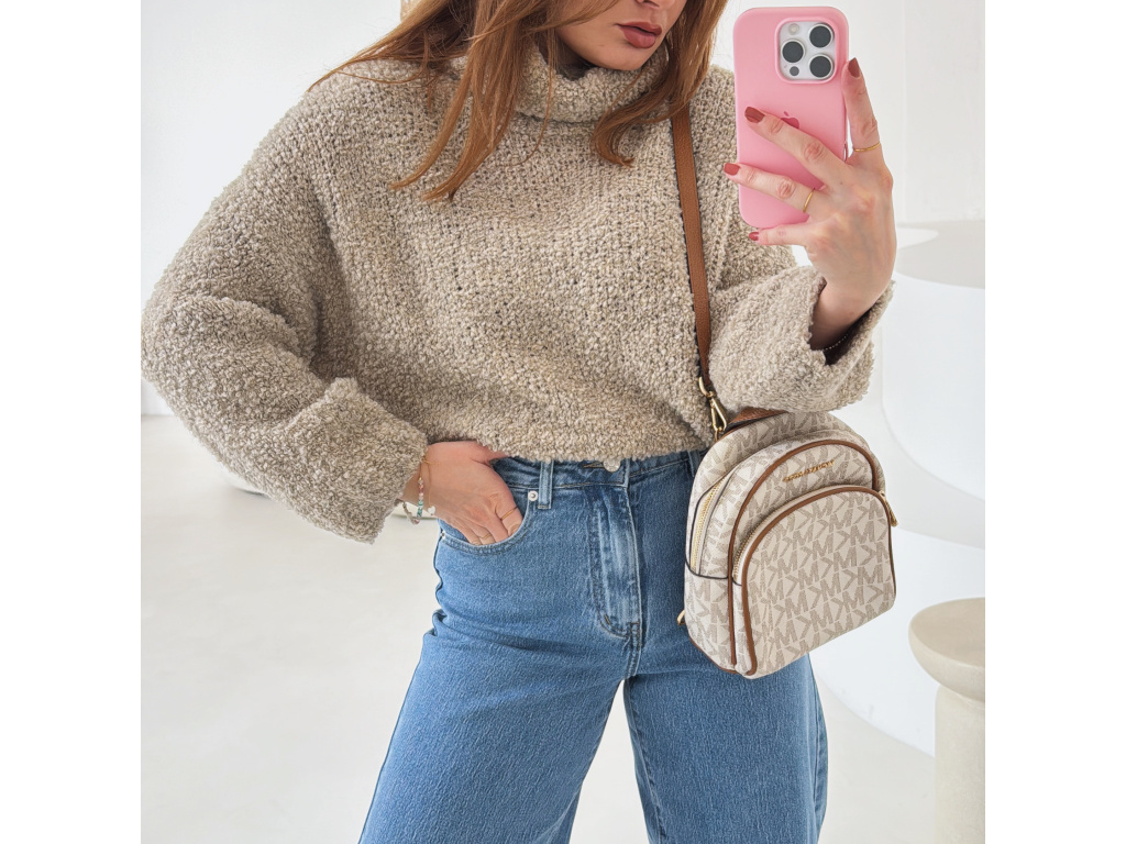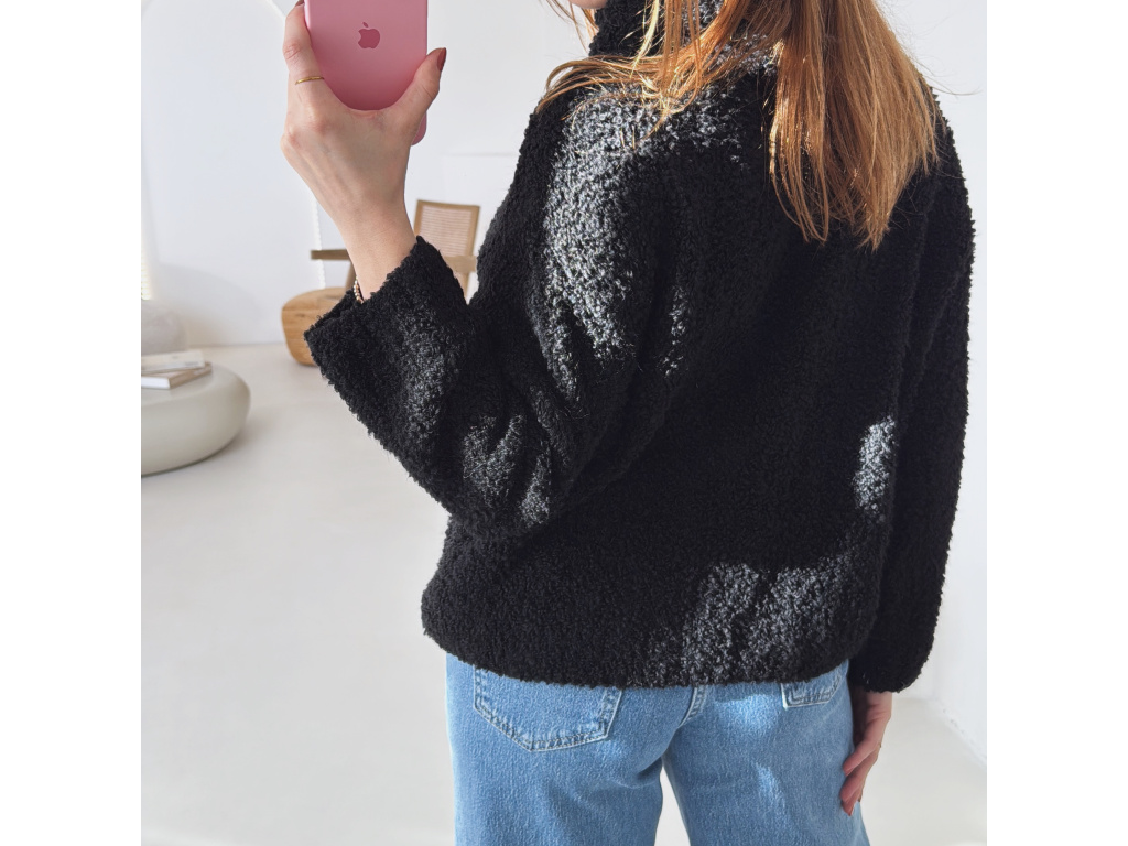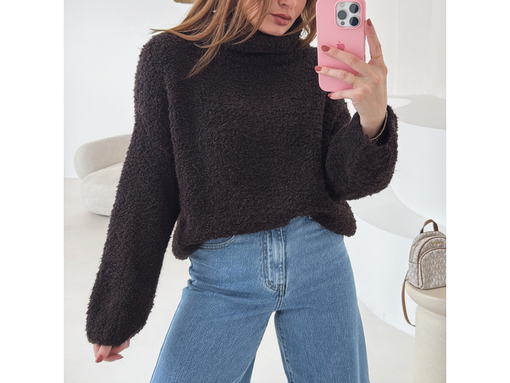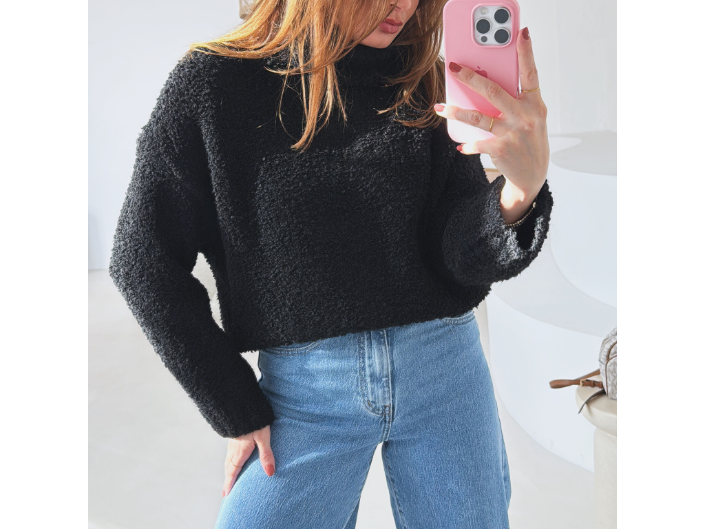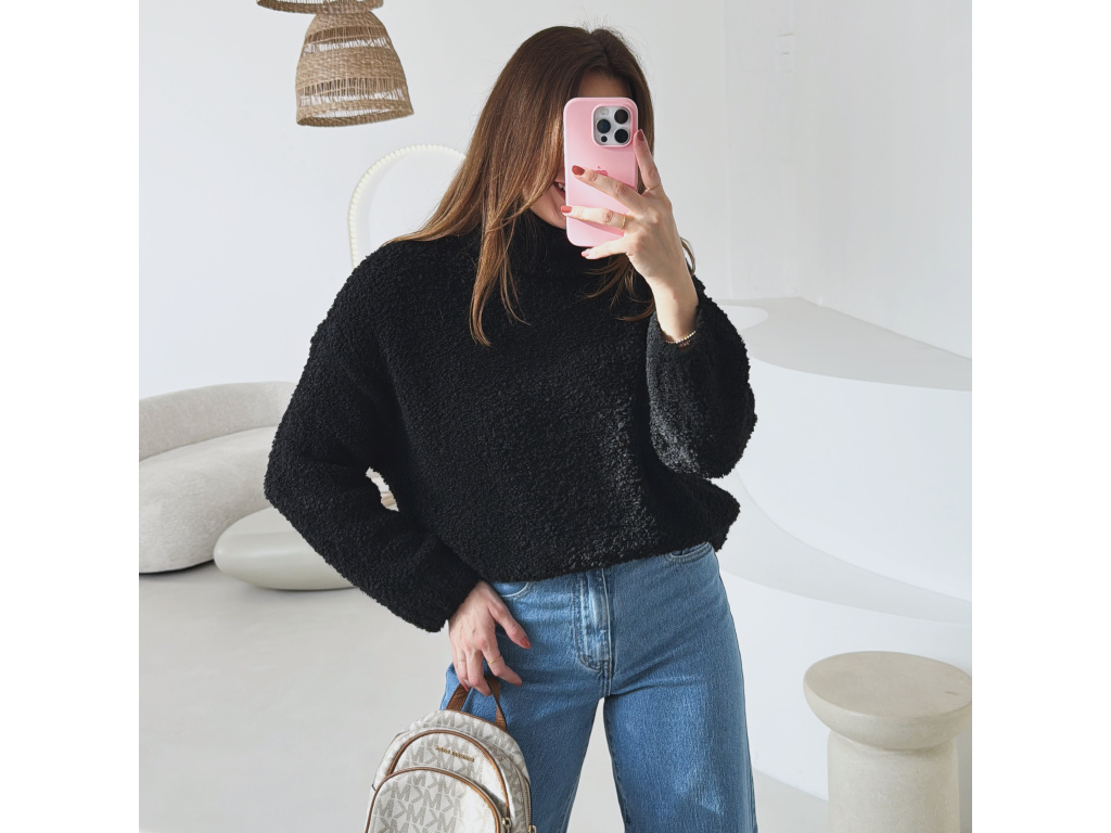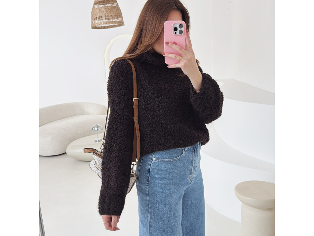 Hřejivý svetr s buklé (nopkovou) strukturou a pohodlným rolákem. Příjemný materiál s podílem vlny a alpaky krásně zahřeje a je ideální na chladnější dny. Volnější střih zajišťuje komfort při nošení a snadné kombinování s džíny i kalhotami.