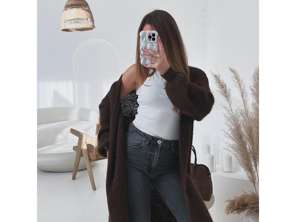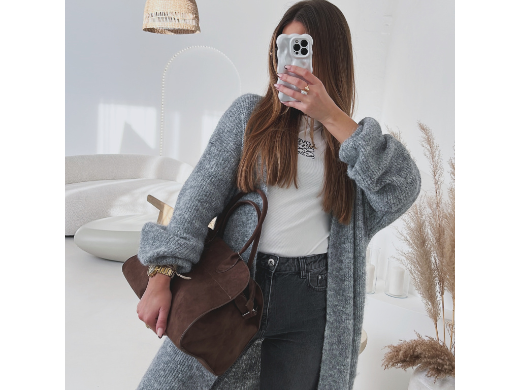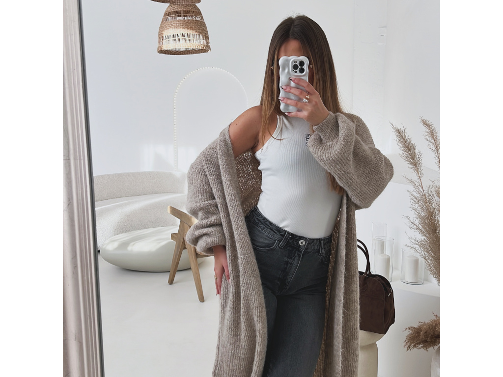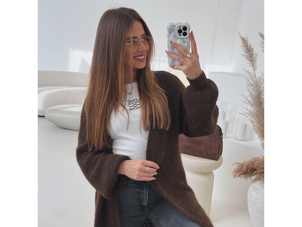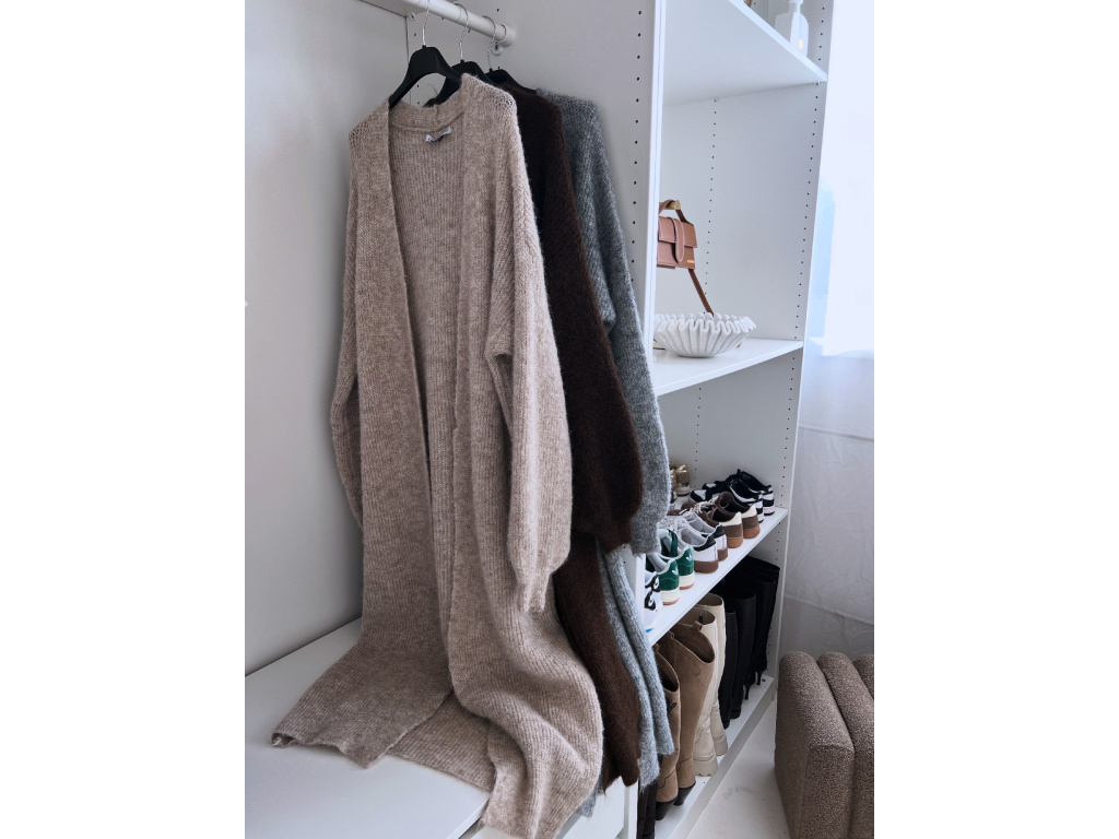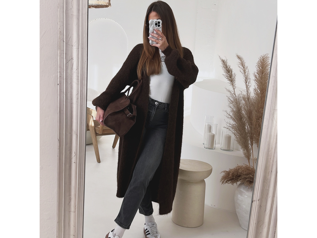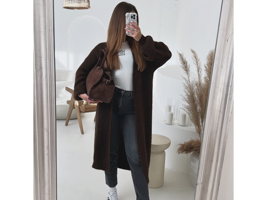 Stylový a hřejivý dlouhý kardigan s volnějším střihem, ideální pro vrstvení v chladnějších dnech. Příjemný měkký úplet zaručuje pohodlí i elegantní vzhled. Skvěle doplní ležérní outfit s džínami i šaty. Dostupný ve třech odstínech – šedé, béžové a hnědé.