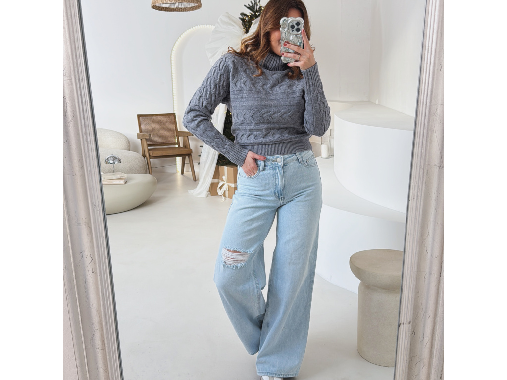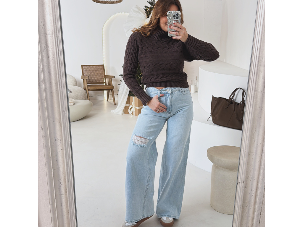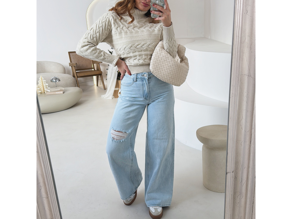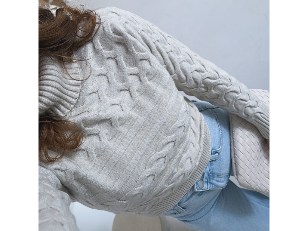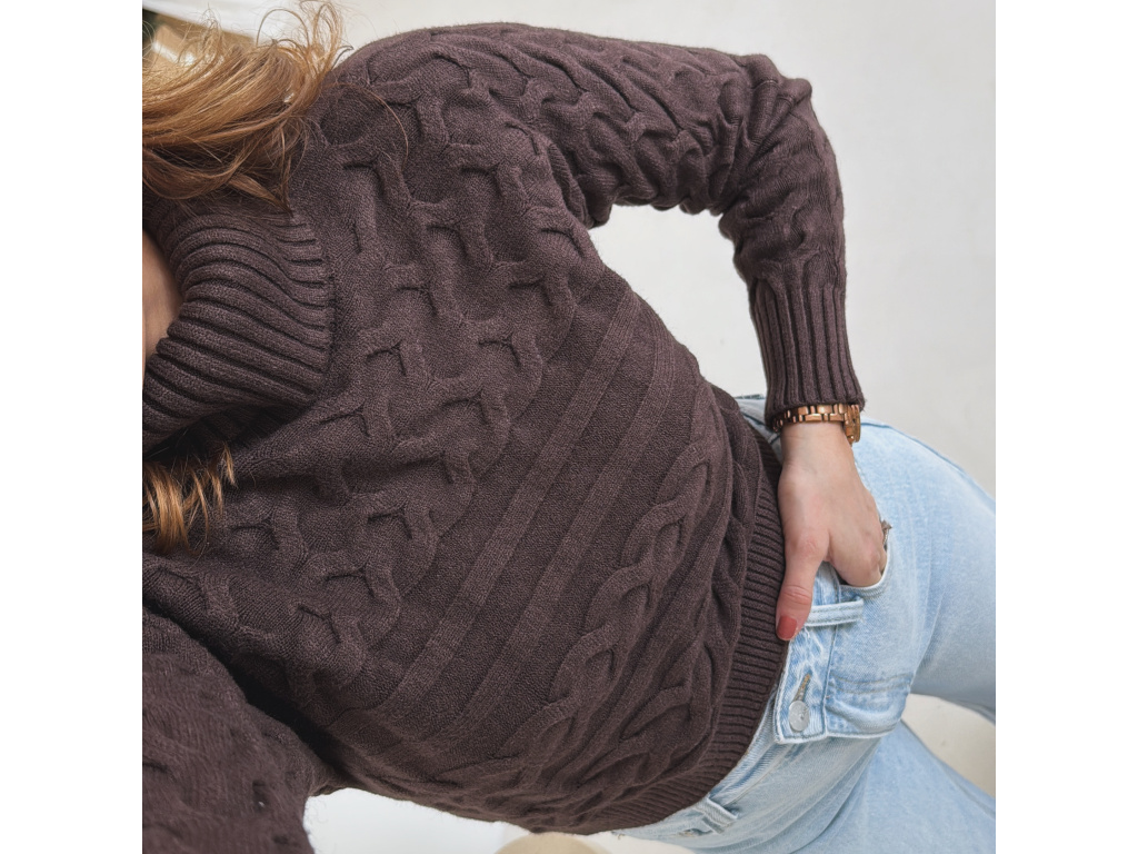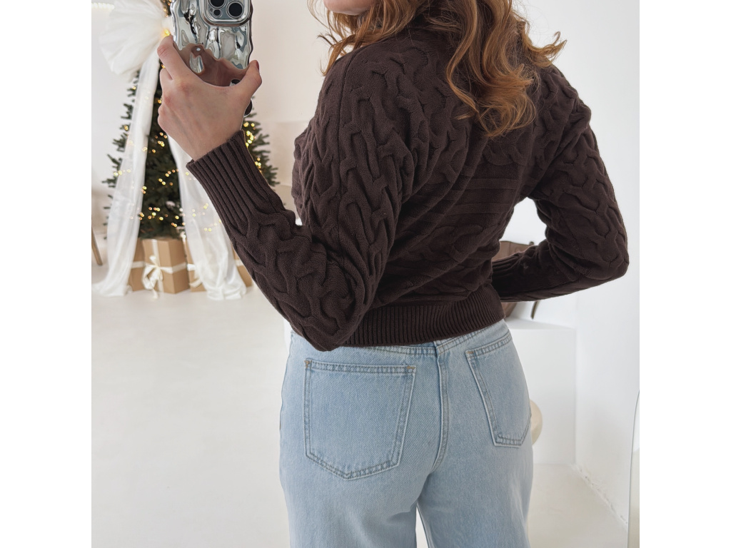 Stylový kratší rolákový svetr s výrazným pleteným vzorem, který zaujme svým extrémně příjemným a měkkým materiálem. Díky pohodlnému střihu krásně sedí a snadno se kombinuje s džínami i sukní. Dostupný v elegantní béžové, šedé a hnědé barvě — ideální kousek pro chladnější dny.