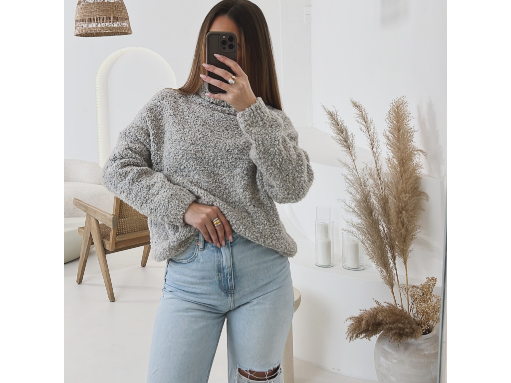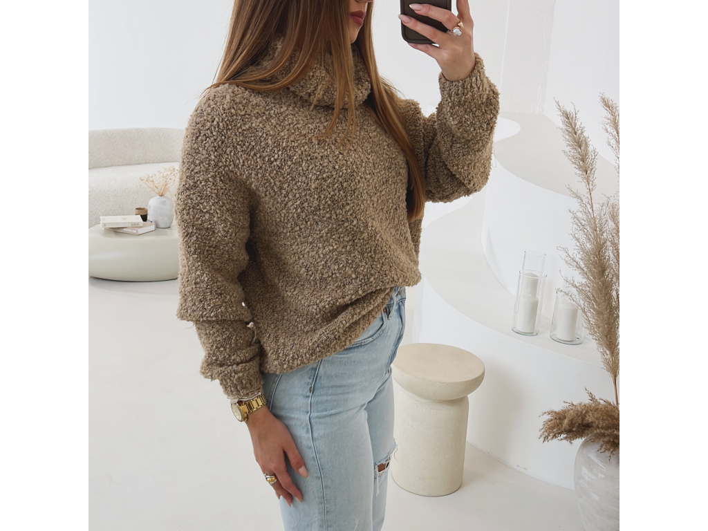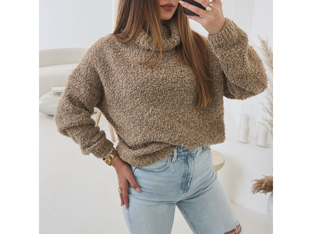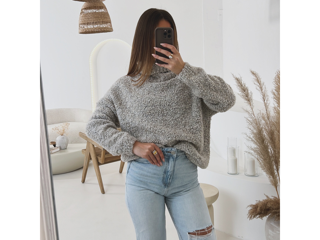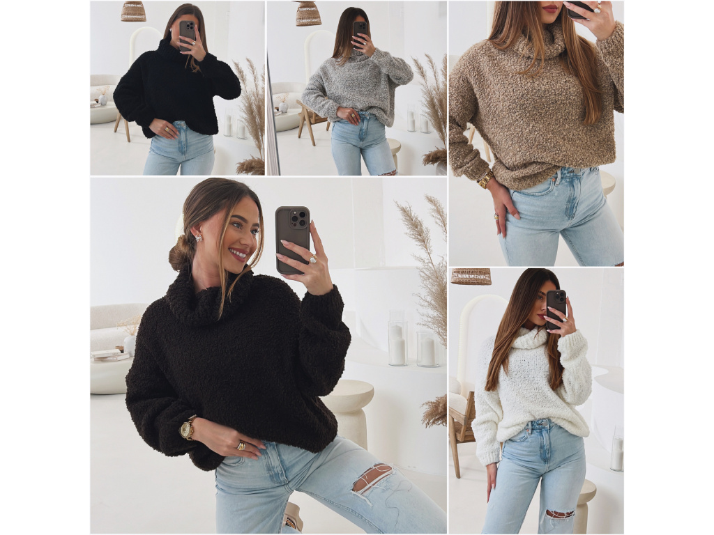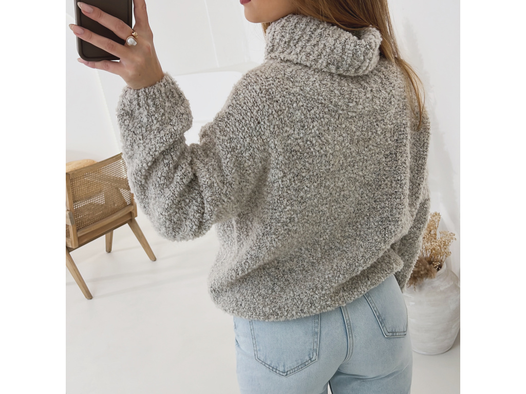 Hřejivý buklé svetr s podílem alpaky a vlny je perfektní volbou pro chladné dny. Je mimořádně měkký, nadýchaný a příjemný na dotek. Dominantou je velký límeček, který dodává svetru styl i extra komfort. Díky pohodlnému střihu se krásně nosí a snadno kombinuje s džínami i sukněmi. Dostupný je hned v pěti nadčasových barvách, aby si každá našla tu svoji.