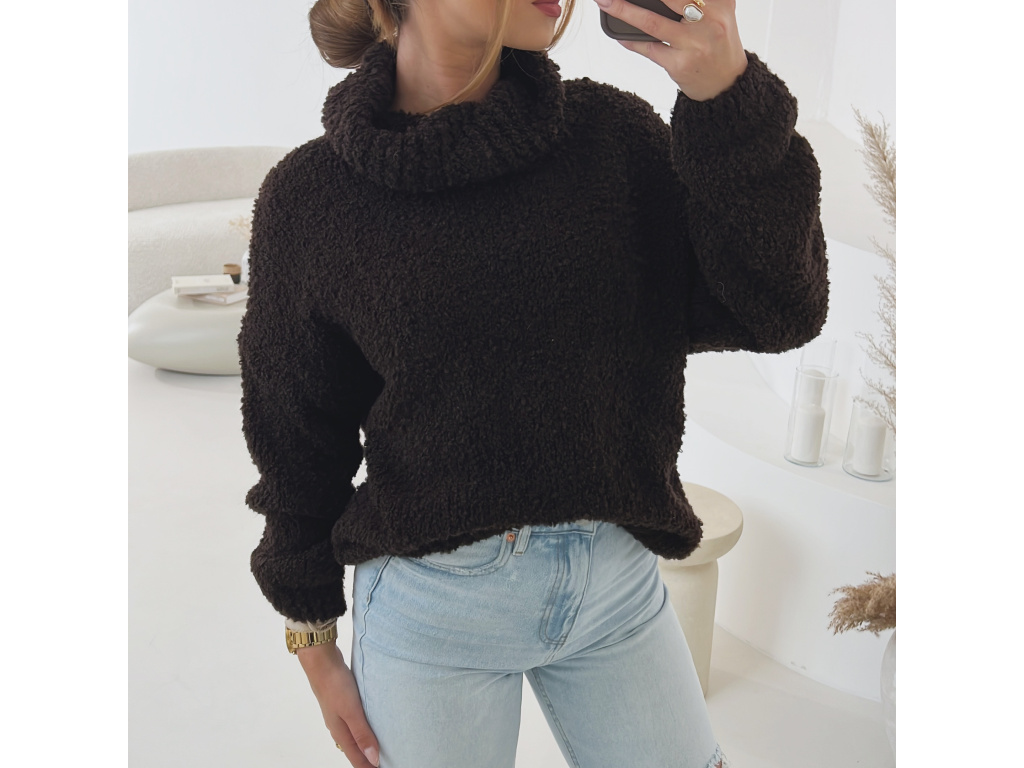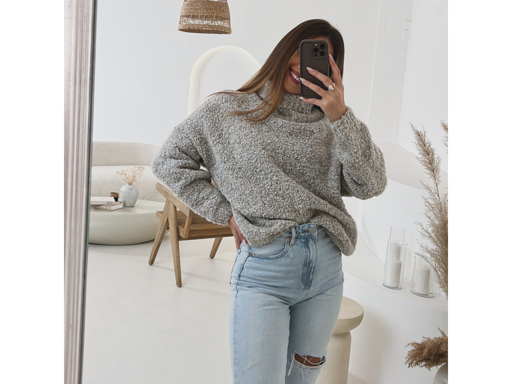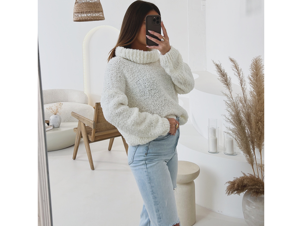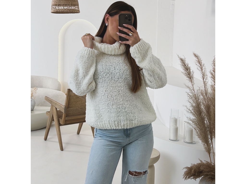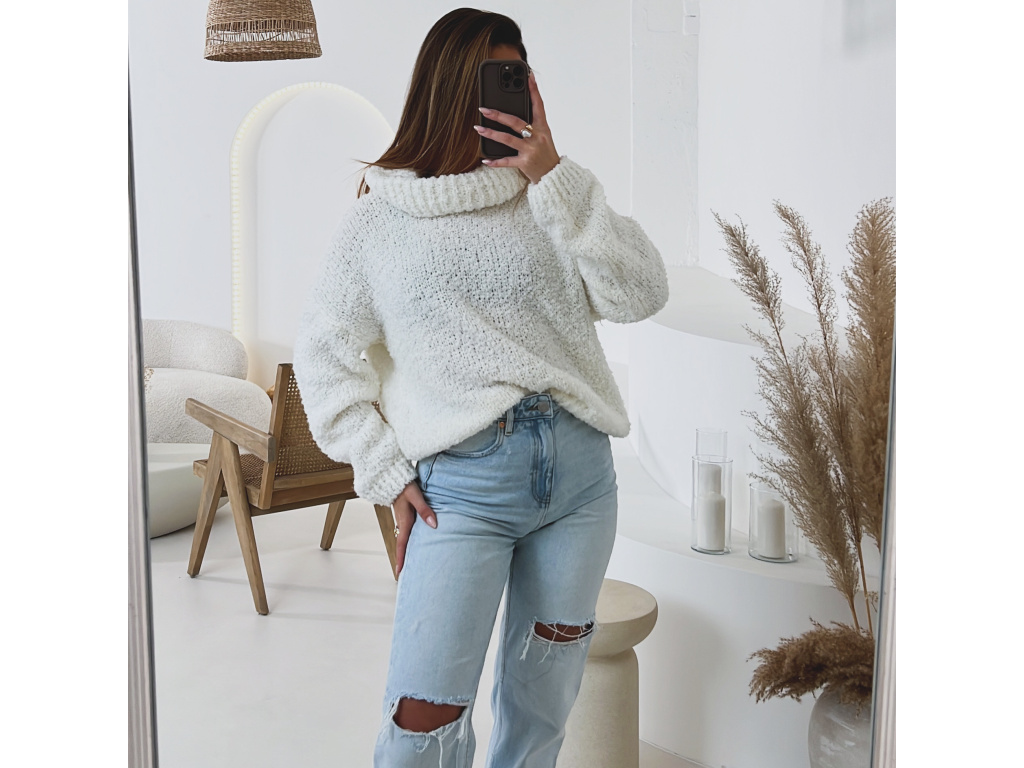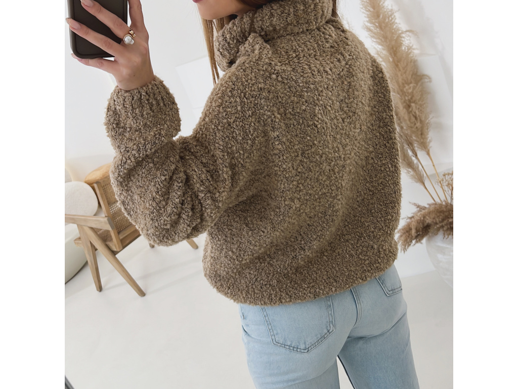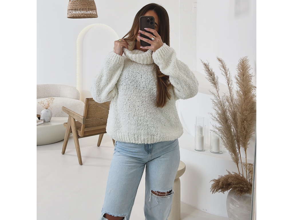 Hřejivý buklé svetr s podílem alpaky a vlny je perfektní volbou pro chladné dny. Je mimořádně měkký, nadýchaný a příjemný na dotek. Dominantou je velký límeček, který dodává svetru styl i extra komfort. Díky pohodlnému střihu se krásně nosí a snadno kombinuje s džínami i sukněmi. Dostupný je hned v pěti nadčasových barvách, aby si každá našla tu svoji.