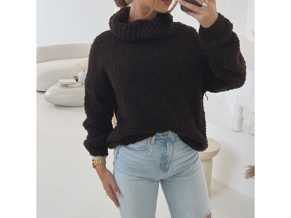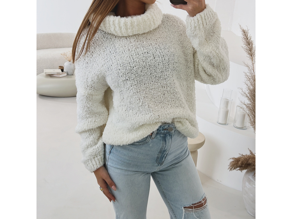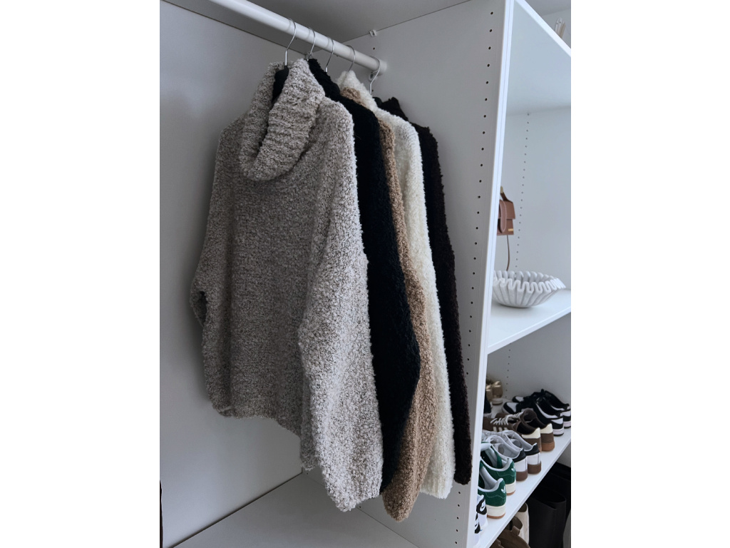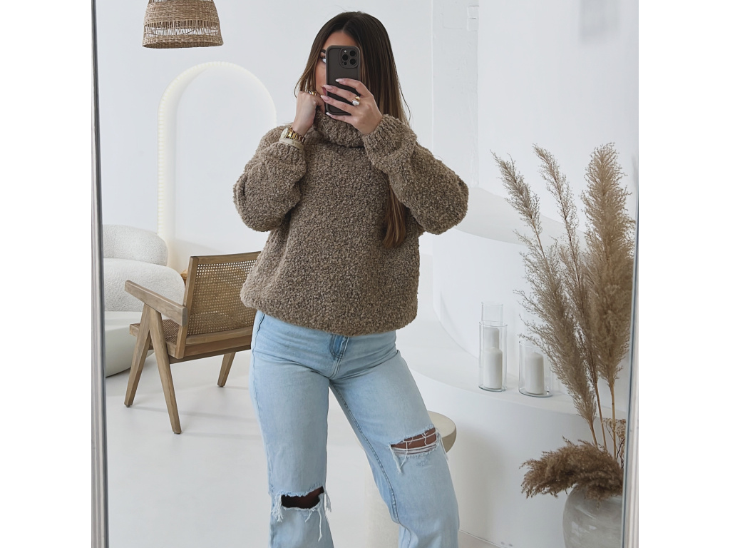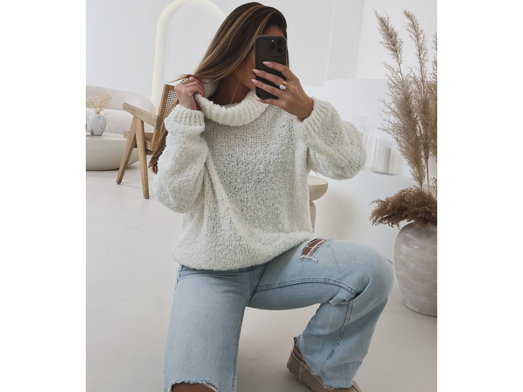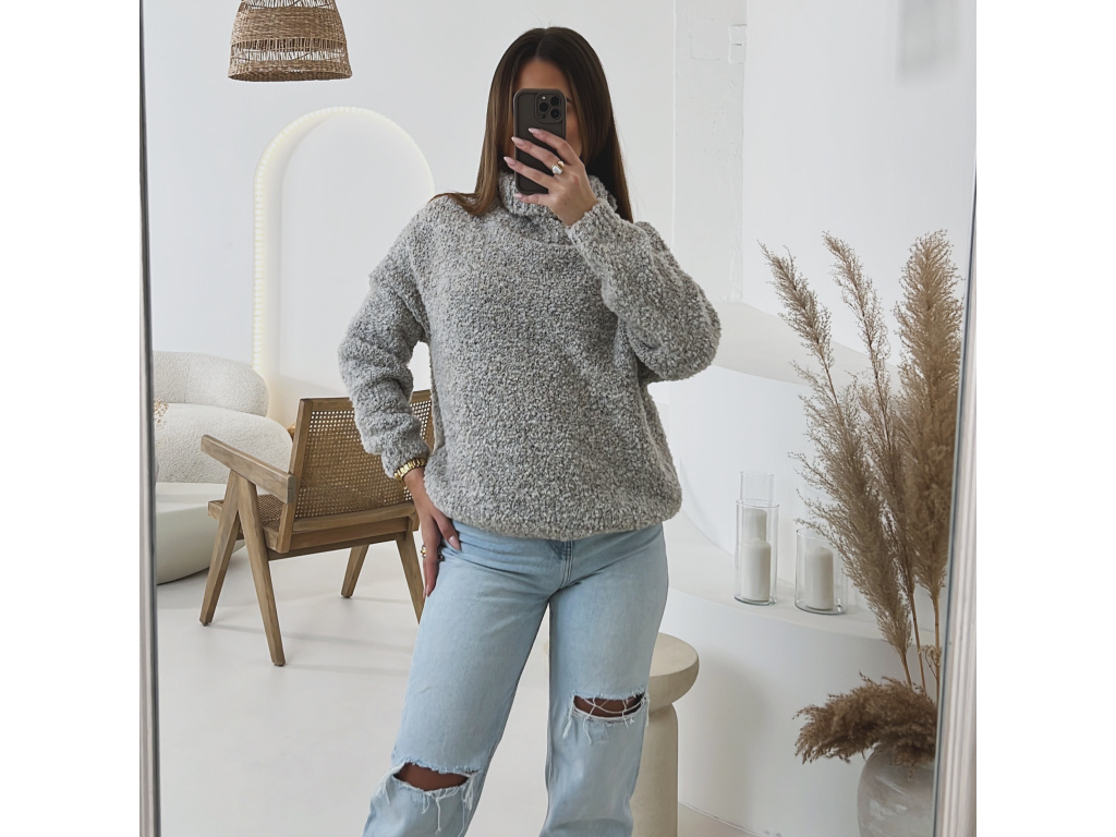 Hřejivý buklé svetr s podílem alpaky a vlny je perfektní volbou pro chladné dny. Je mimořádně měkký, nadýchaný a příjemný na dotek. Dominantou je velký límeček, který dodává svetru styl i extra komfort. Díky pohodlnému střihu se krásně nosí a snadno kombinuje s džínami i sukněmi. Dostupný je hned v pěti nadčasových barvách, aby si každá našla tu svoji.