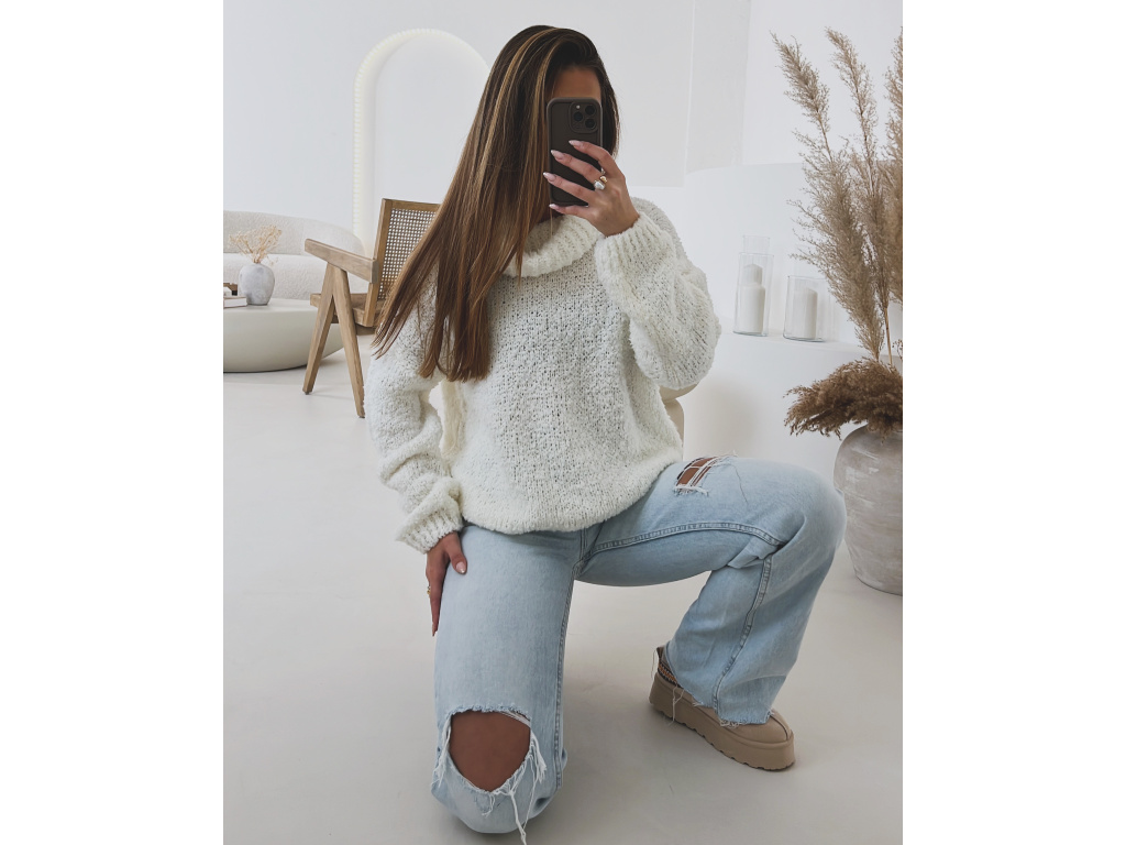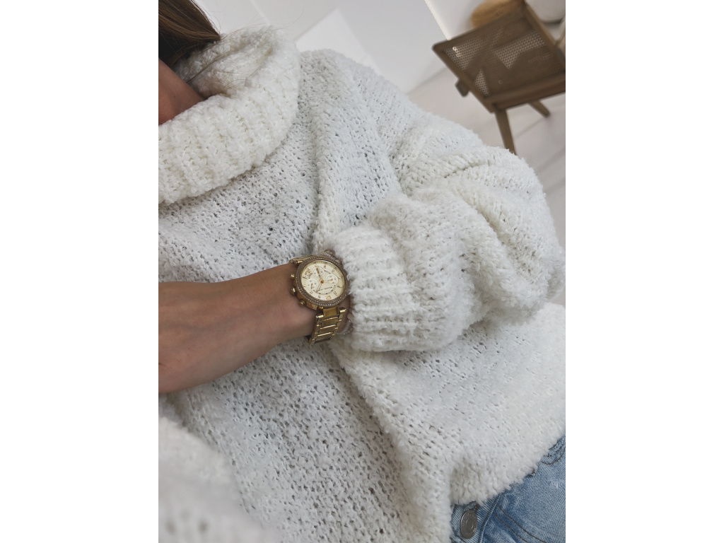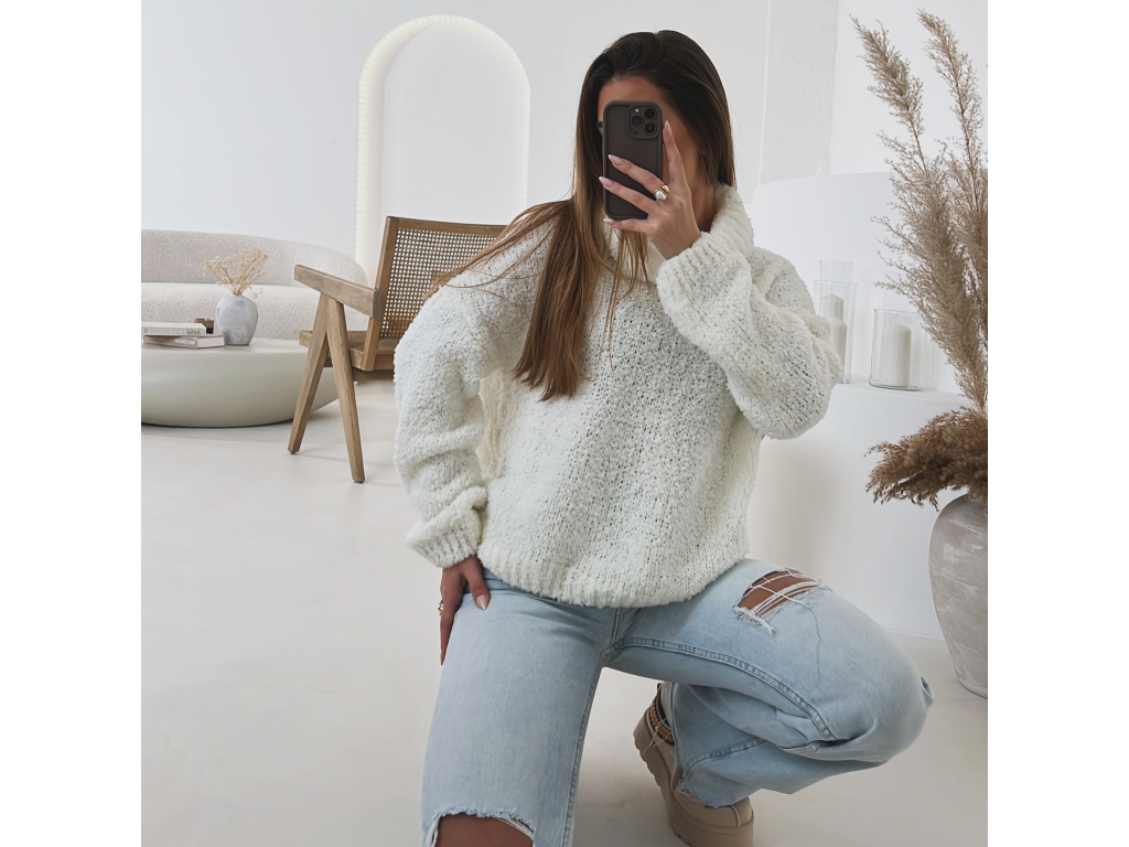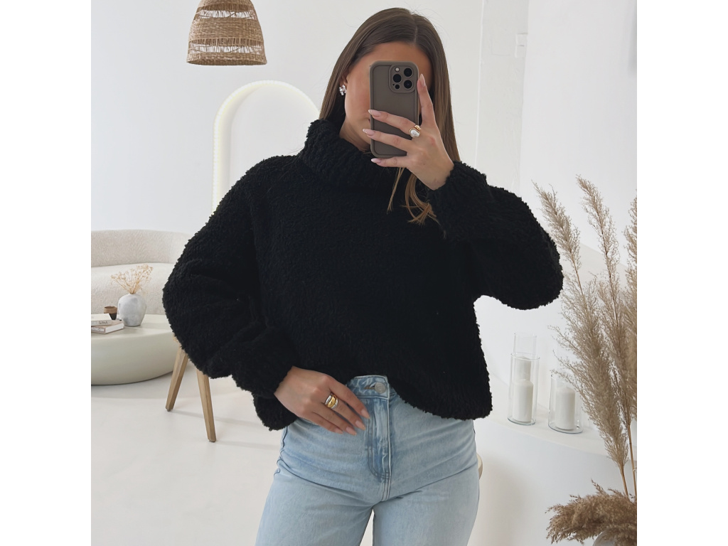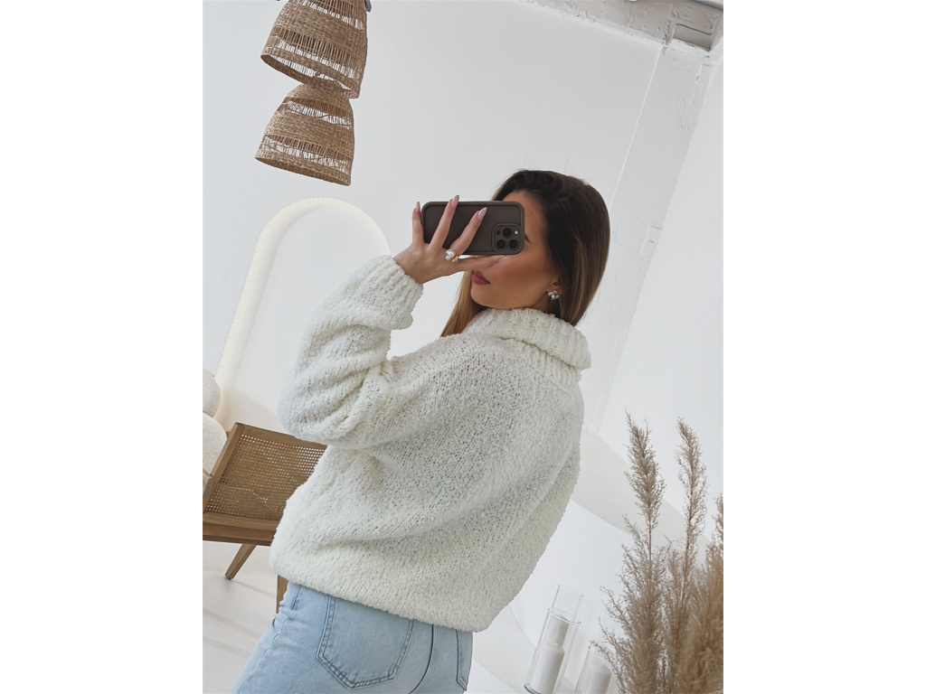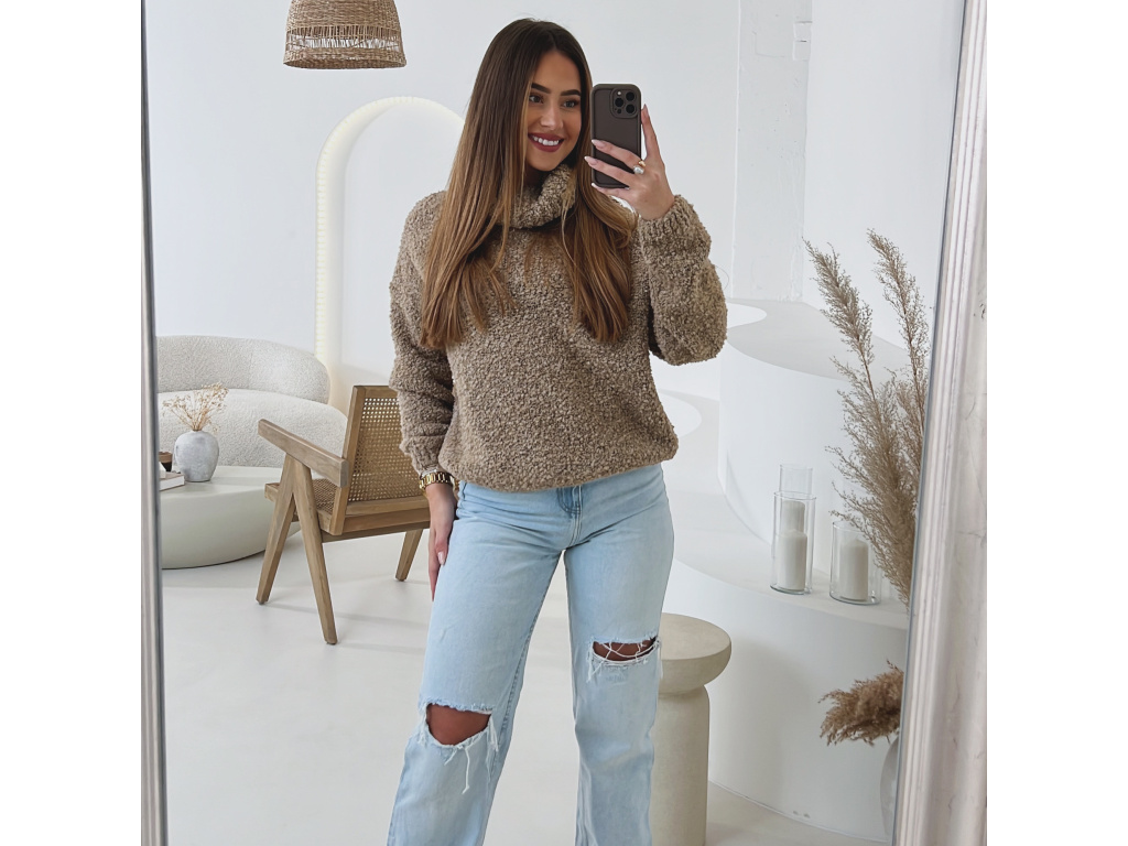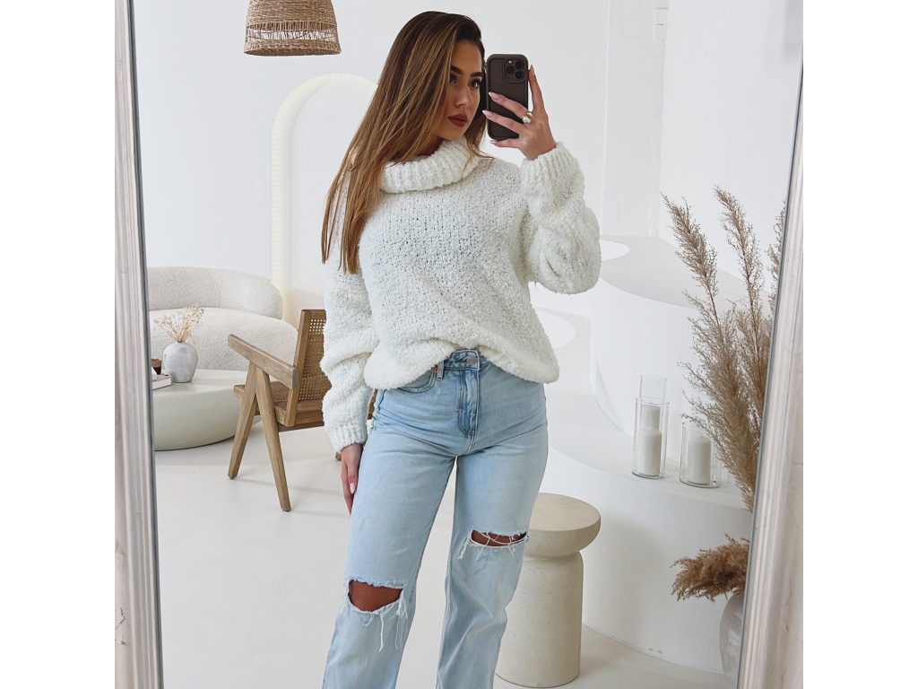 Hřejivý buklé svetr s podílem alpaky a vlny je perfektní volbou pro chladné dny. Je mimořádně měkký, nadýchaný a příjemný na dotek. Dominantou je velký límeček, který dodává svetru styl i extra komfort. Díky pohodlnému střihu se krásně nosí a snadno kombinuje s džínami i sukněmi. Dostupný je hned v pěti nadčasových barvách, aby si každá našla tu svoji.