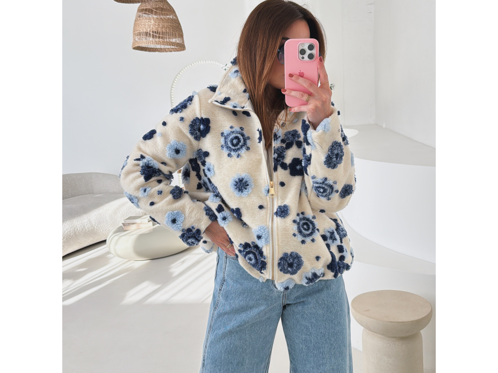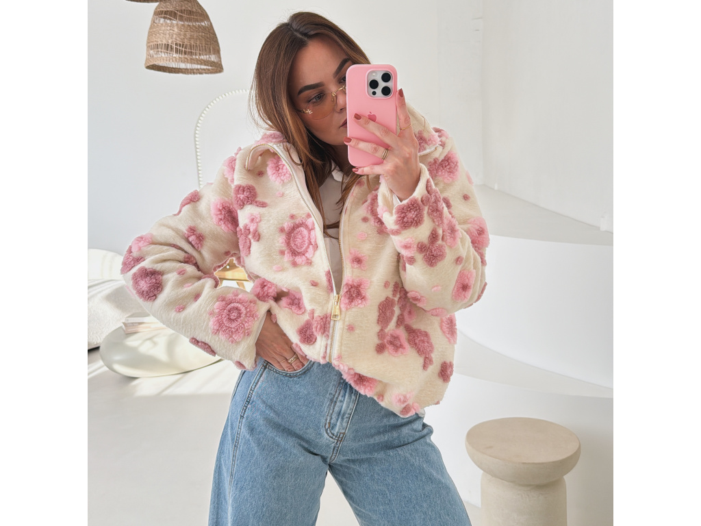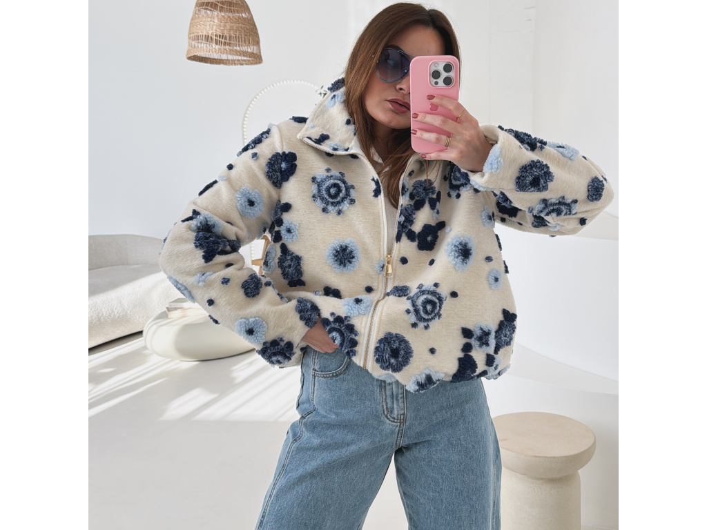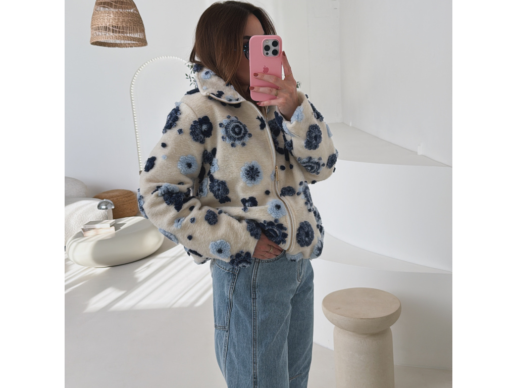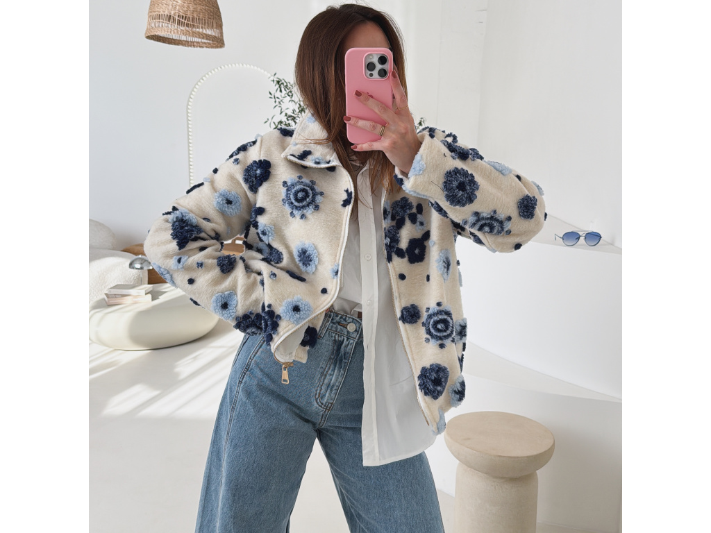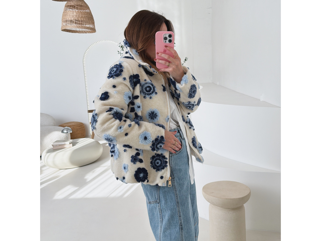 Huňatá bunda s květinami Blosse